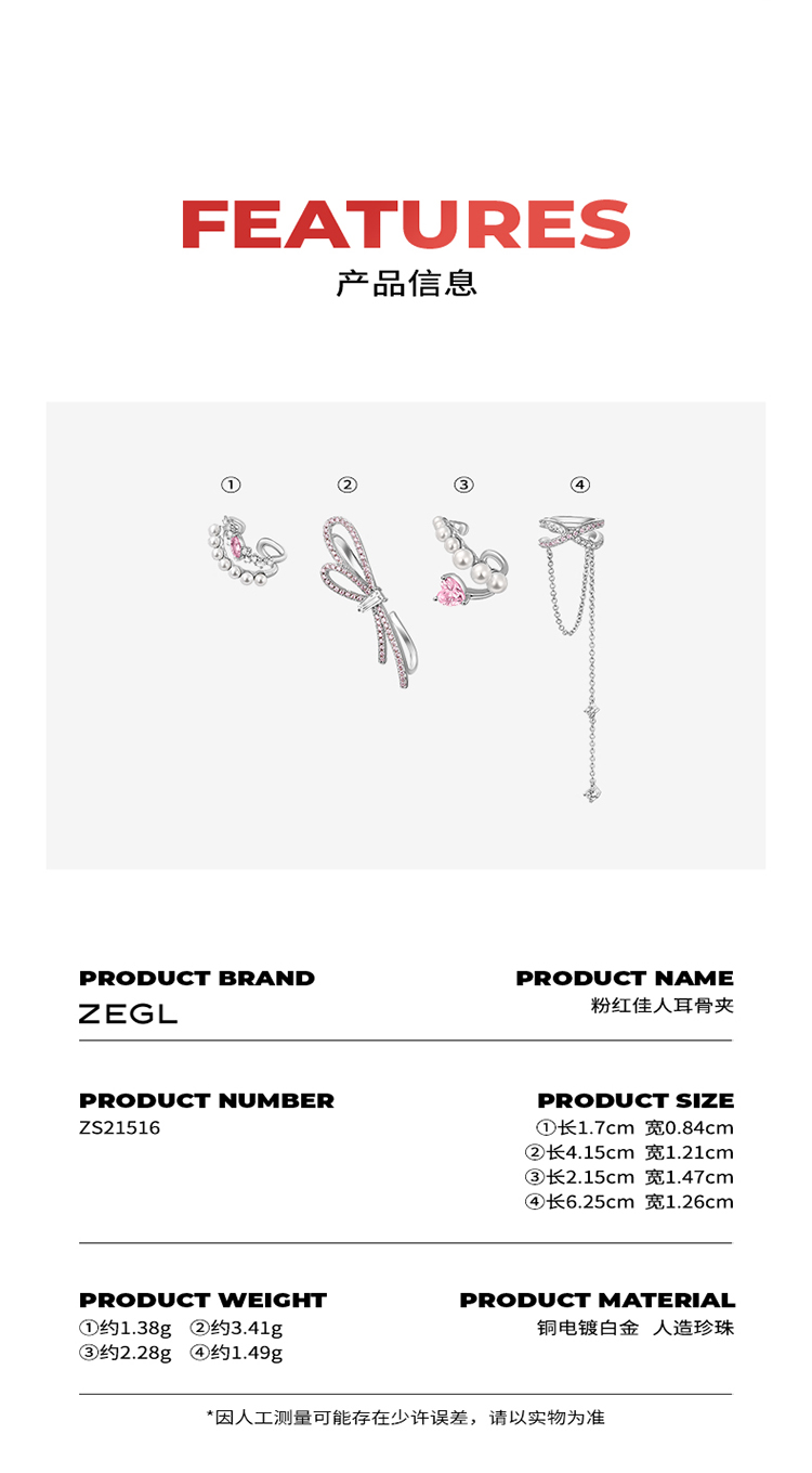 ZEGL设计师新年系列蝴蝶结耳夹女无耳洞耳骨夹耳挂耳环秋冬耳饰品