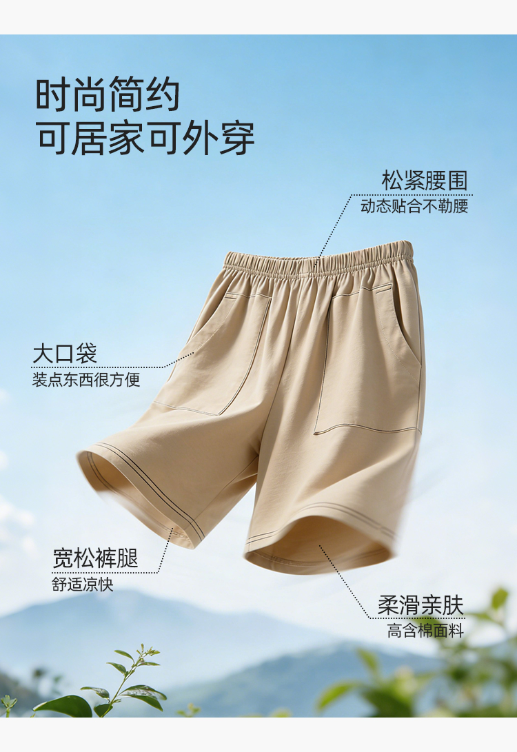【商场同款】熳洁儿 男士休闲短裤94%棉宽松休闲可外穿双口袋24203960