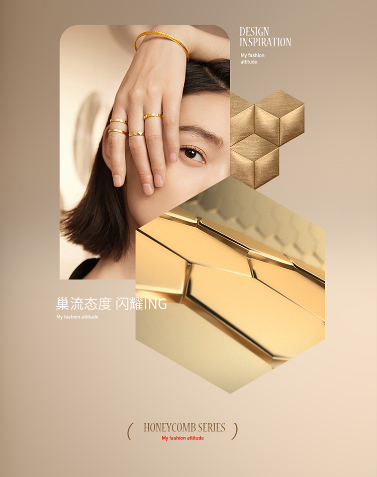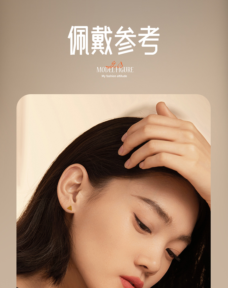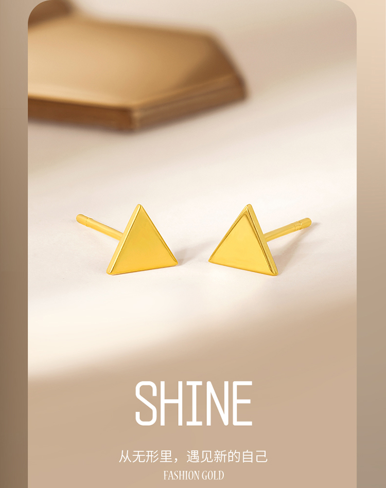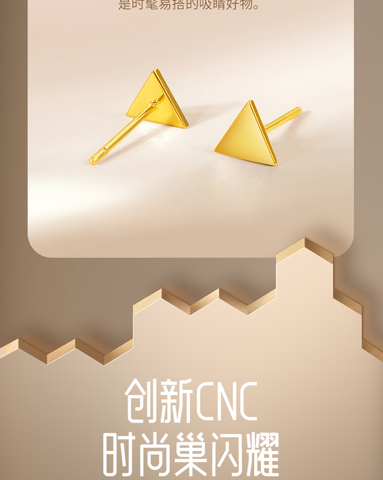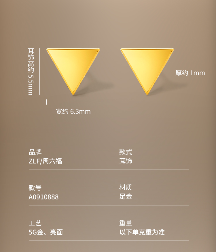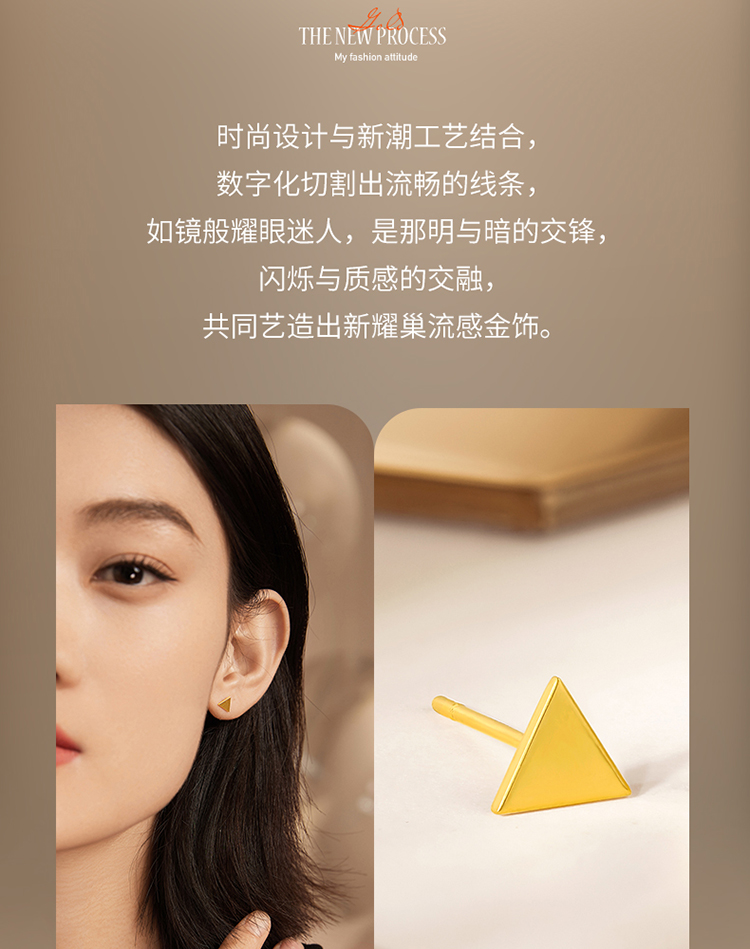 周六福5G黄金耳饰女3代无极金系列时髦金计价足金三角耳钉金饰