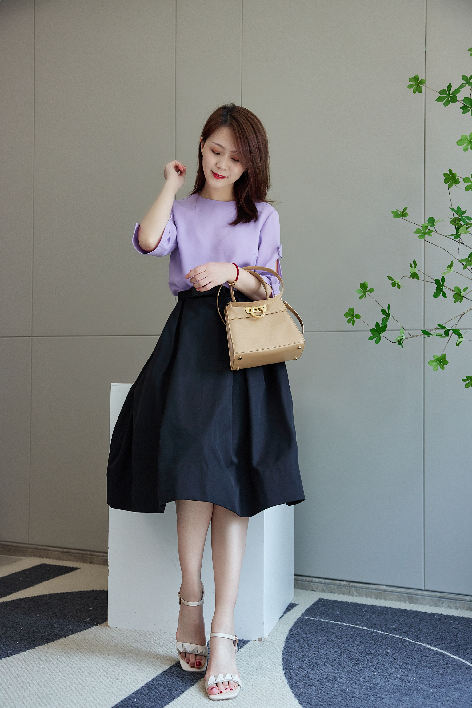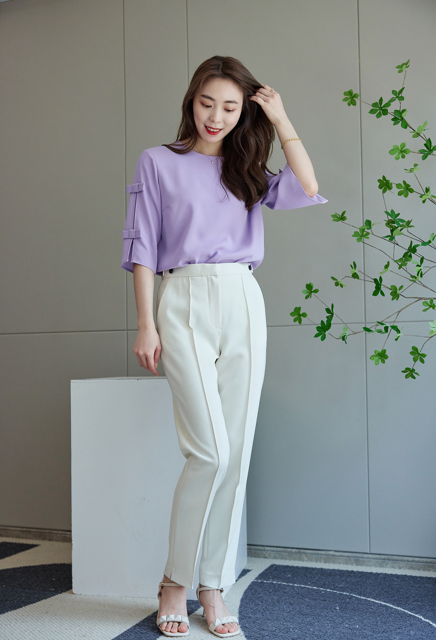 紫丁香蝴蝶结上衣