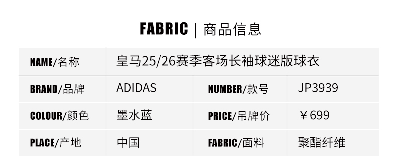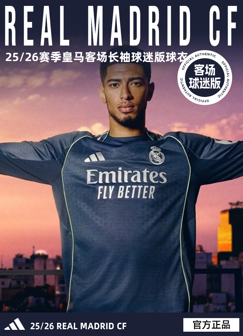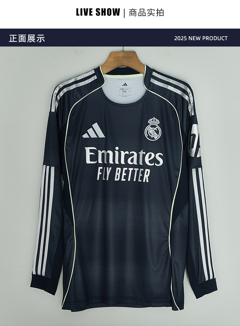 SFS阿迪达斯Adidas 25/26皇马客场长袖球迷版球衣足球服男JP3939