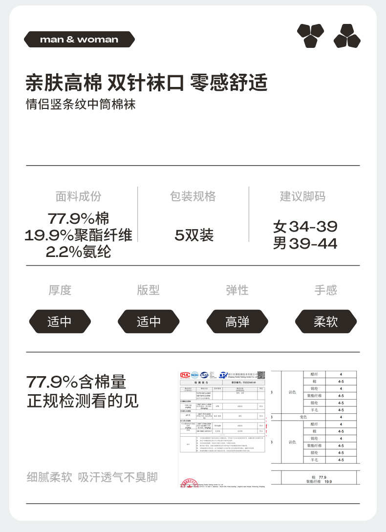 【面料】76.7%棉+1.9%氨纶+21.4%聚酯纤维