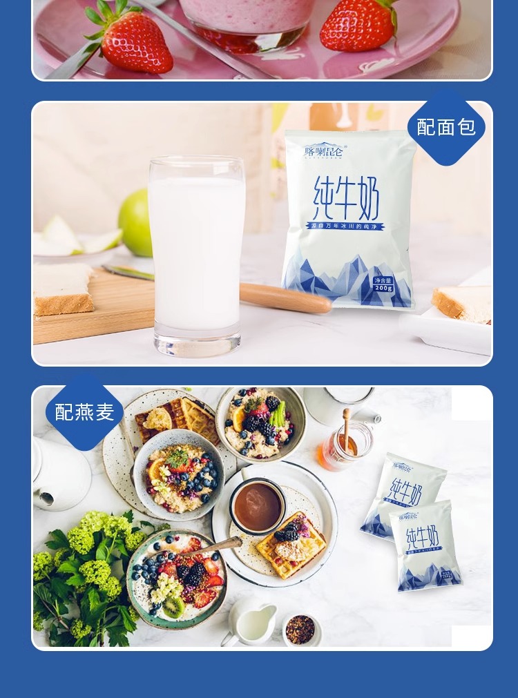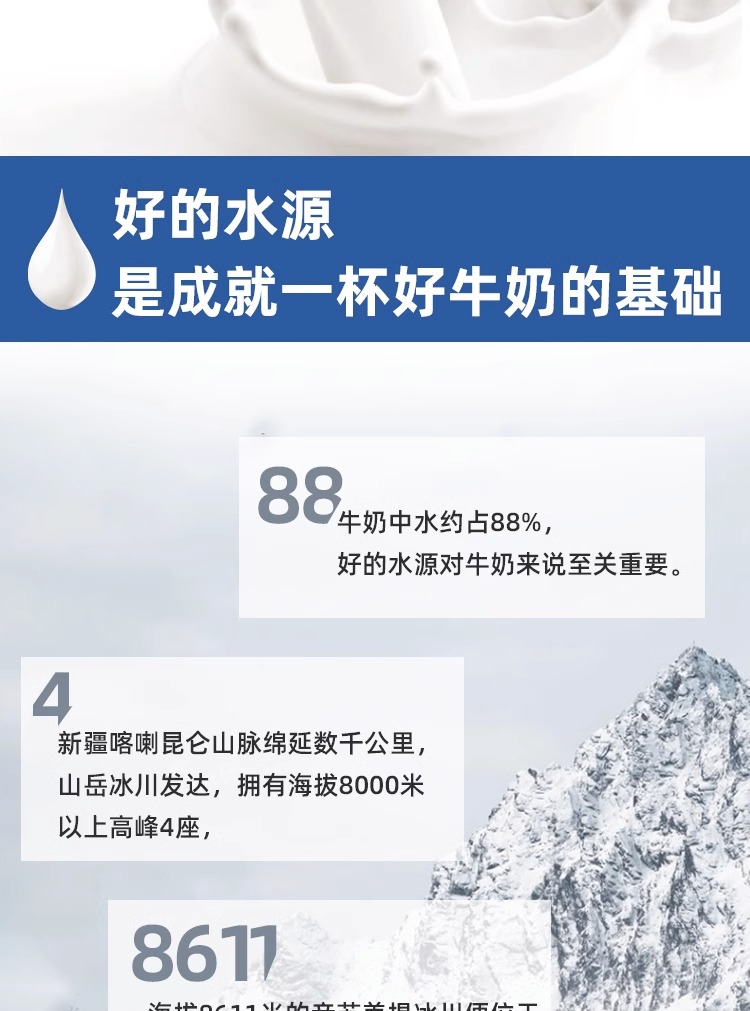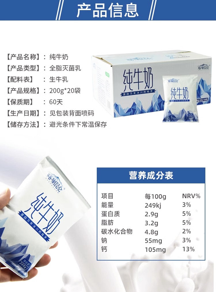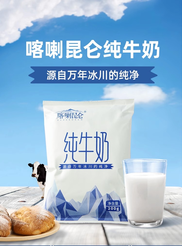 新疆喀喇昆仑纯牛奶好牧场奶源学生中老年营养早餐奶200ml*20袋装
