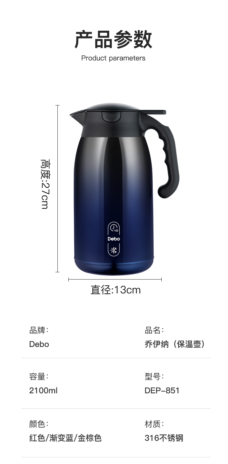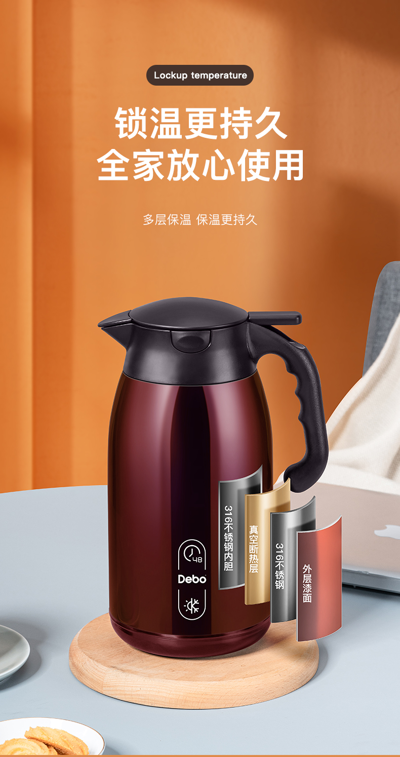Debo德铂乔伊纳316不锈钢保温水壶