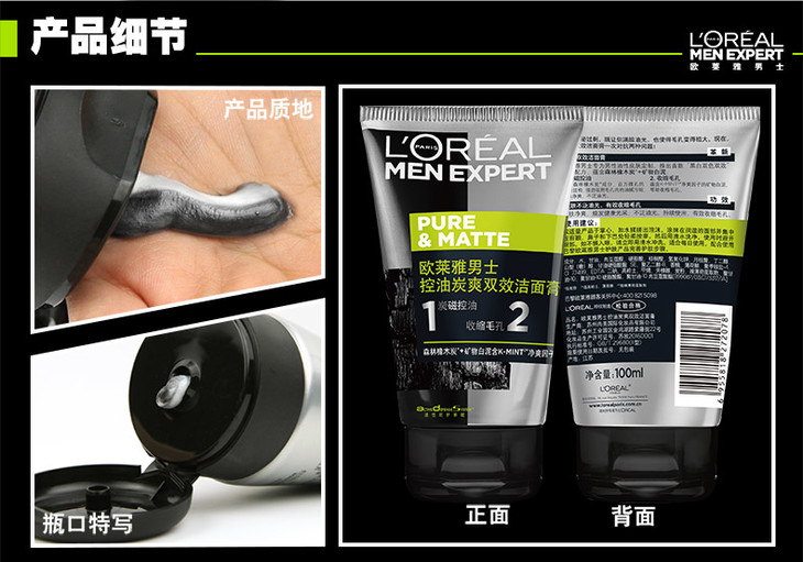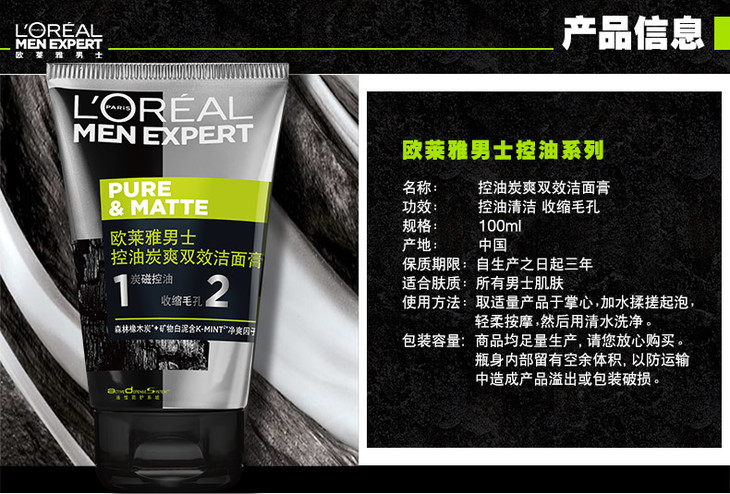 欧莱雅男士控油碳爽洁面膏100ml-会员6折