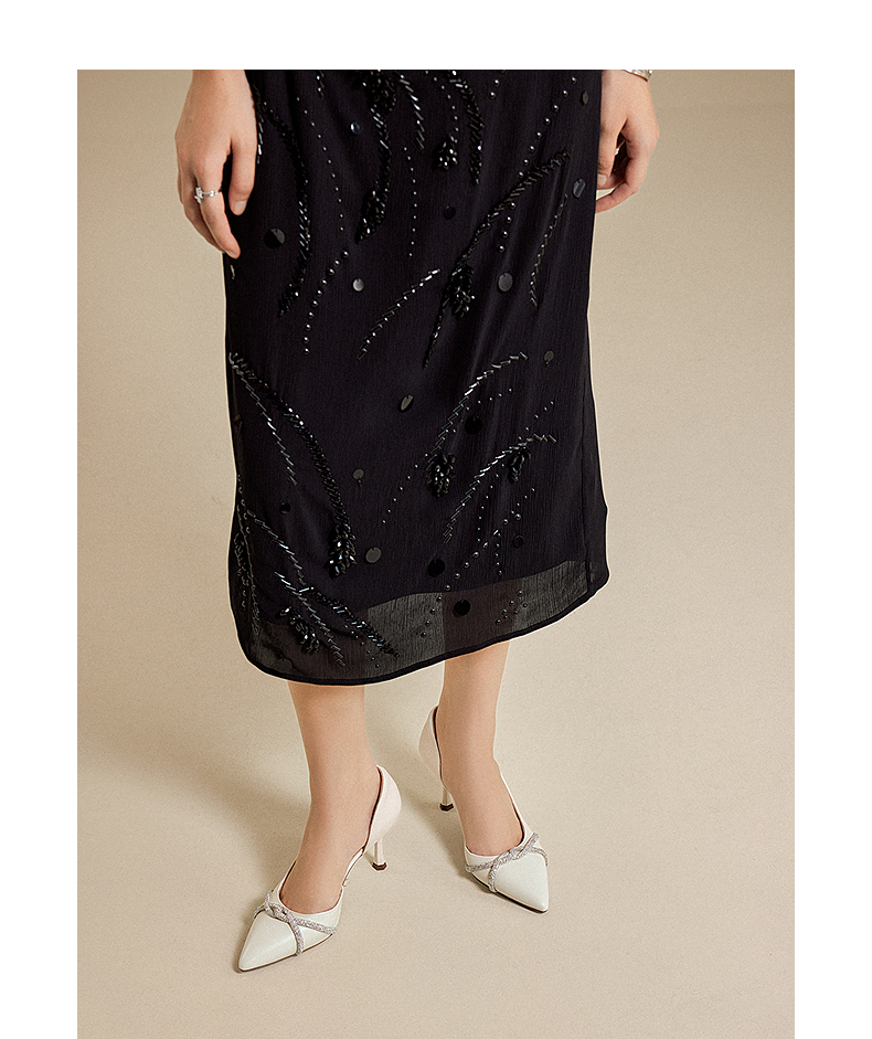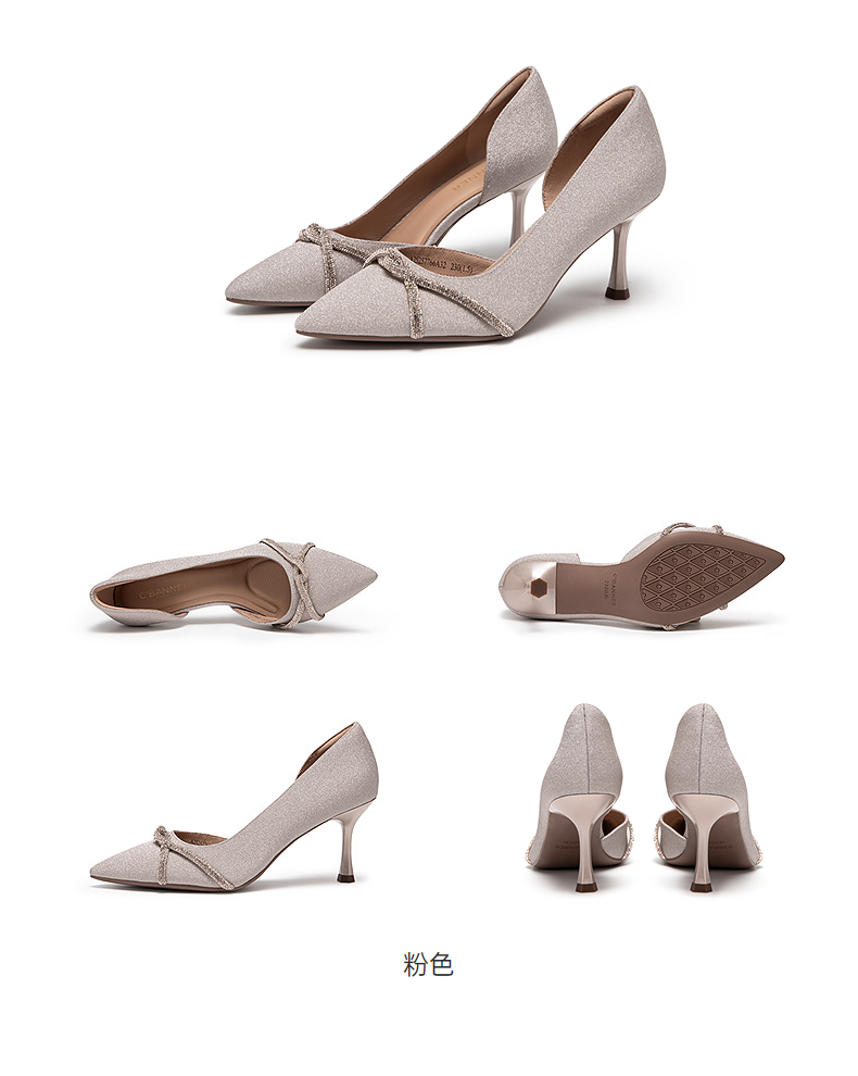 千百度中空半凉女款婚鞋宴会尖头浅口细高跟时装凉鞋A25257766