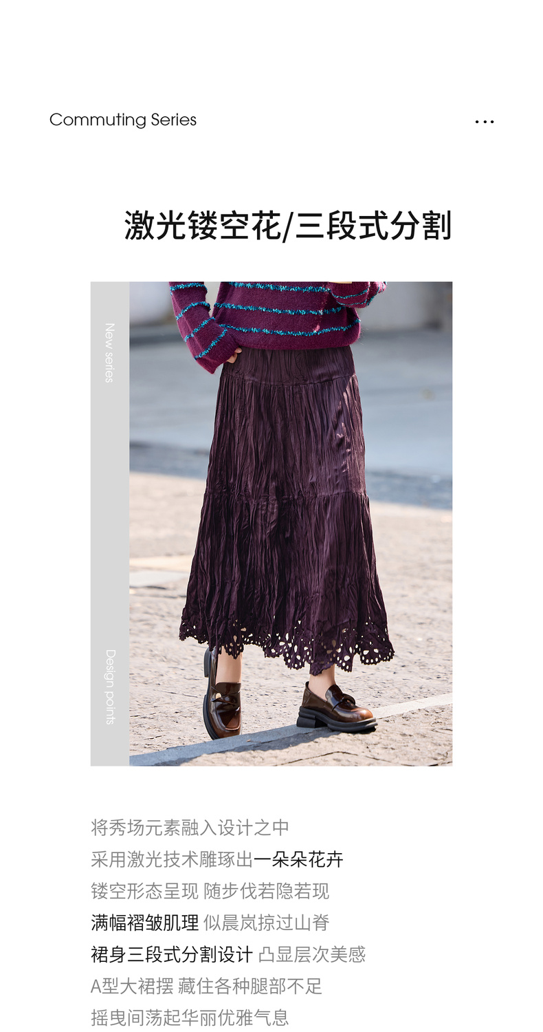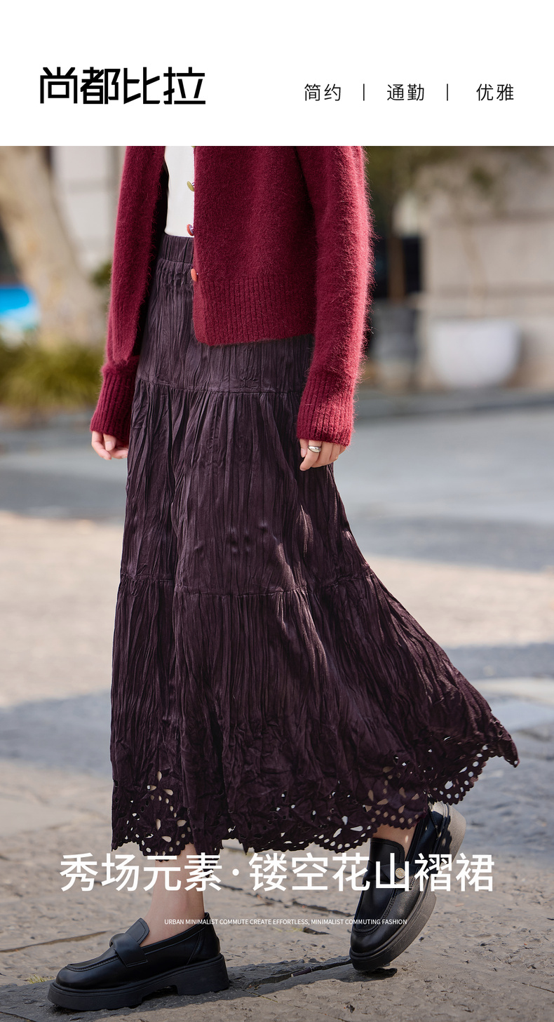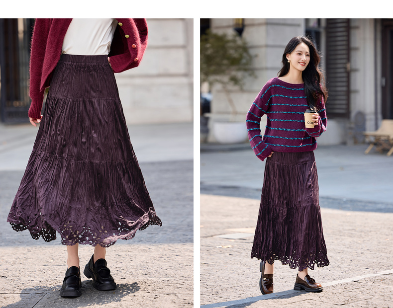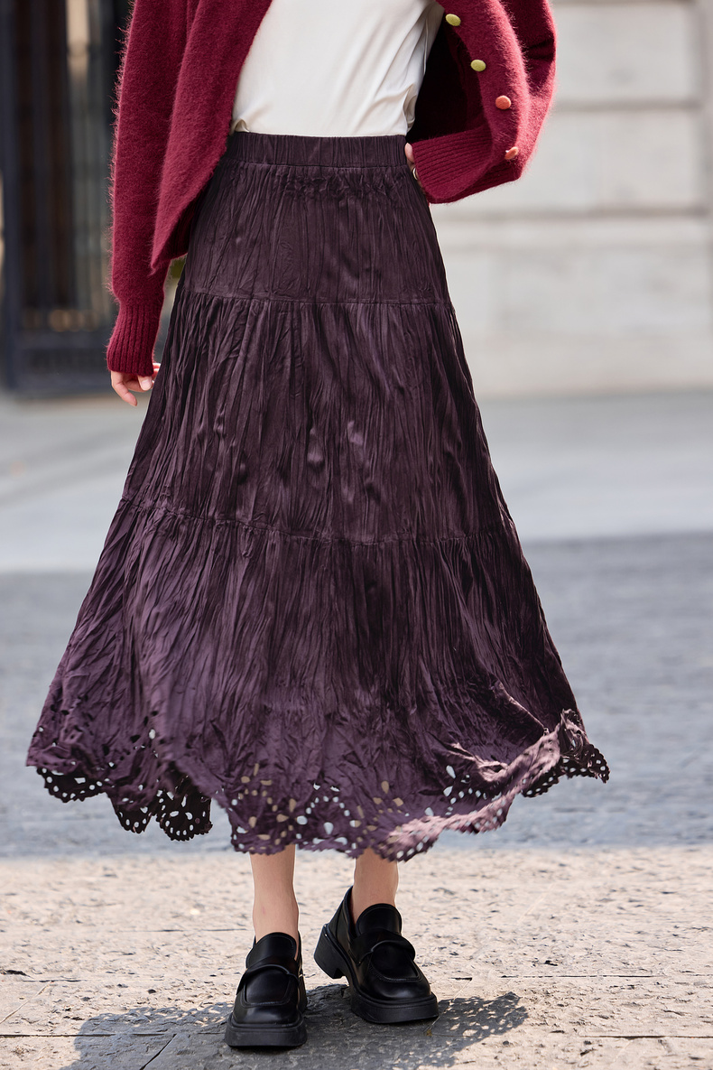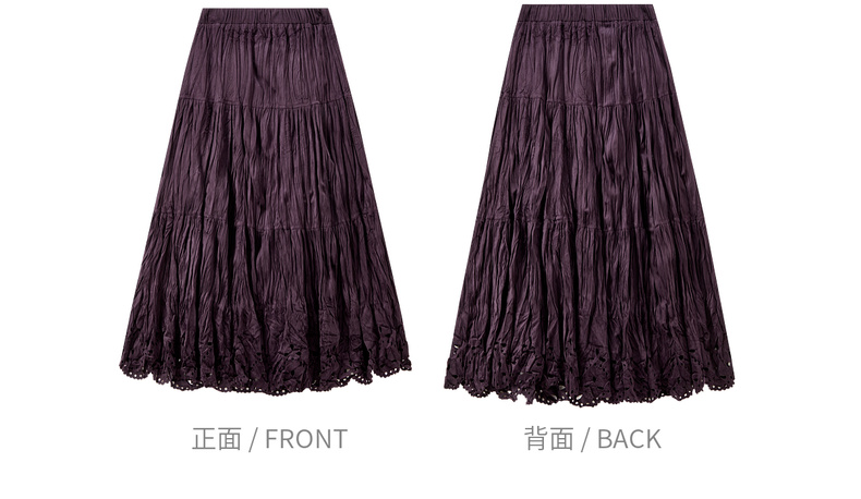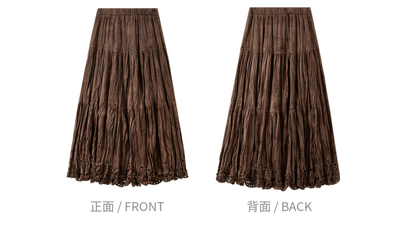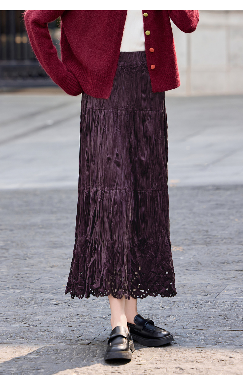 【内购】【镂空花】优雅通勤松紧高腰三段式分割褶皱肌理丝绒厚A字蛋糕裙-W54QB4851