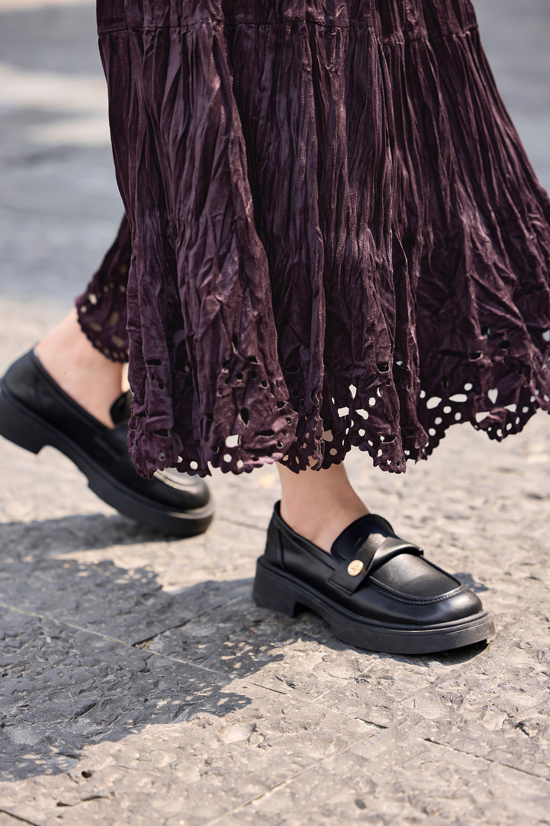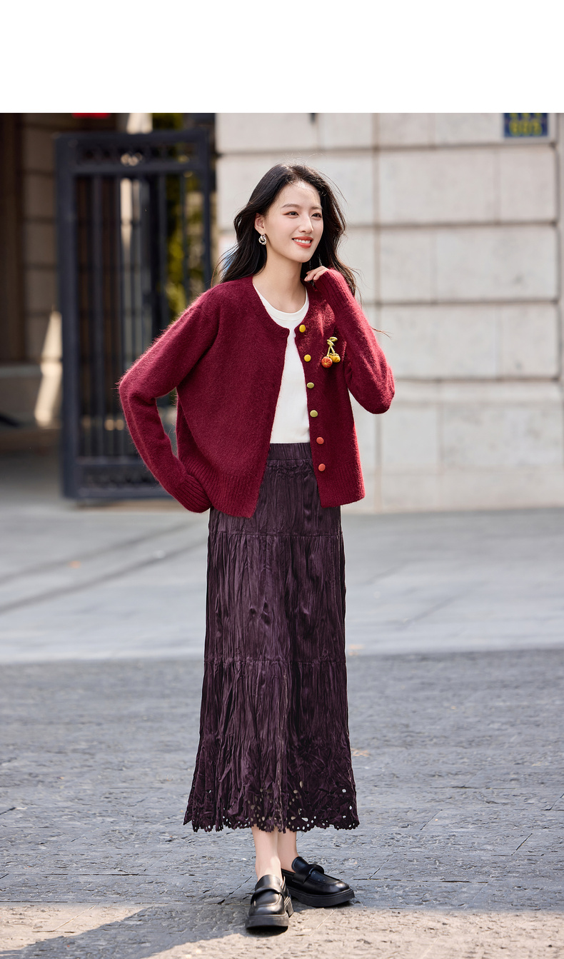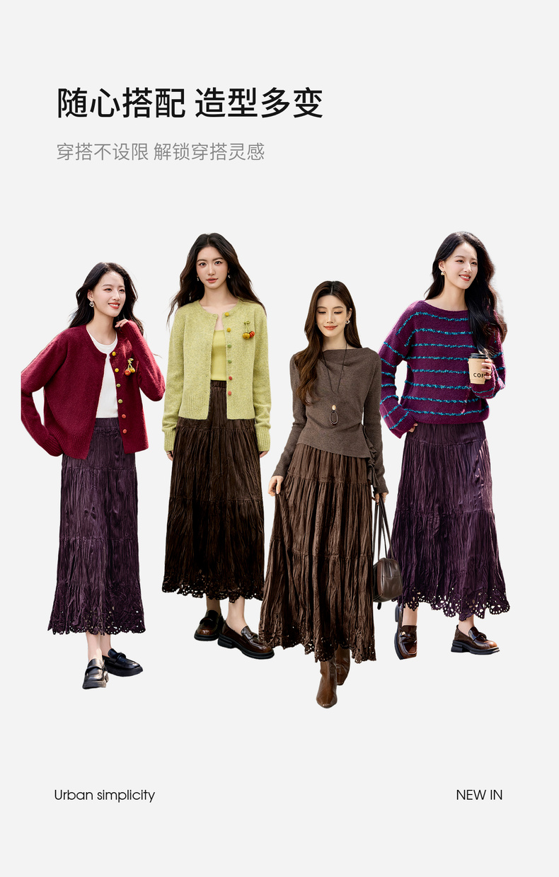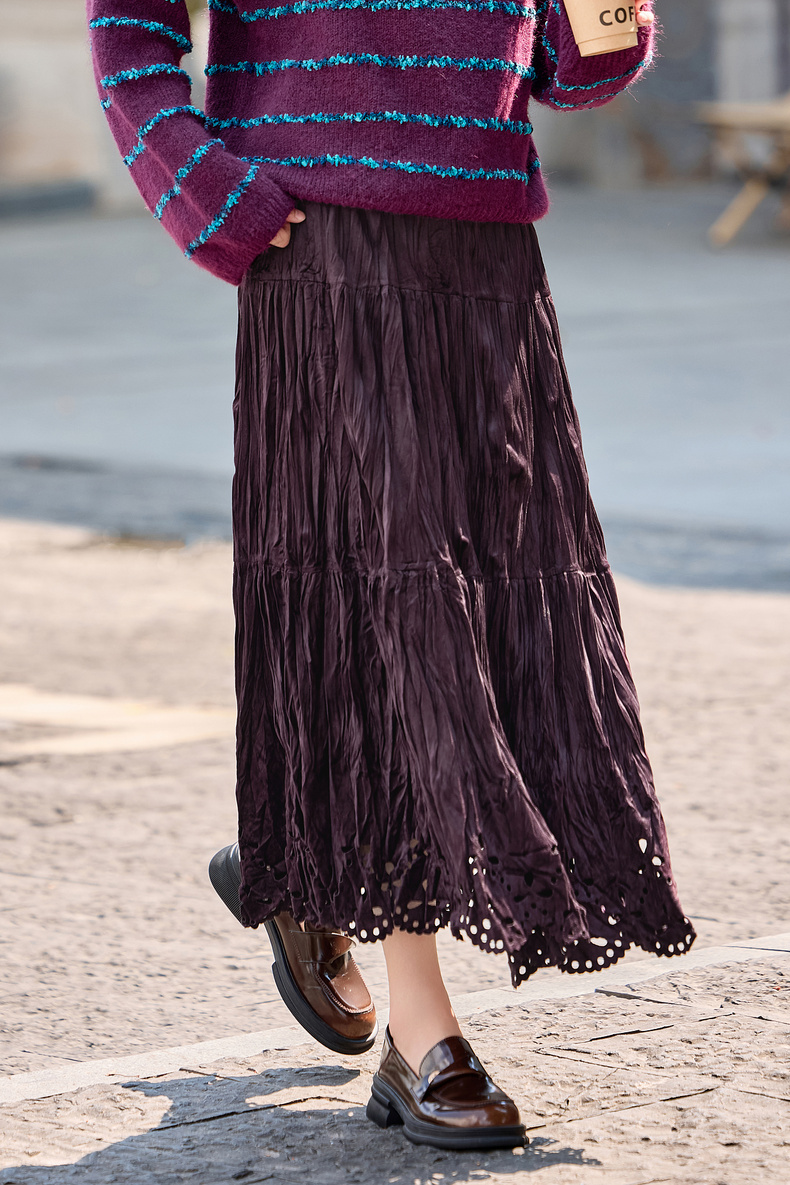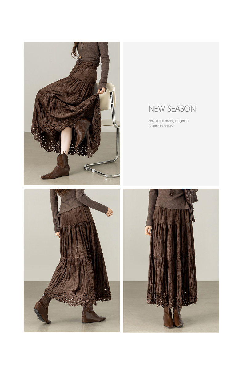 【内购】【镂空花】优雅通勤松紧高腰三段式分割褶皱肌理丝绒厚A字蛋糕裙-W54QB4851