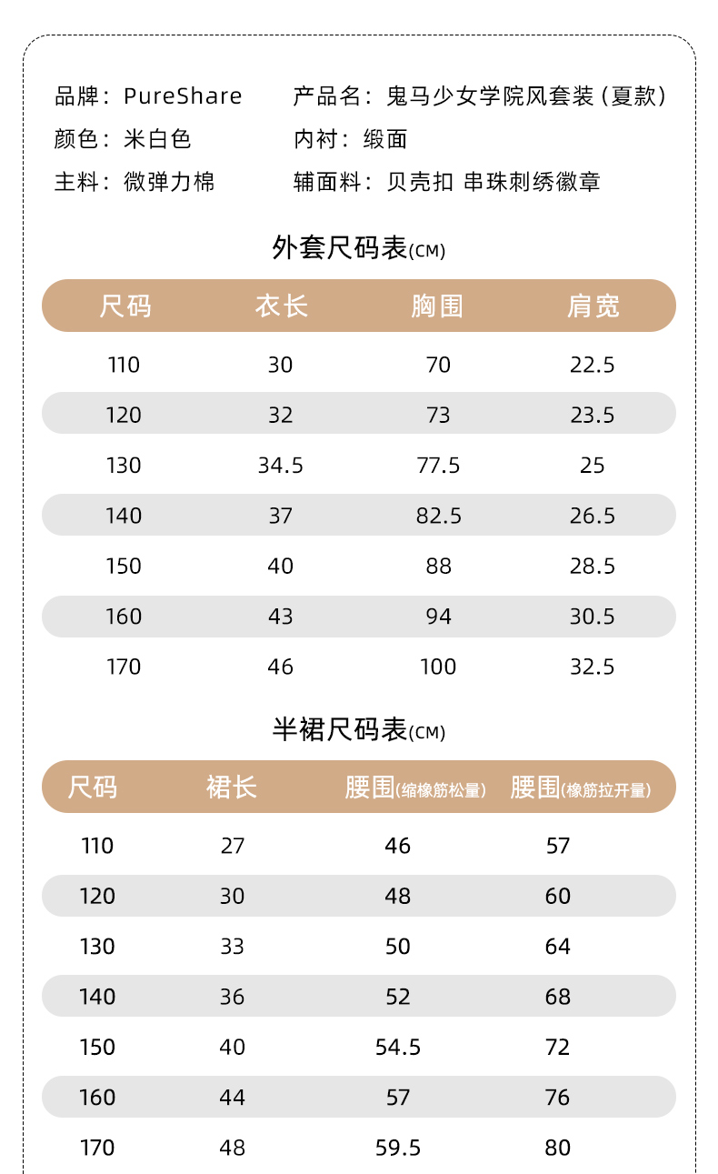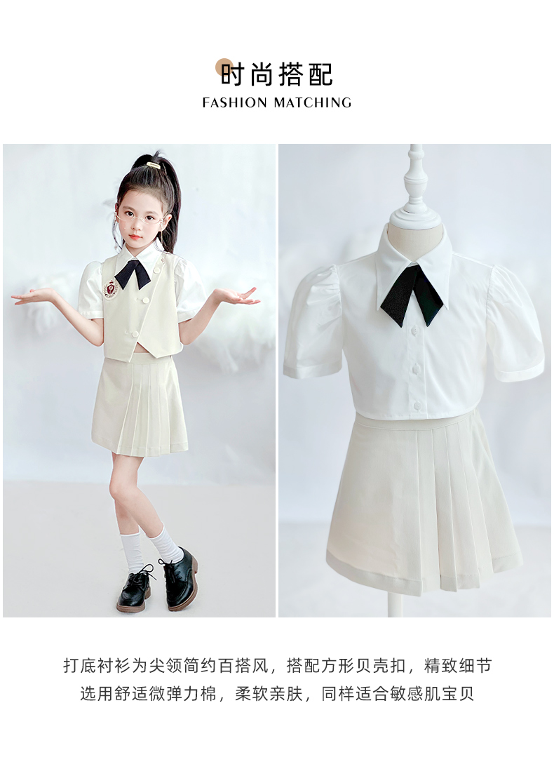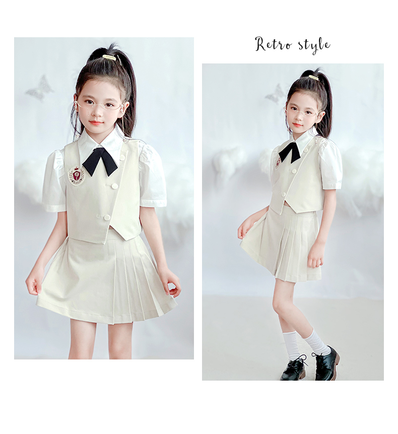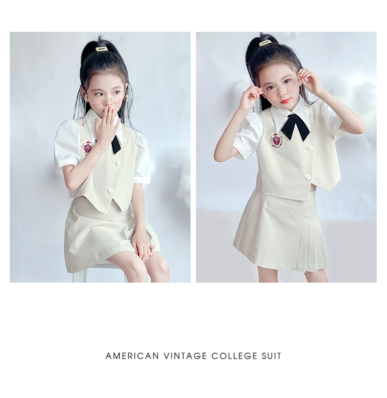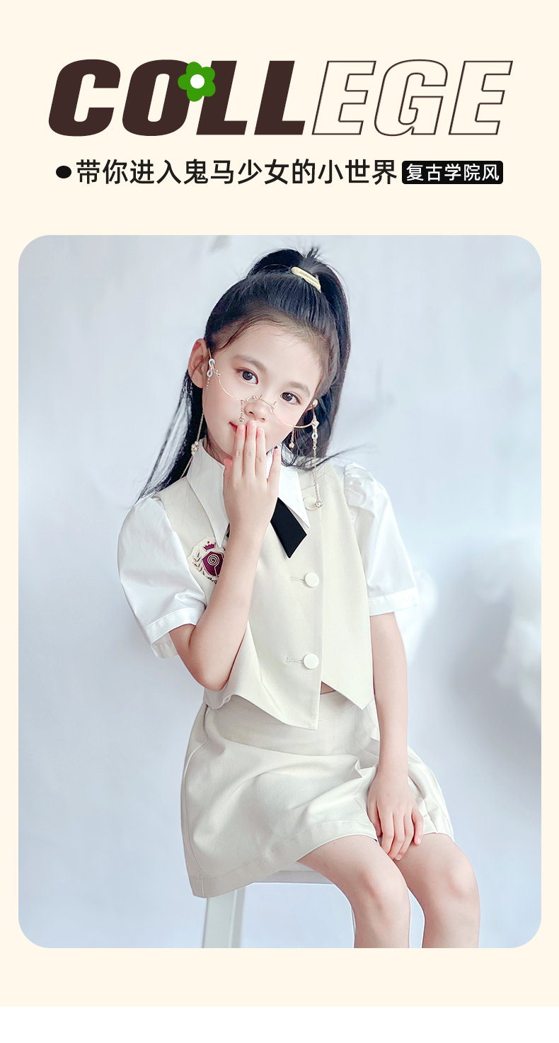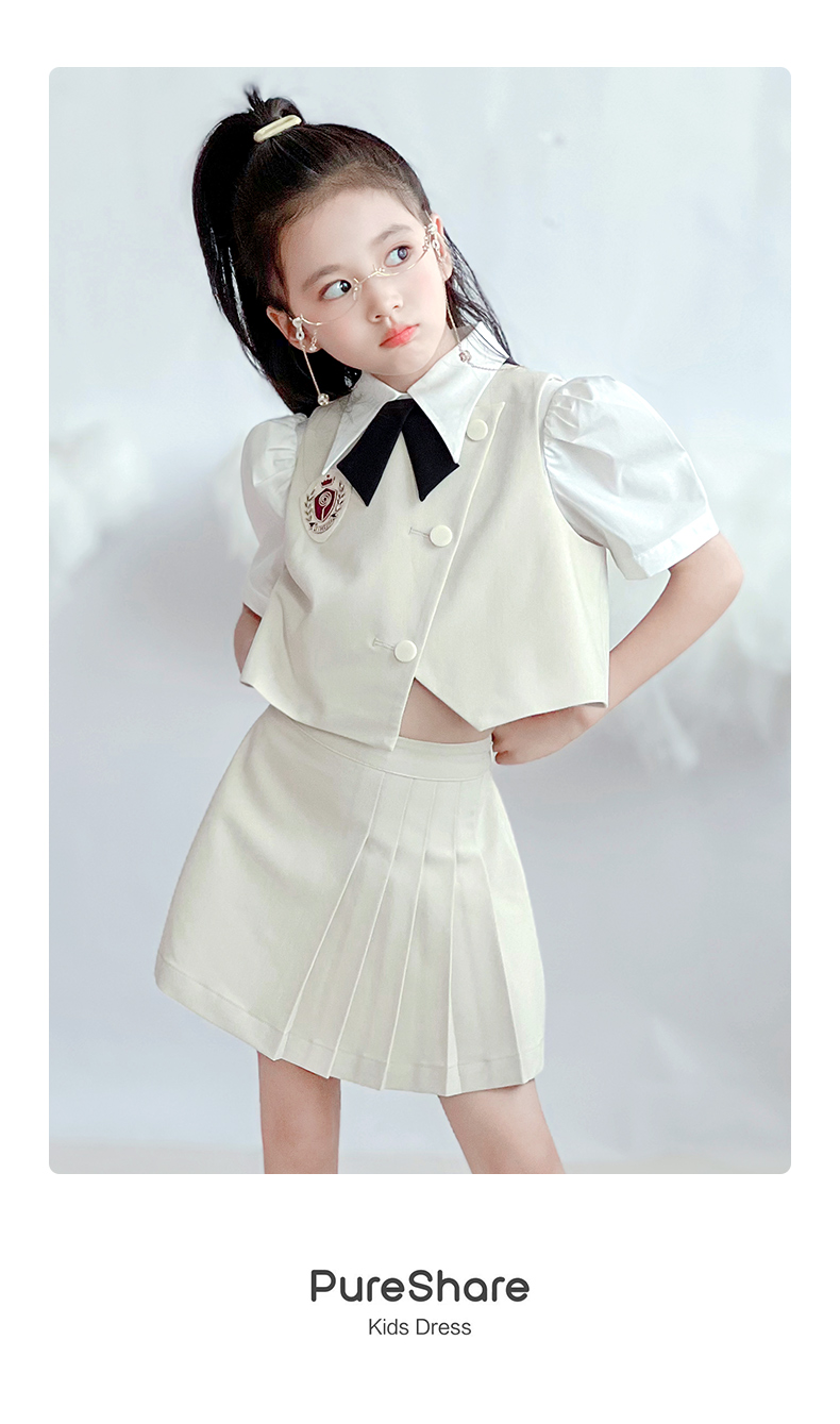 【云优选】pureshare蓬纱馆 女童学院风套装新款儿童百褶裙两件套女孩夏
