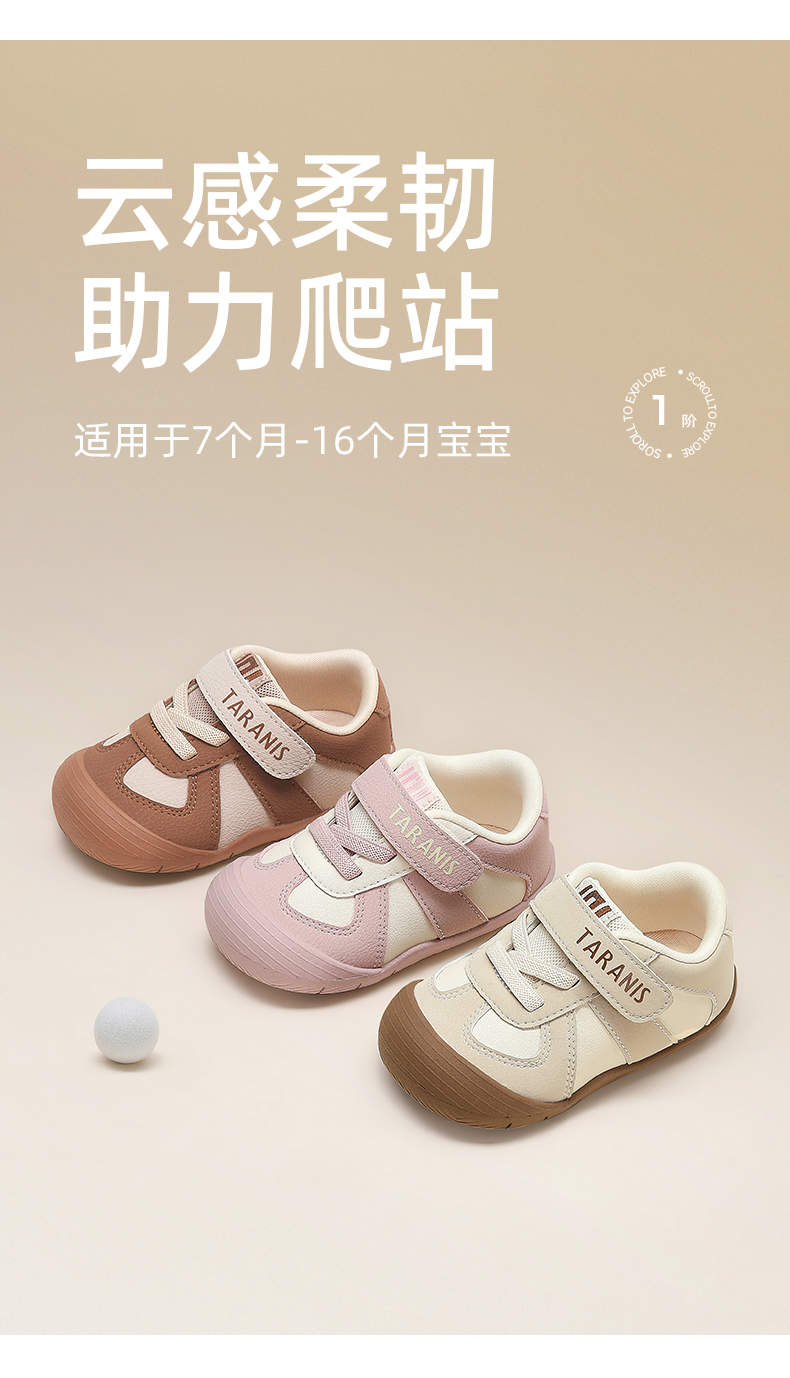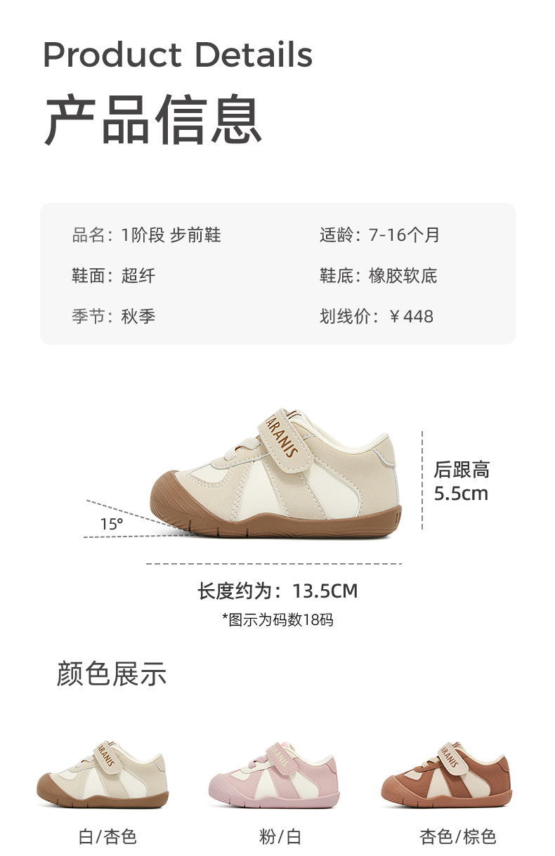 泰兰尼斯101秋季新款婴儿步前鞋男宝宝防滑软底女宝宝婴幼儿童鞋 T24B4C5270