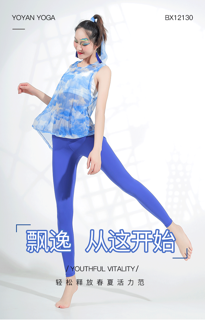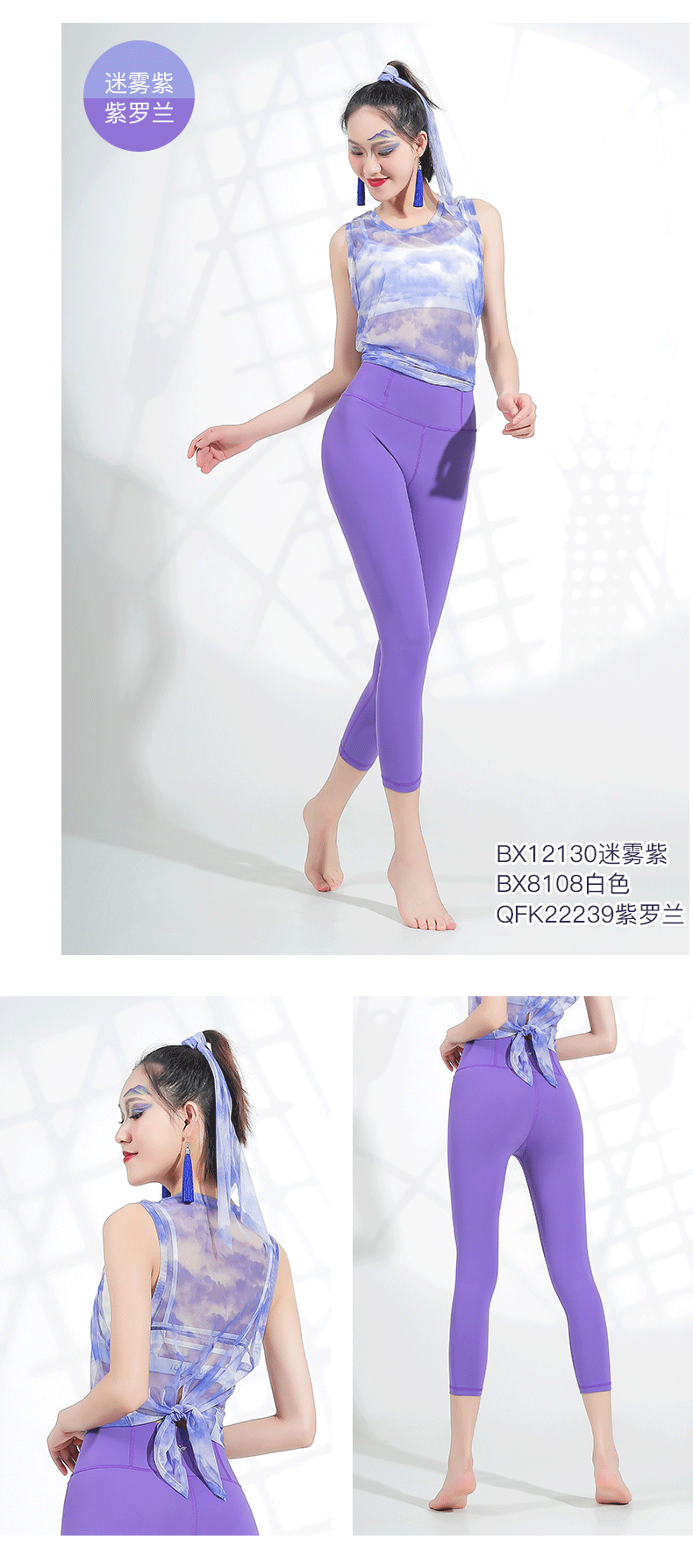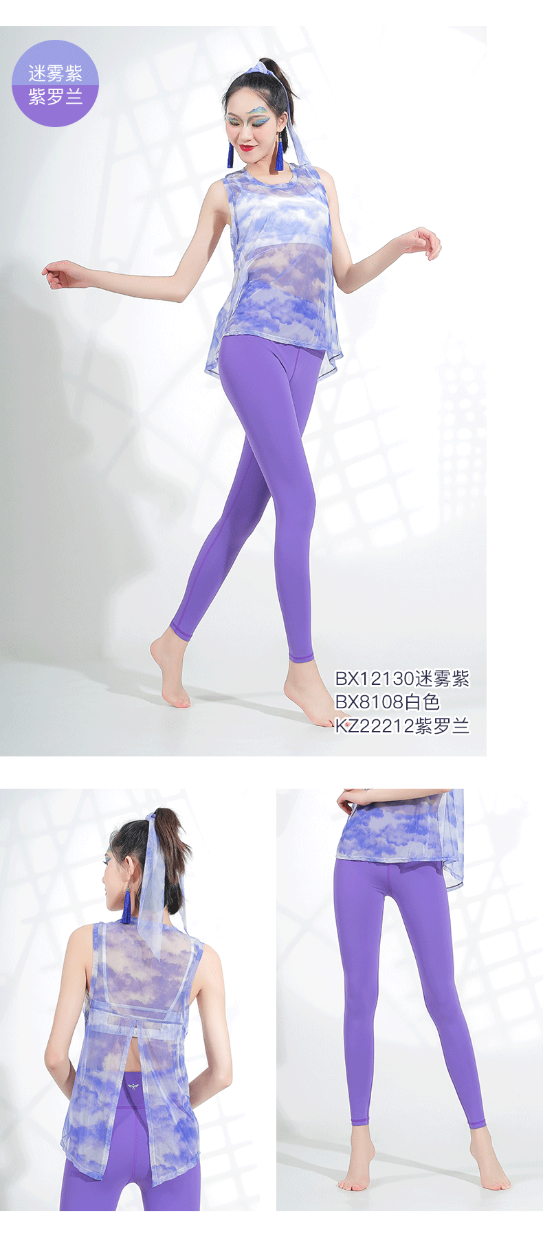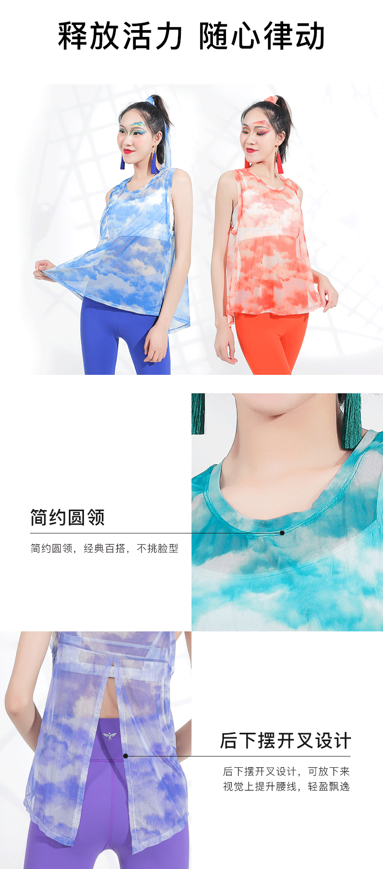 悠妍瑜伽服晕染云朵网纱罩衫BX12130 无袖背心性感透气