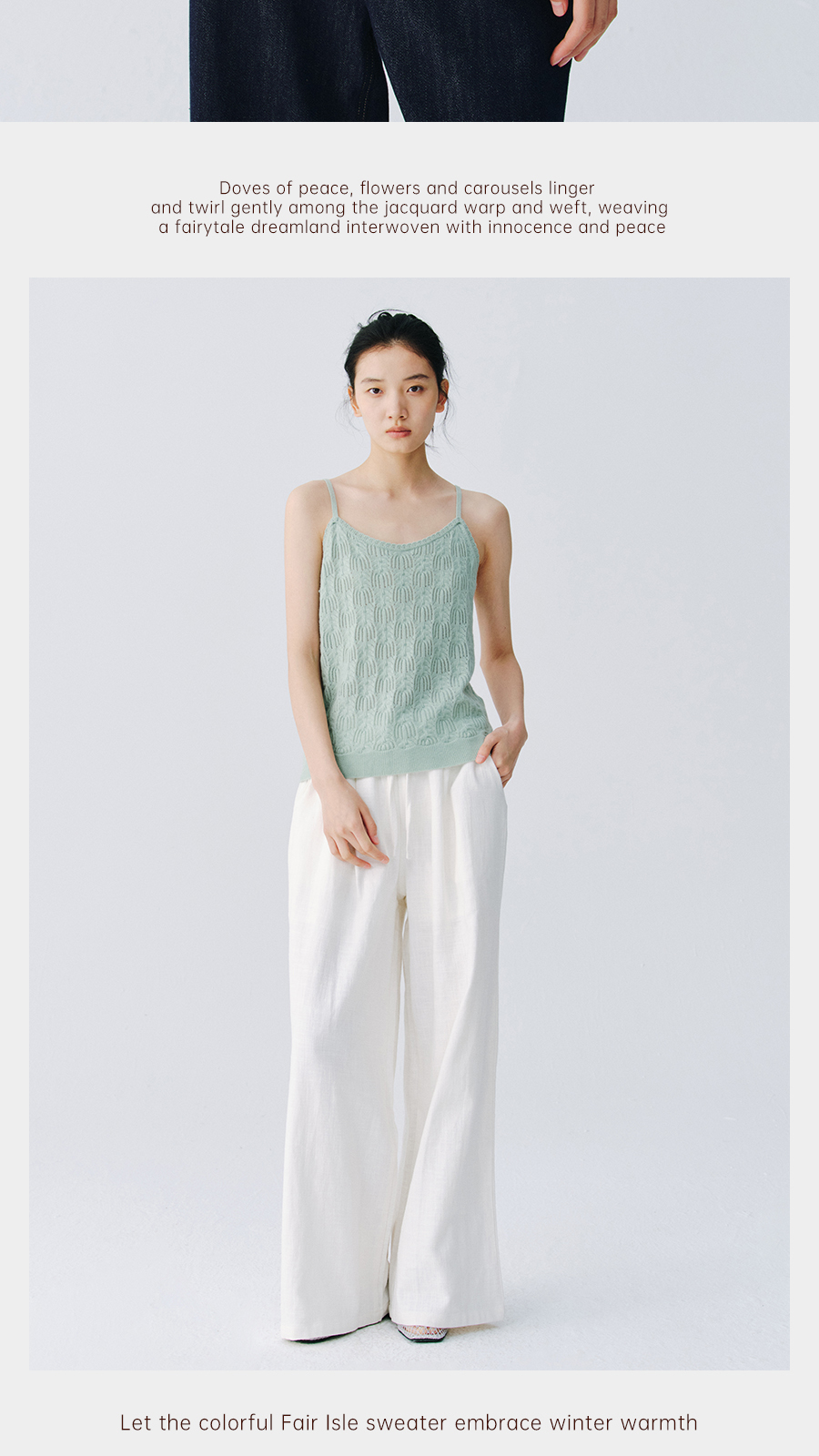 东黎 • 万物复苏 珍珠吊兰 山羊绒女士春夏挑孔时尚背心 6041