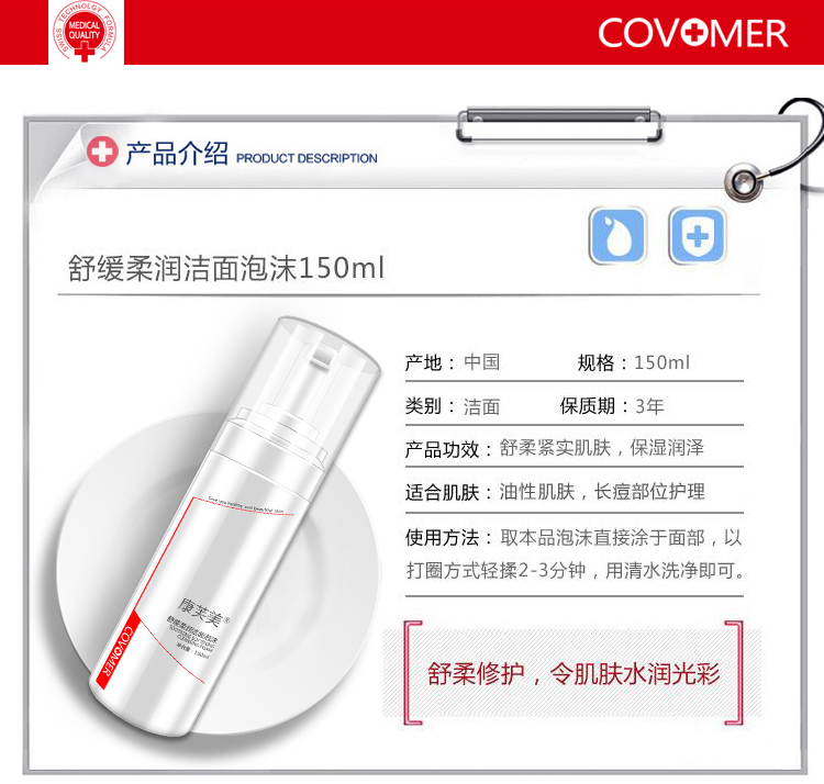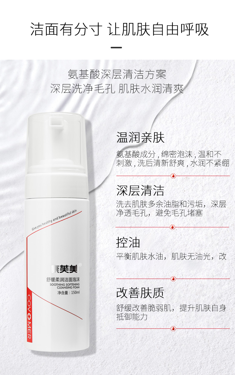 *康芙美 舒缓柔润洁面泡沫 150ml|清洁舒缓 温和不紧绷 氨基酸控油洗面奶 任何肤质可用