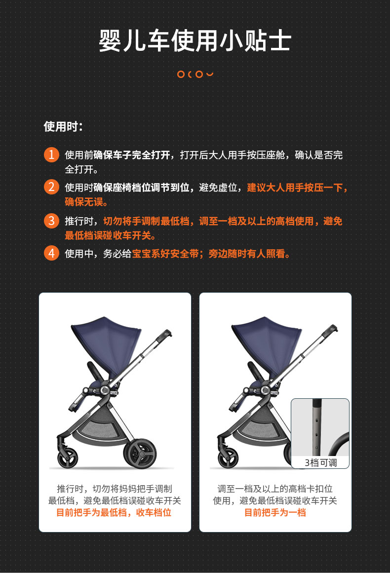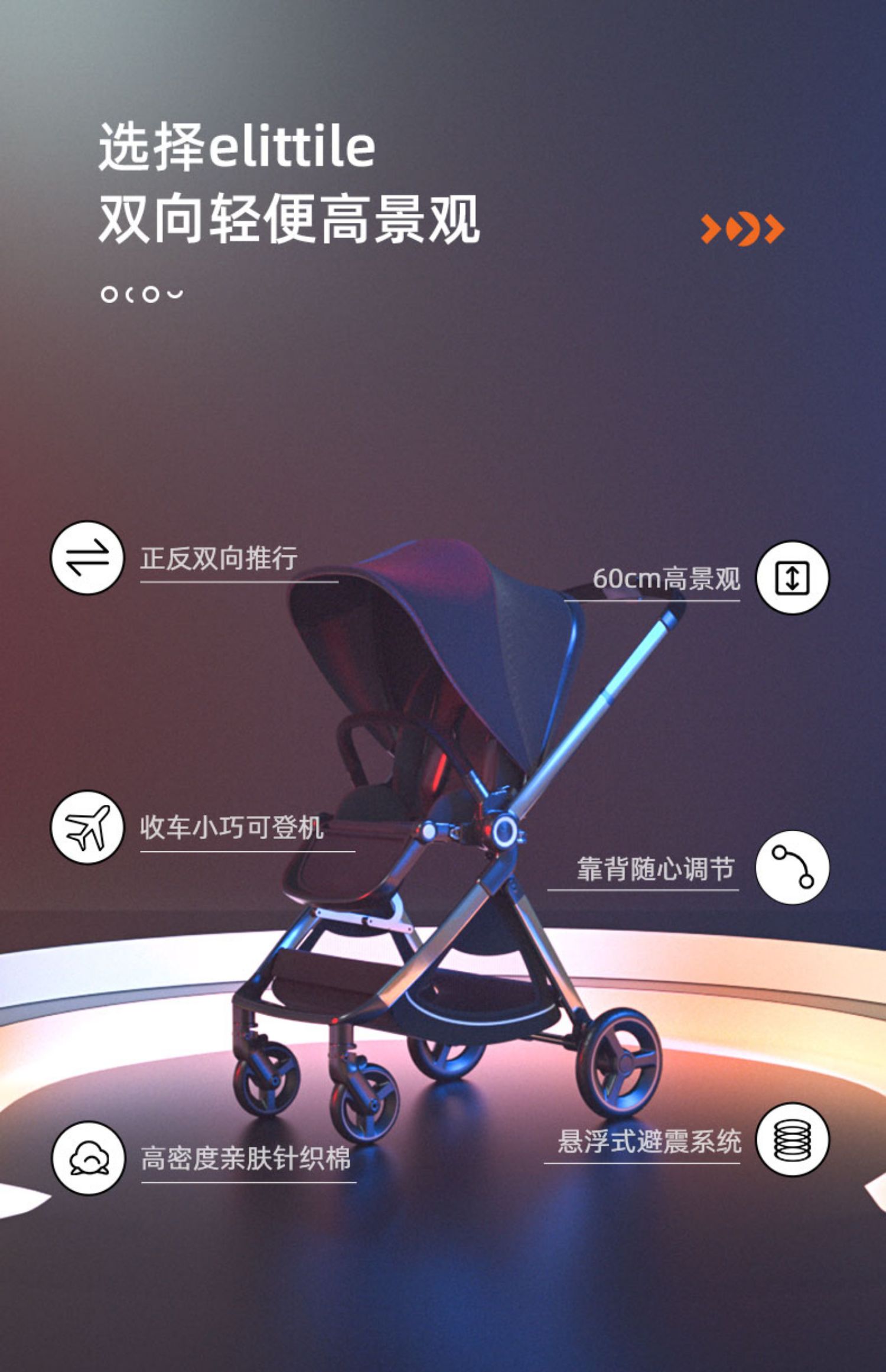 elittile逸乐途emu婴儿推车高景观避震轻便一键折叠可坐躺双向车