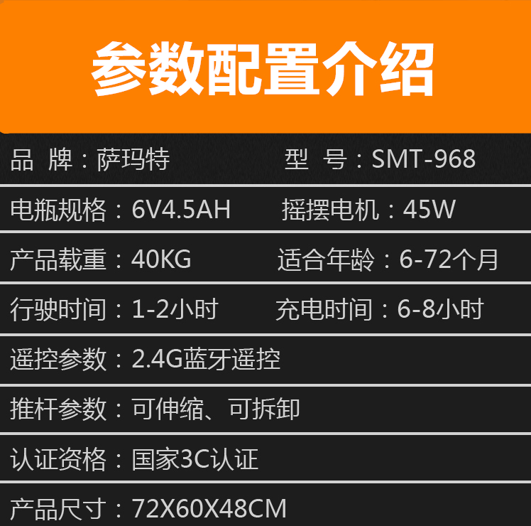 萨玛特婴儿童电动车四轮汽车带遥控宝宝1-3岁手推车可坐充电摩托玩具车SMT-968