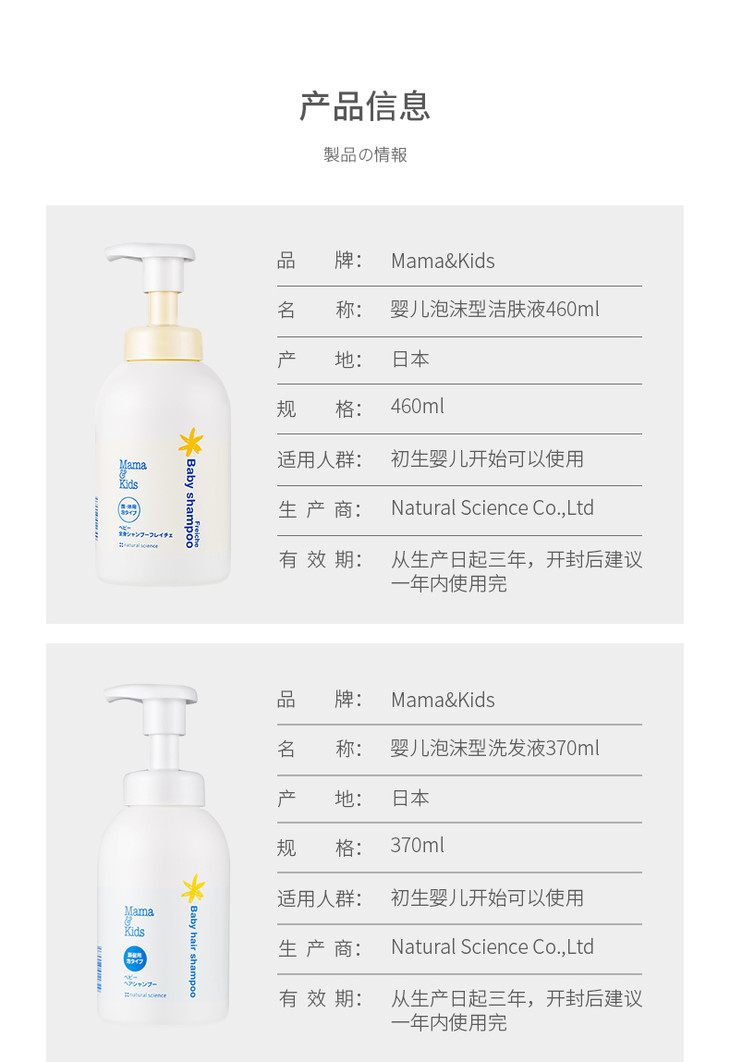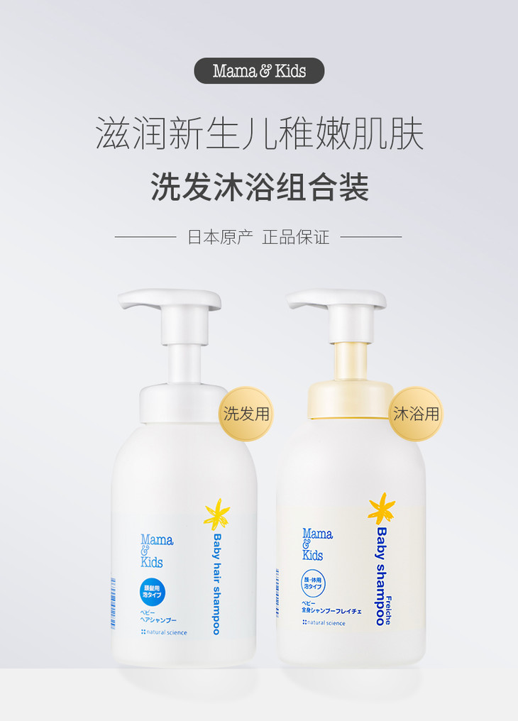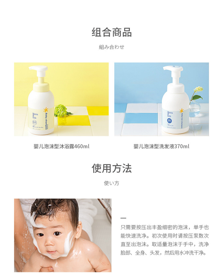 日本MamaKids婴儿沐浴露+洗发水宝宝洗护沐浴套装护婴不伤肤