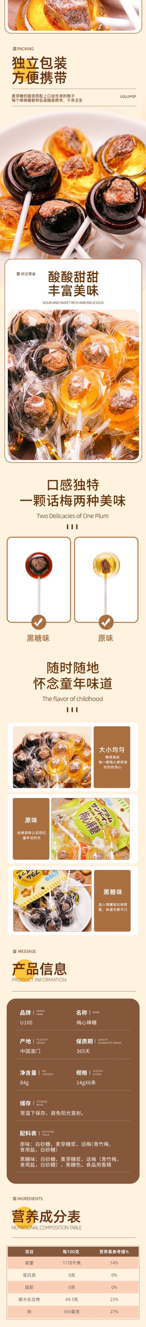 U100梅心棒棒糖84g原味/黑糖味 糖与话梅结合酸甜不腻很是刺激 064456/064457