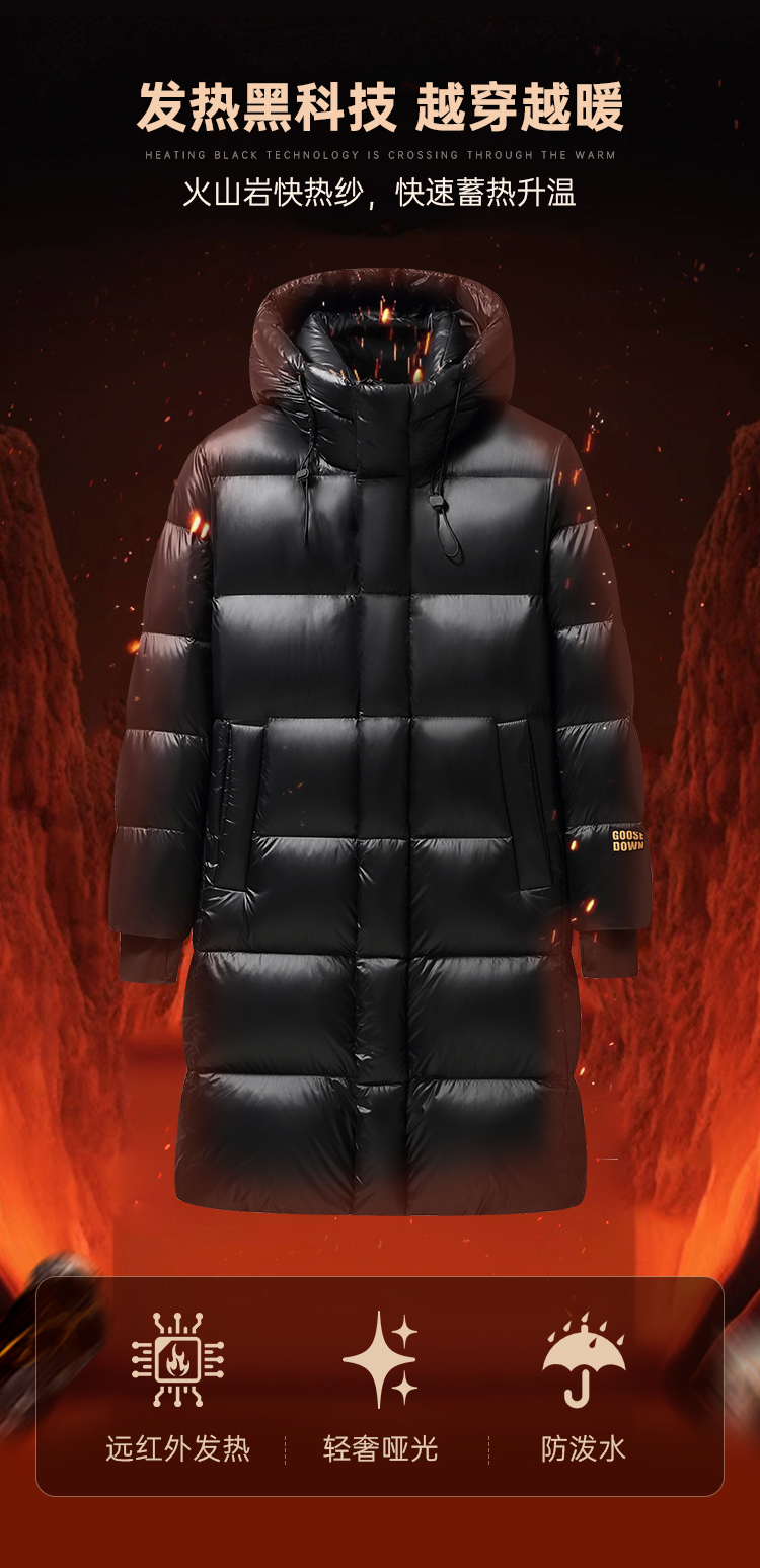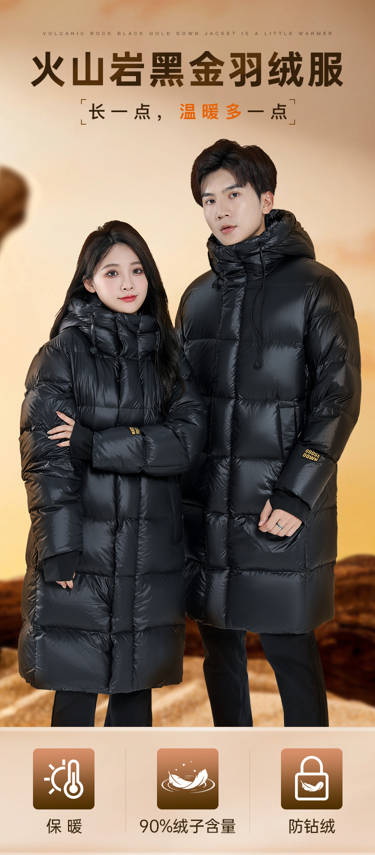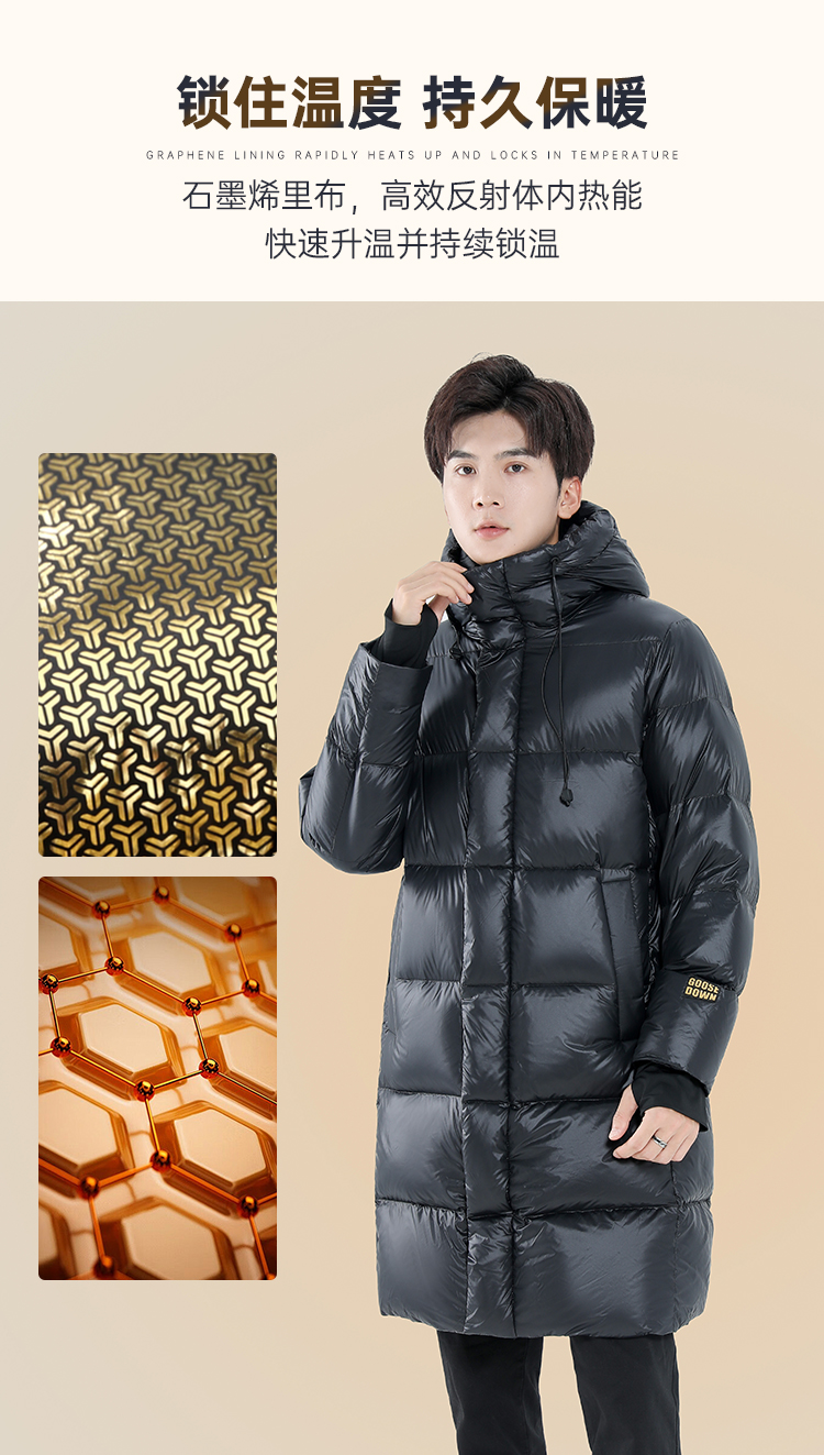 【实付满399送保温杯】【石墨烯火山岩黑金长款羽绒/鹅绒服】男女同款保暖羽绒服外套通勤连帽棉服YT409