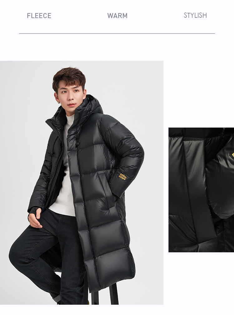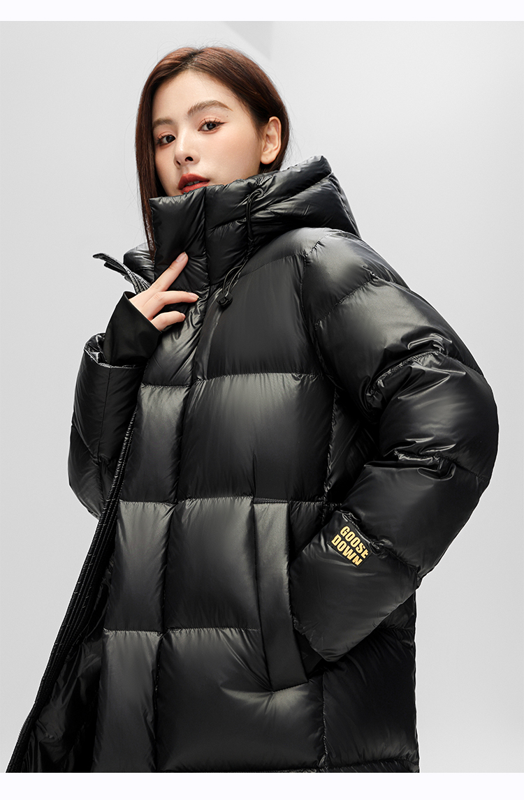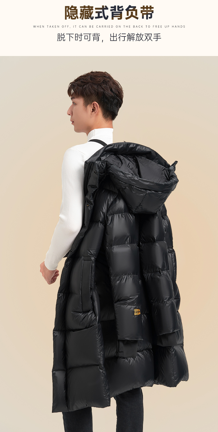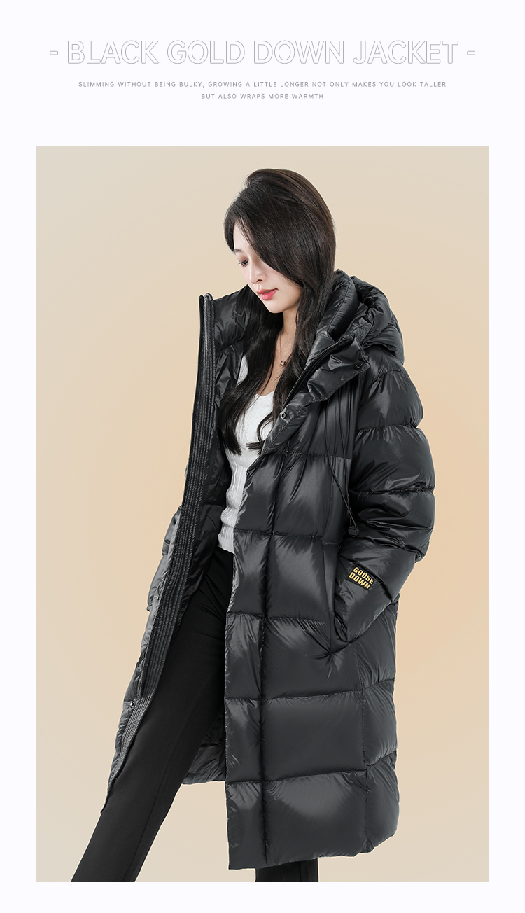 【实付满399送保温杯】【石墨烯火山岩黑金长款羽绒/鹅绒服】男女同款保暖羽绒服外套通勤连帽棉服YT409