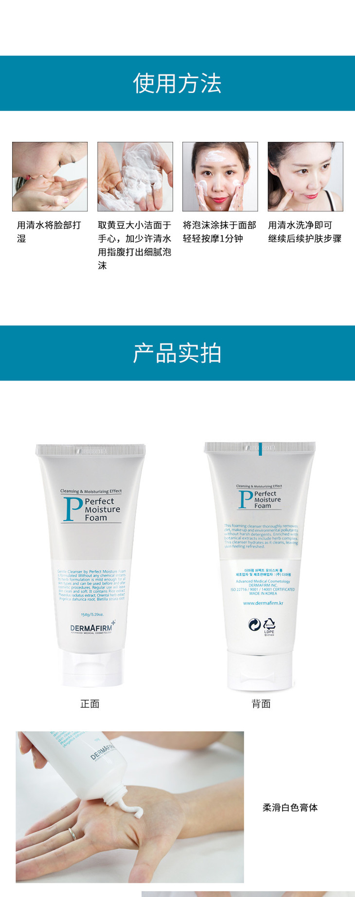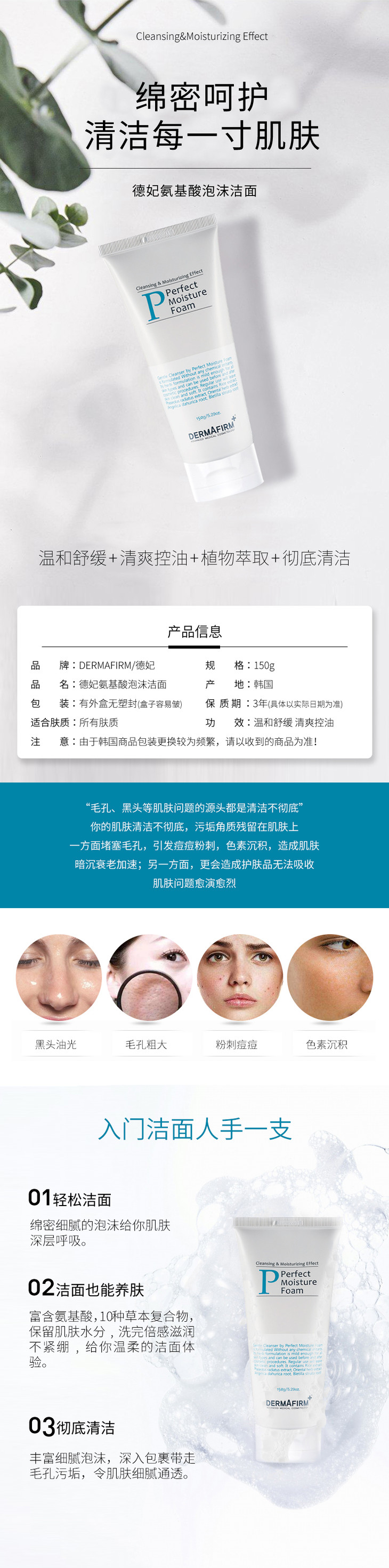 【现货】韩国德妃洗面奶DERMAFIRM德菲温和敏感补水控油泡沫氨基酸洁面乳
