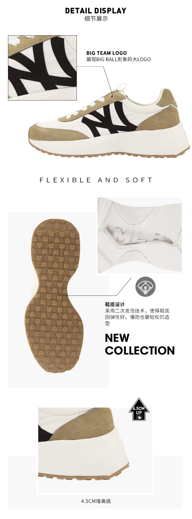 【授权商品】MLB情侣鞋春季新款NY增高轻便运动老爹鞋慢跑休闲鞋32SHX1111-50I
