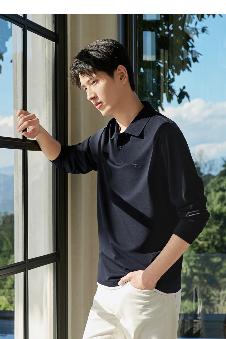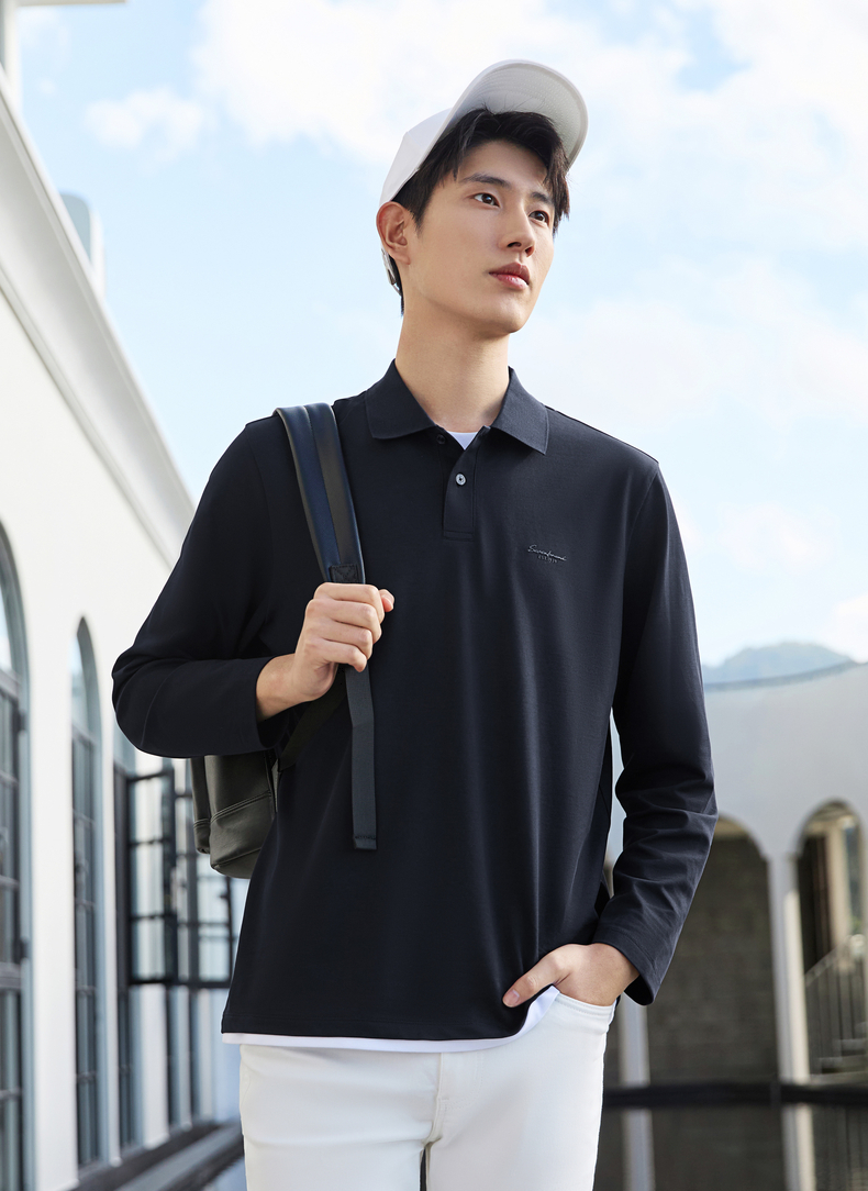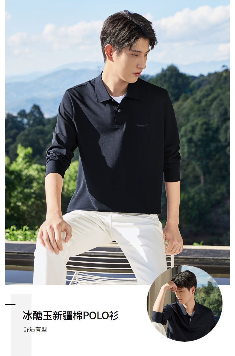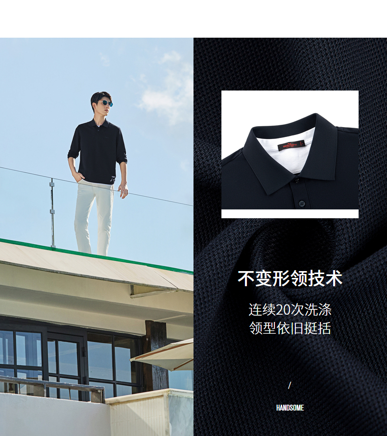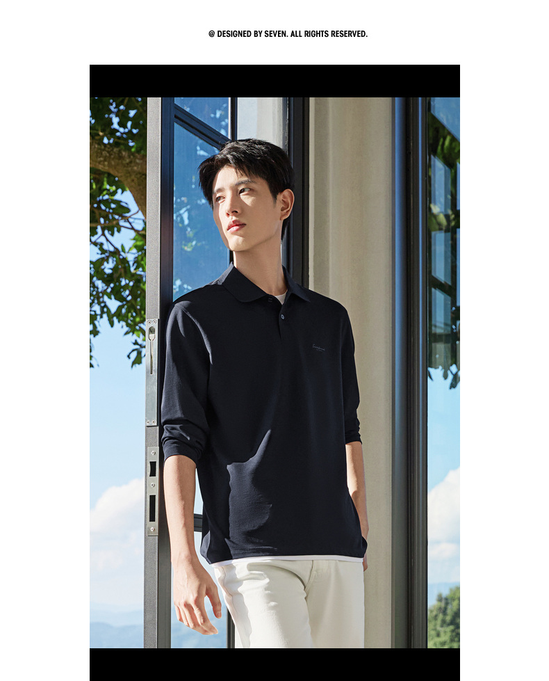 【假两件|不变形领】柒牌长袖Polo衫男26春季新品商务休闲翻领T恤130T71140