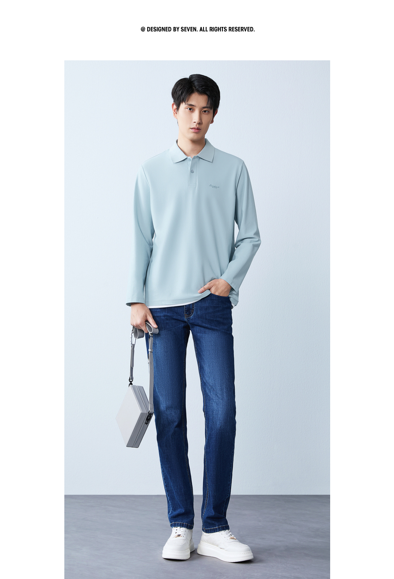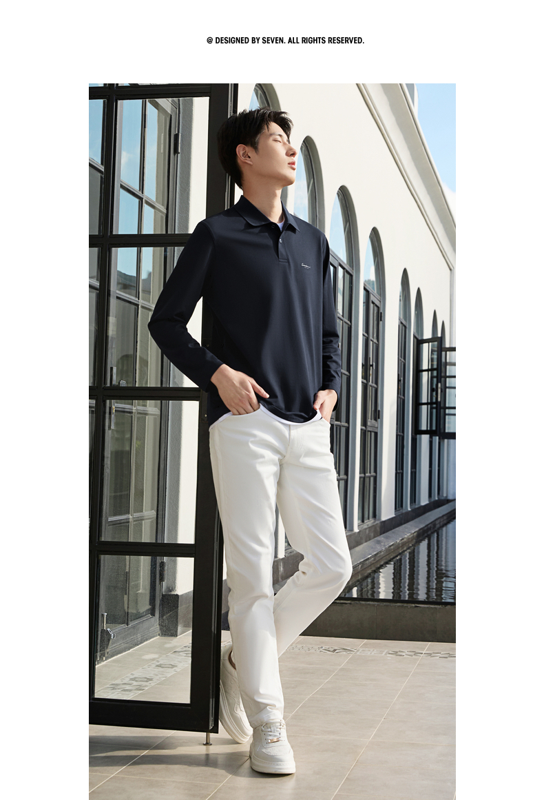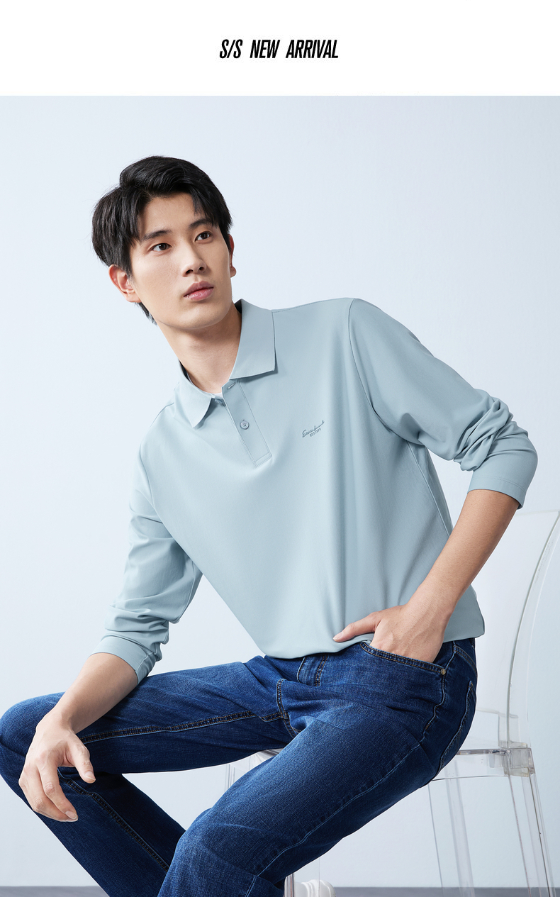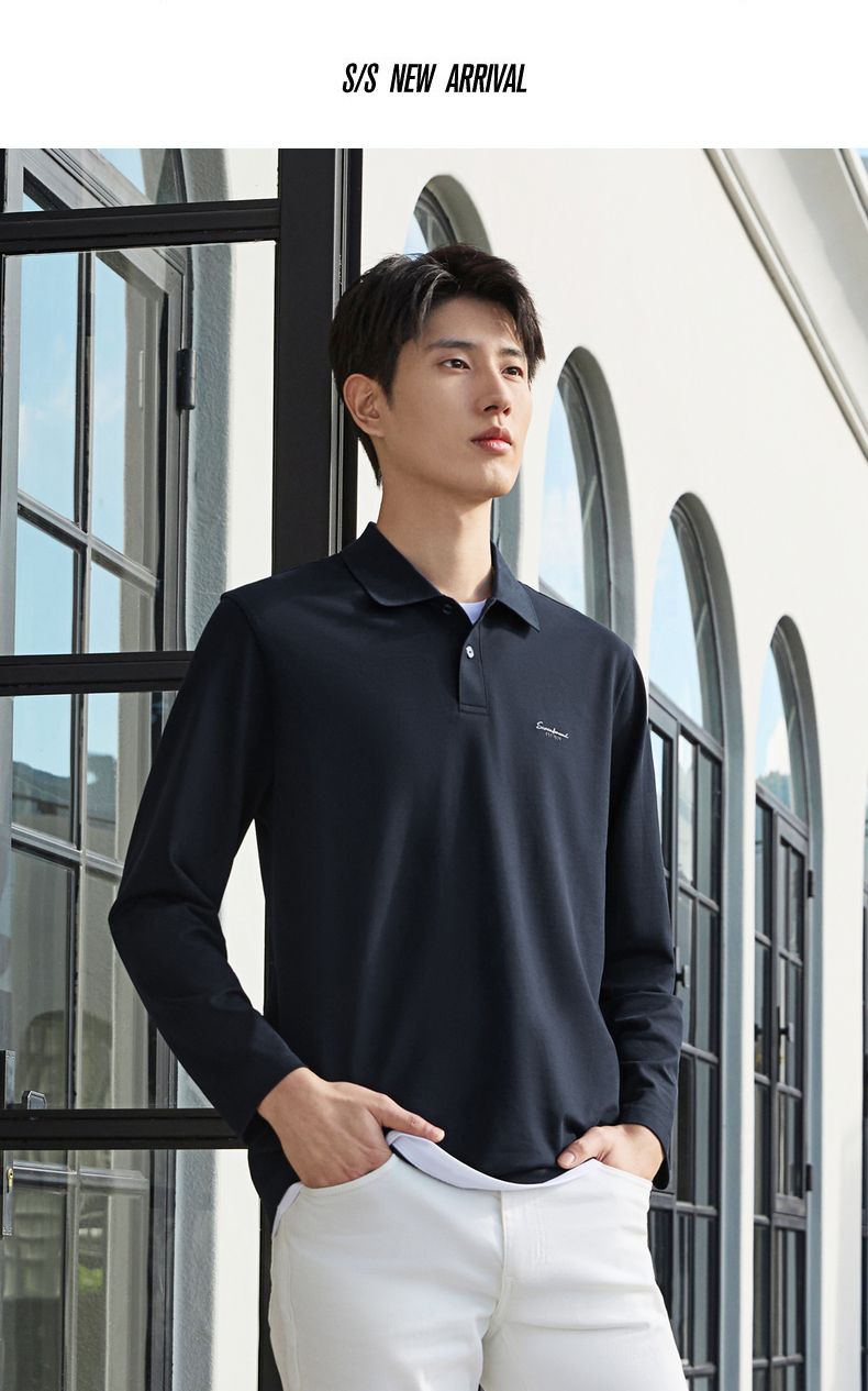 【假两件|不变形领】柒牌长袖Polo衫男26春季新品商务休闲翻领T恤130T71140