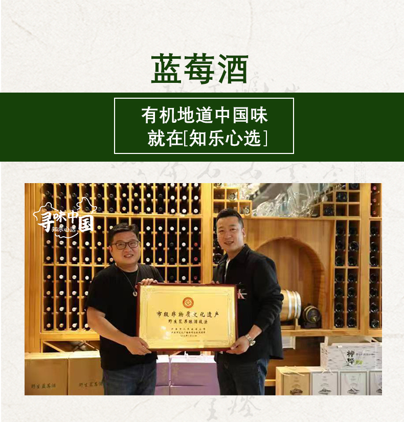 【中国非遗技艺 野生蓝莓酒 】原始酿酒技法 8度750ml 双支装