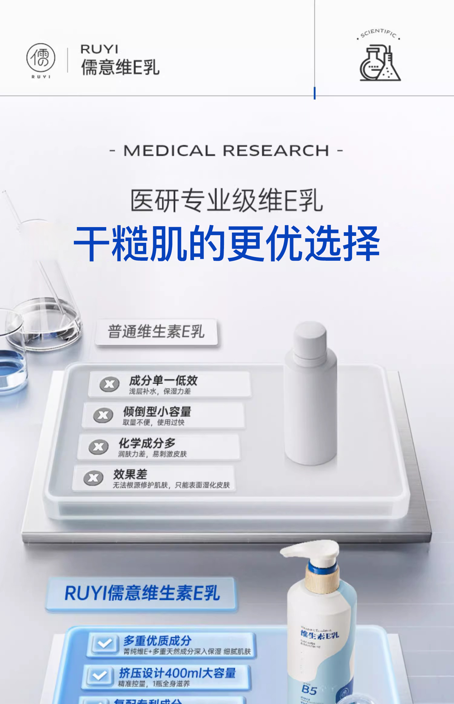专属 儒意维生素e乳 保湿补水滋润修护女男 维E面霜身体乳400ml/瓶