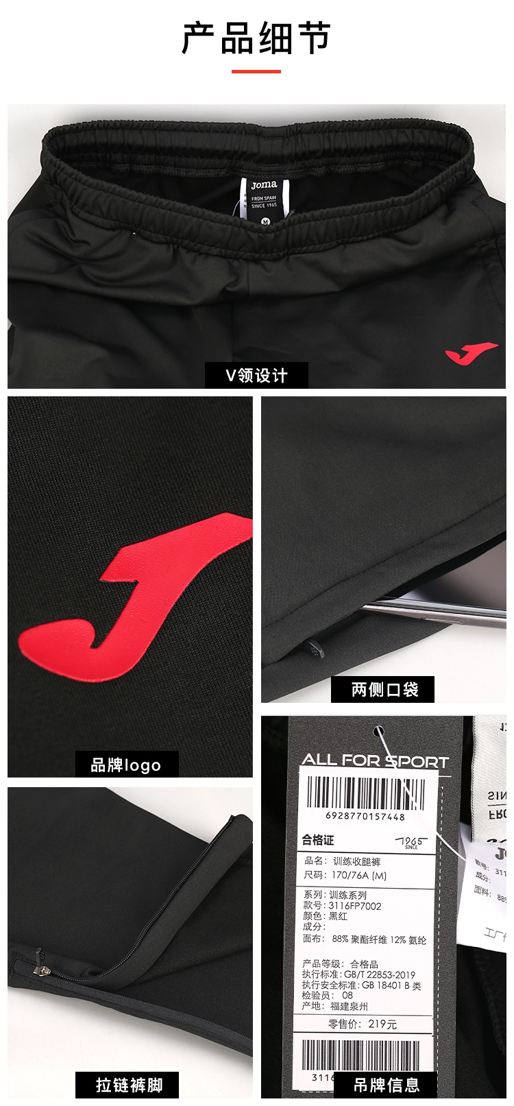 JOMA/霍马足球运动休闲训练比赛收腿裤男3116FP7002