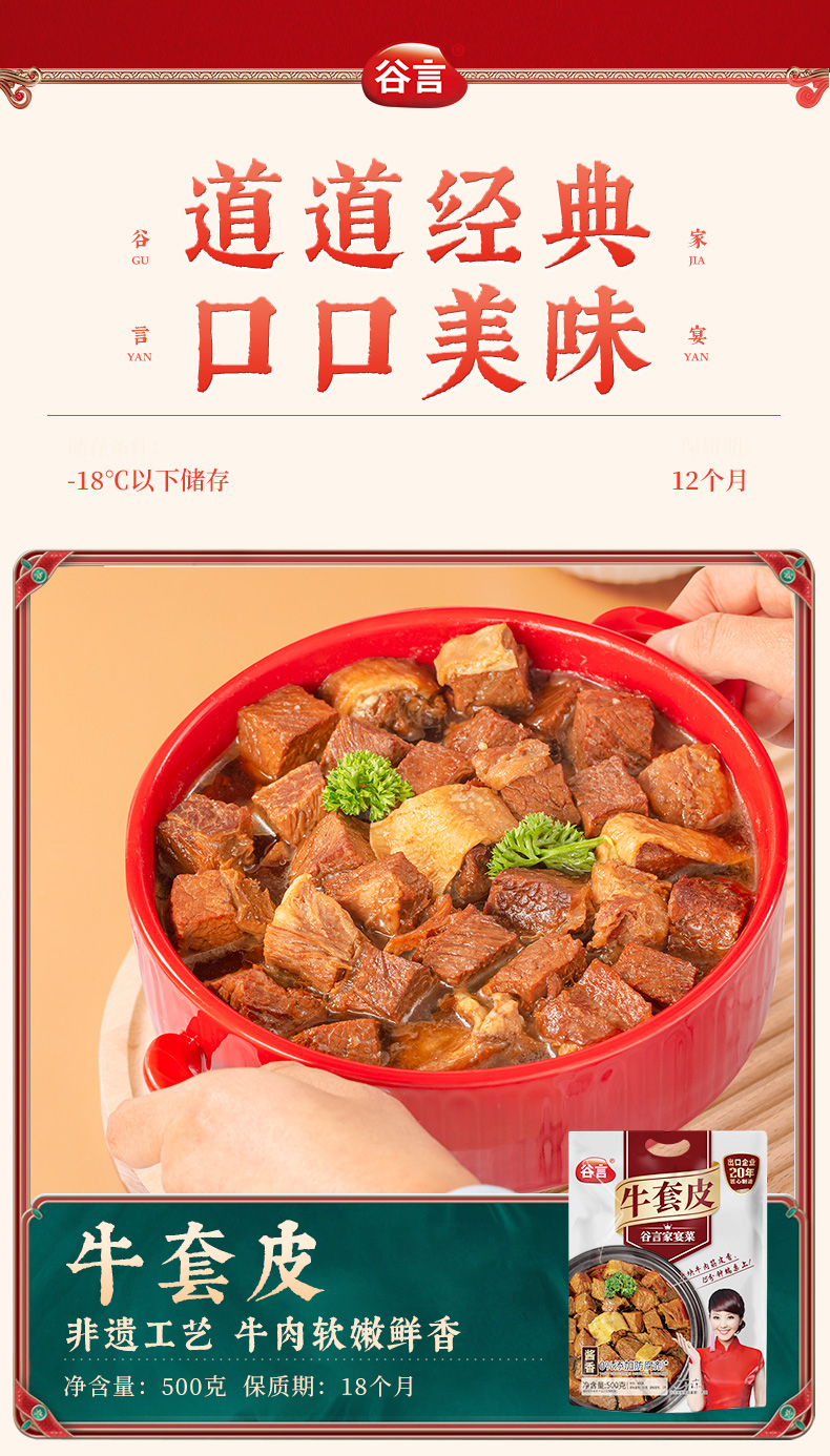 谷言牛套皮家庭快手菜非物质文化遗产美食家庭预制菜500g单袋/两袋装-不支持7天无理由退换货