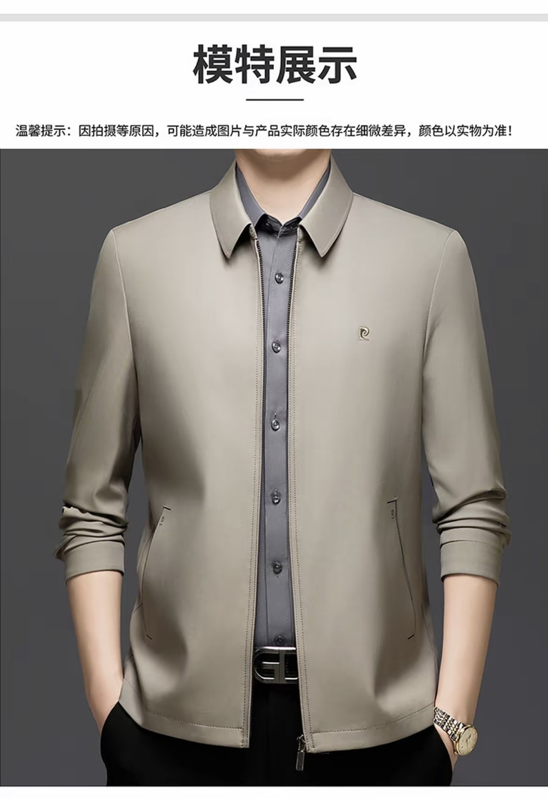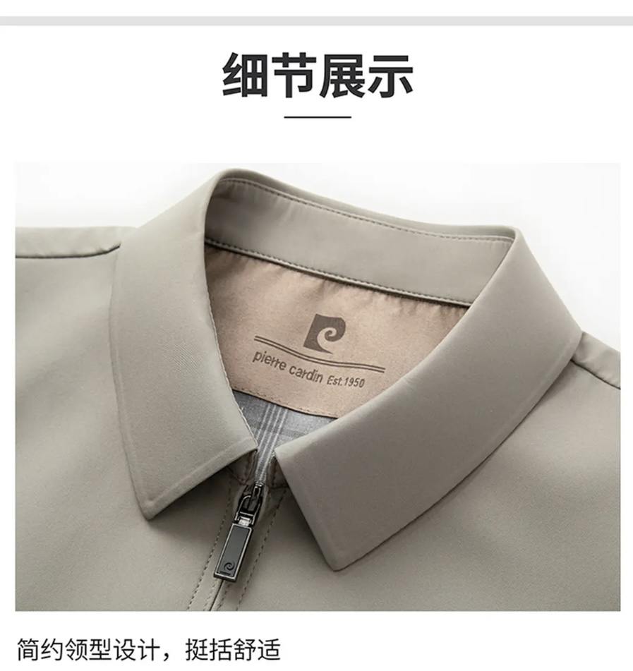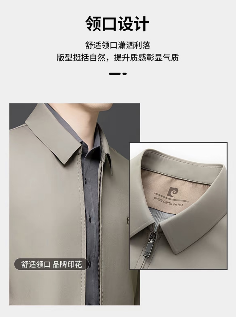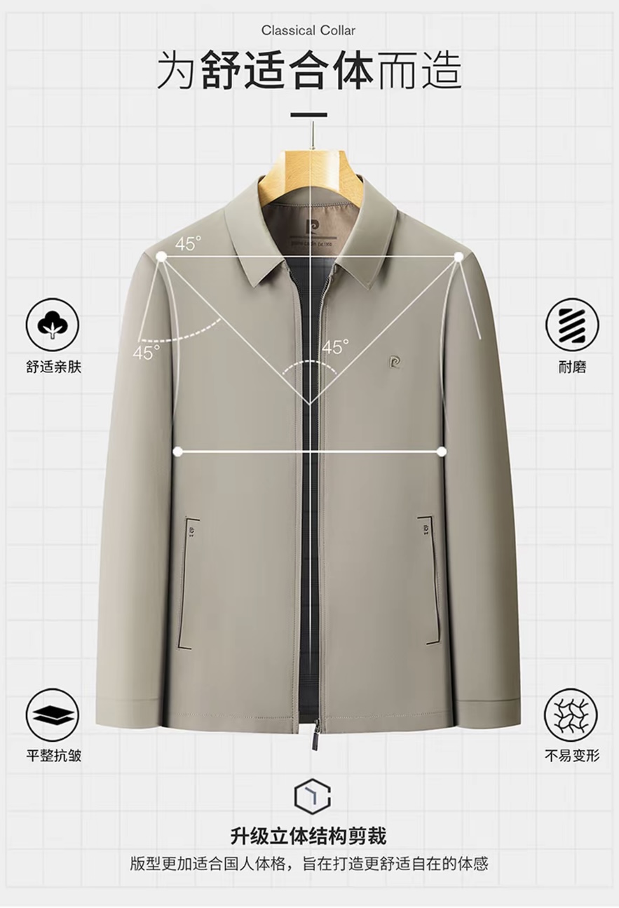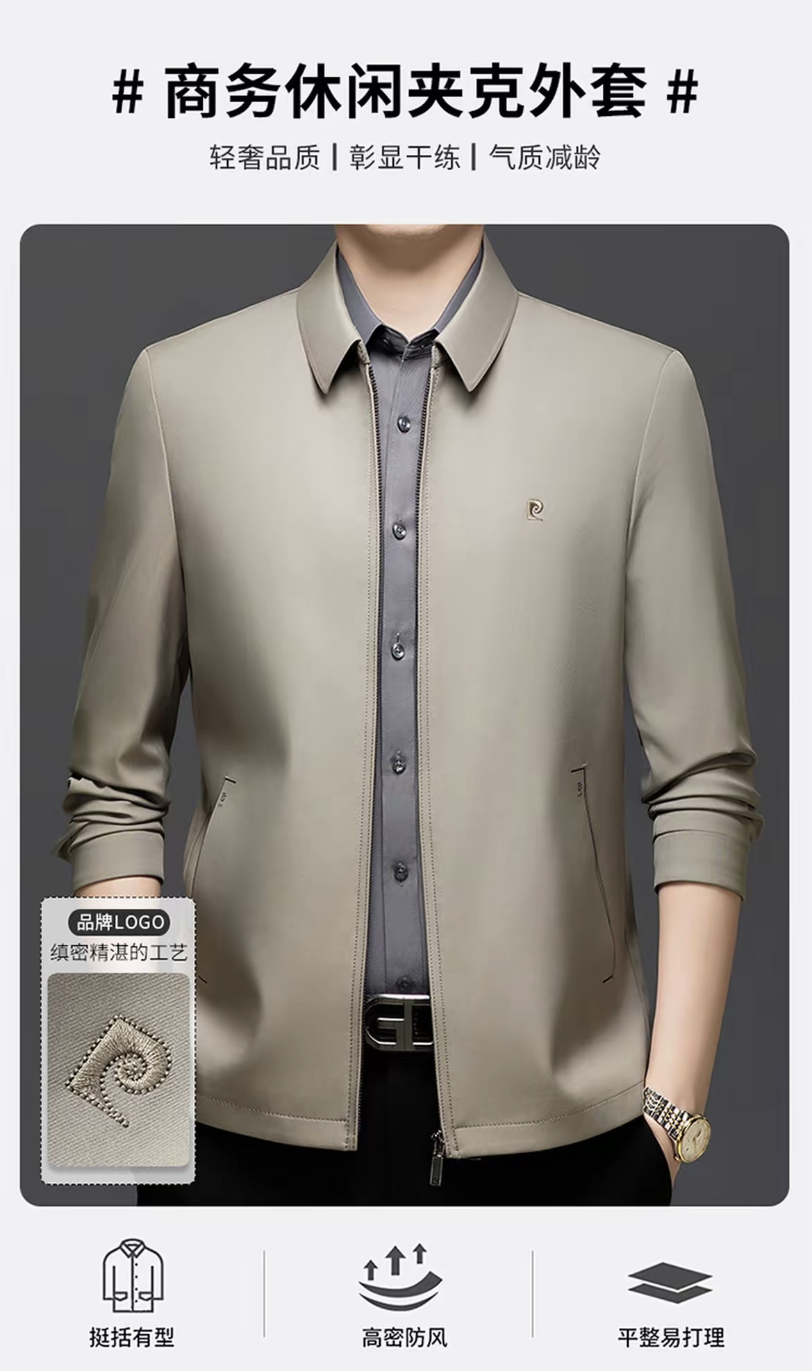 皮尔卡丹专柜同款商务夹克外套男士春秋翻领刺绣外套高档时尚
