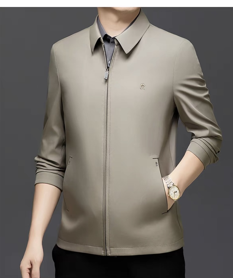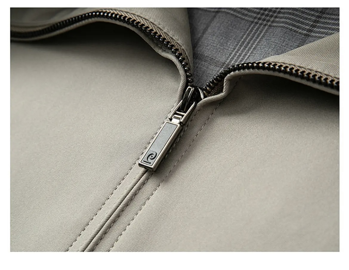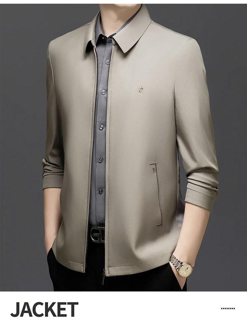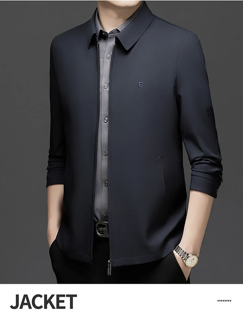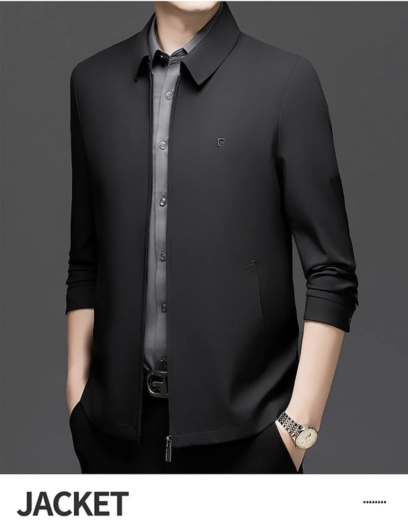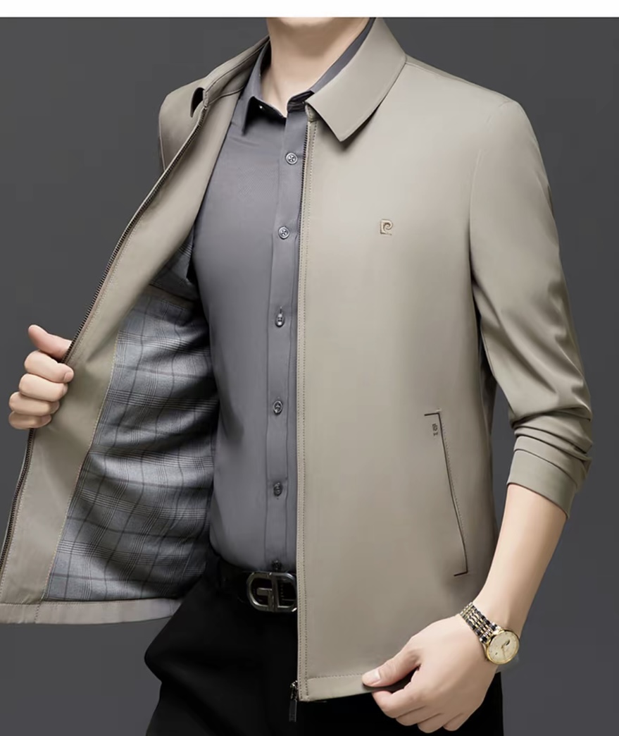 皮尔卡丹专柜同款商务夹克外套男士春秋翻领刺绣外套高档时尚