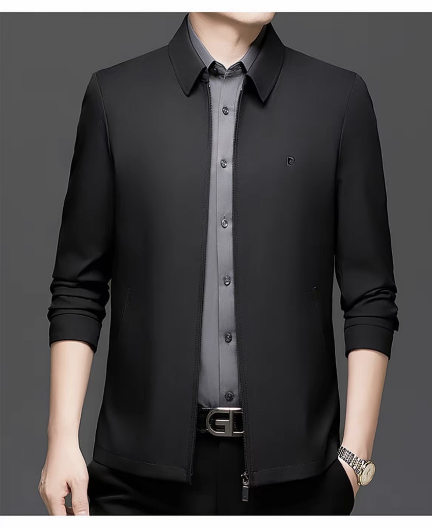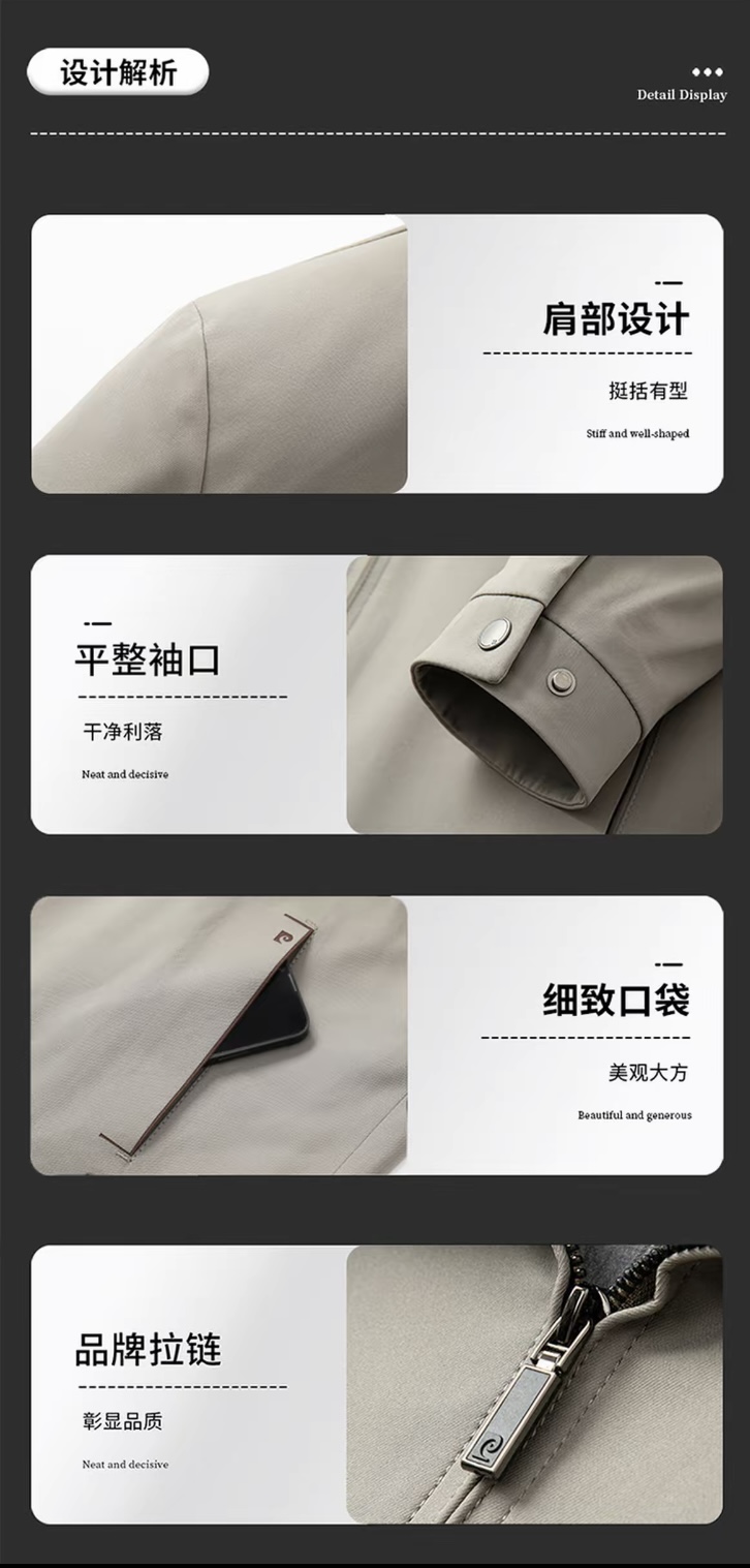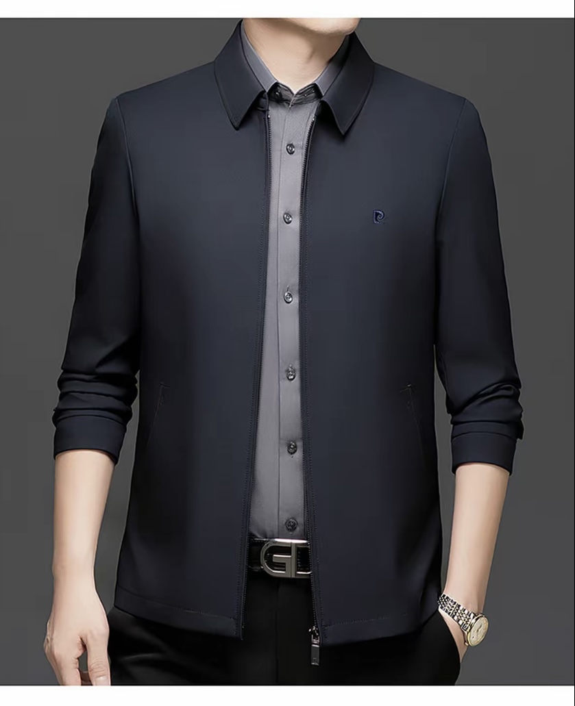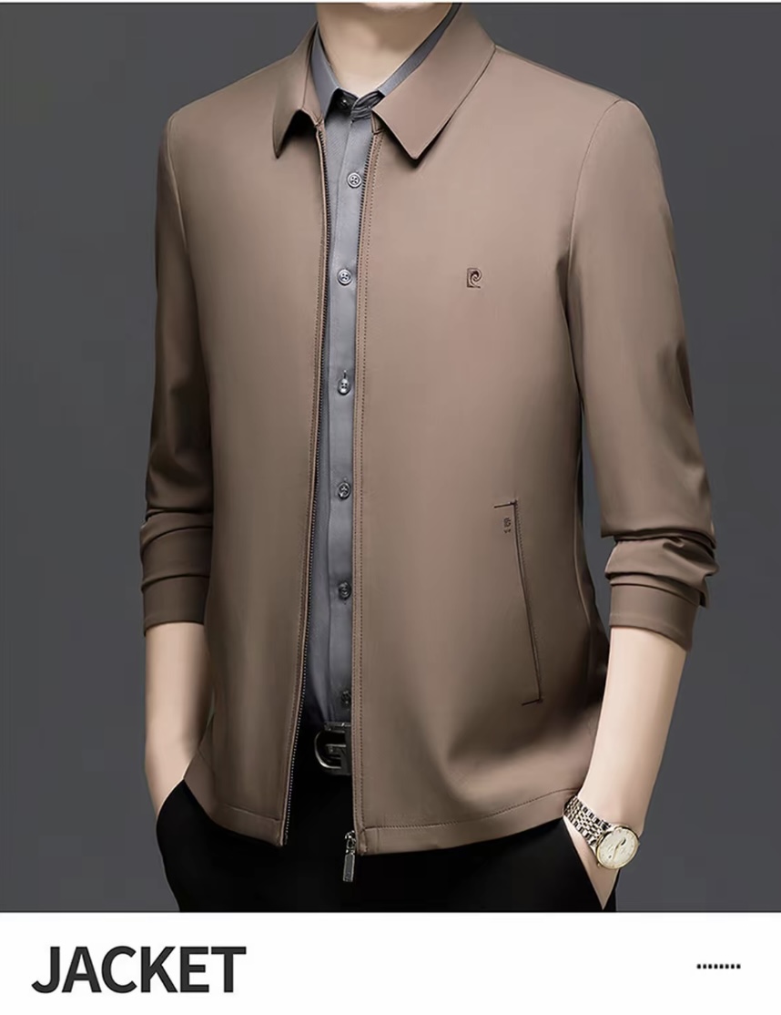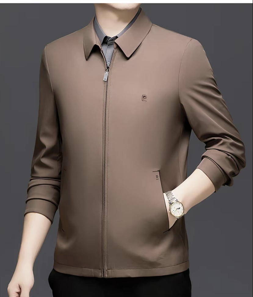 皮尔卡丹专柜同款商务夹克外套男士春秋翻领刺绣外套高档时尚