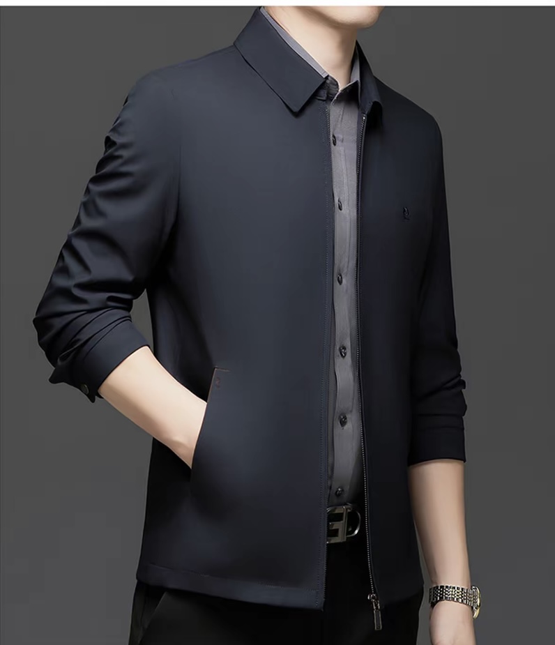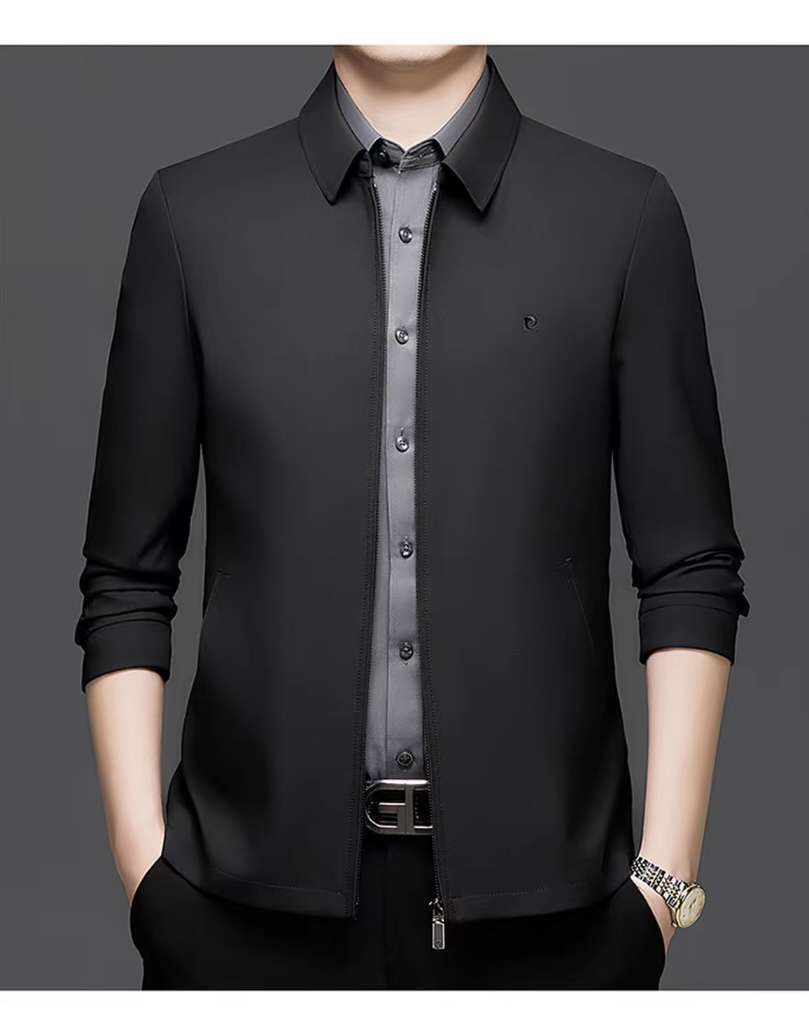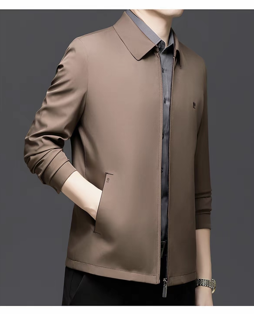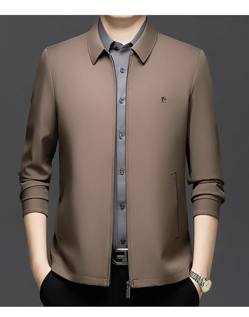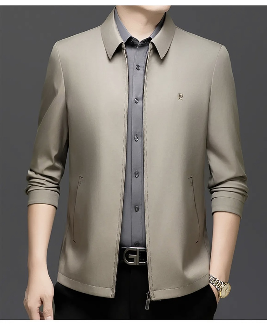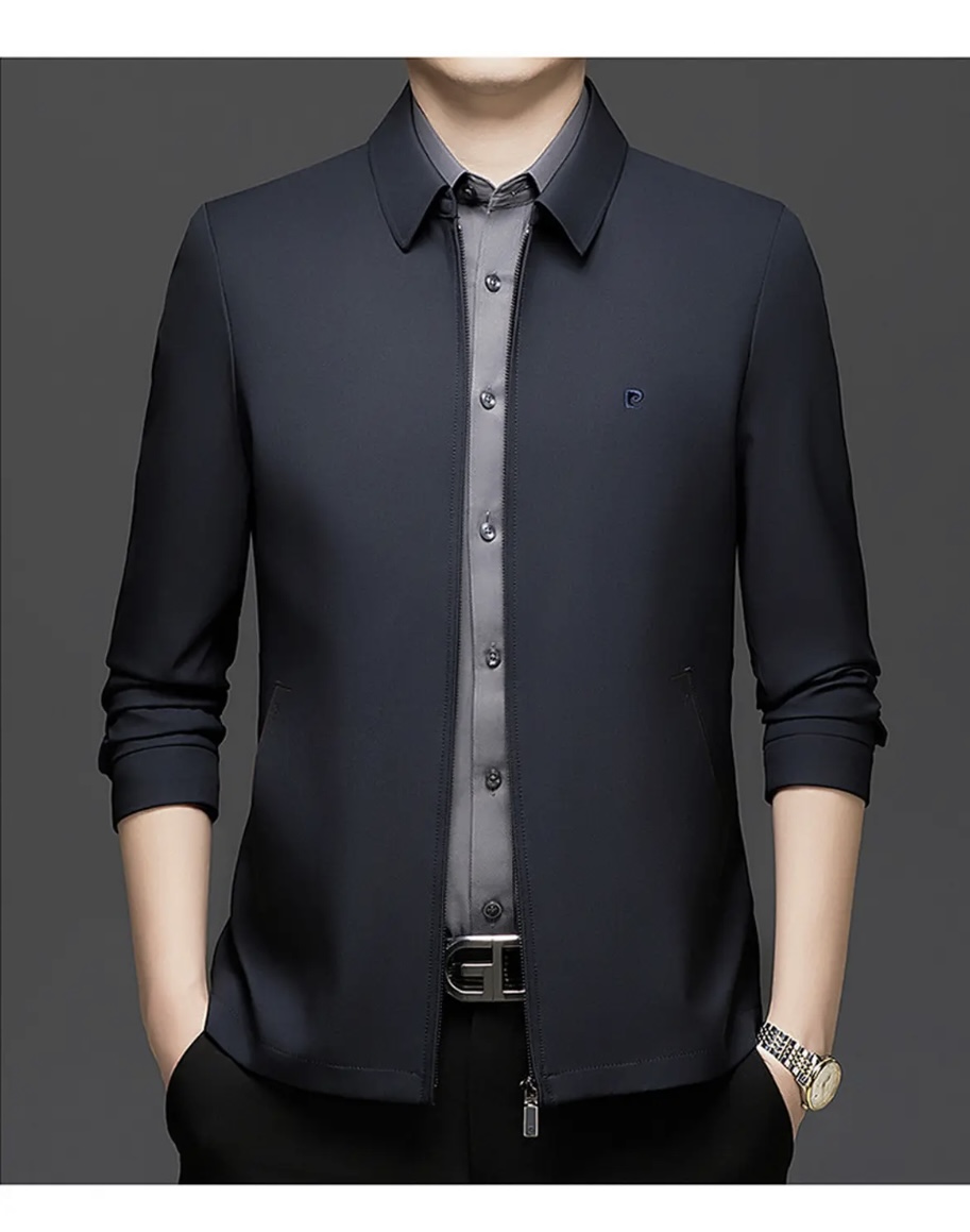 皮尔卡丹专柜同款商务夹克外套男士春秋翻领刺绣外套高档时尚