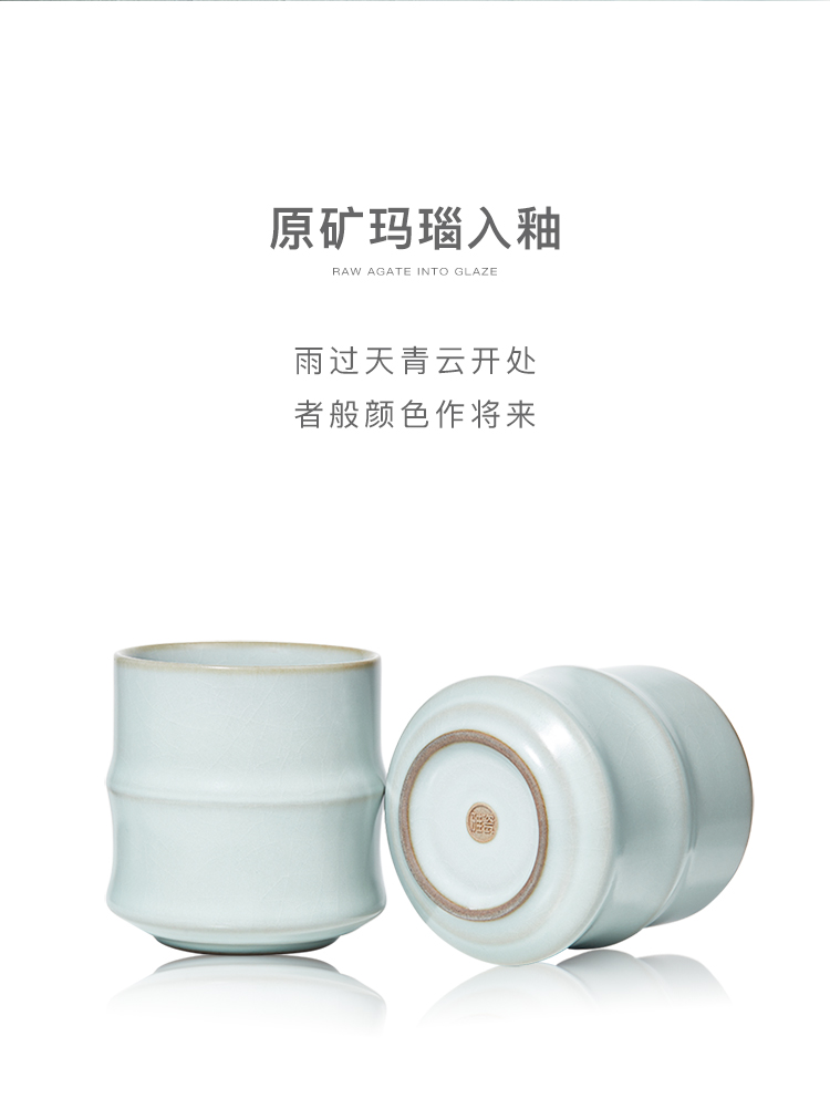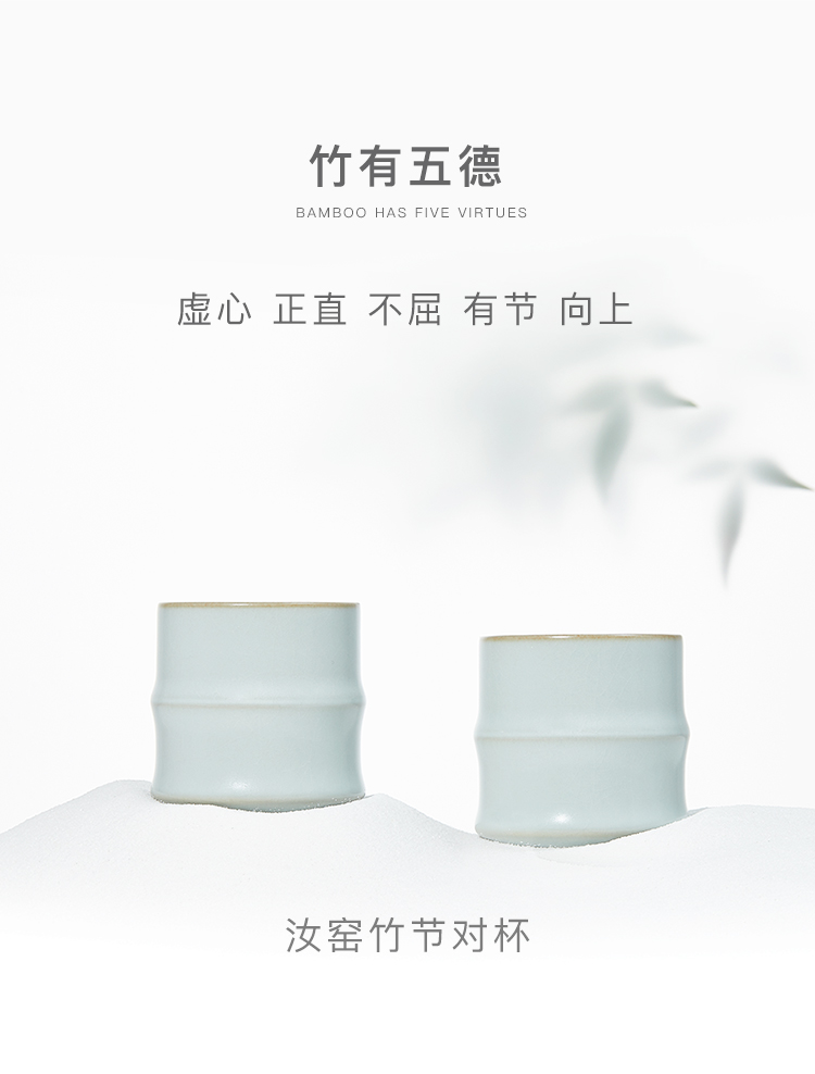 汝窑 竹节杯对杯 办公杯