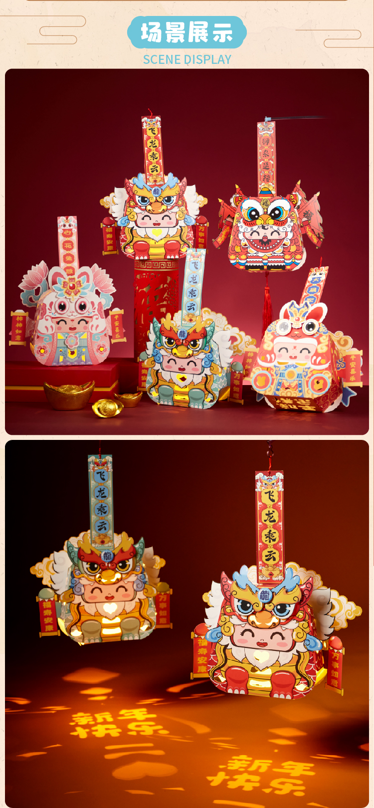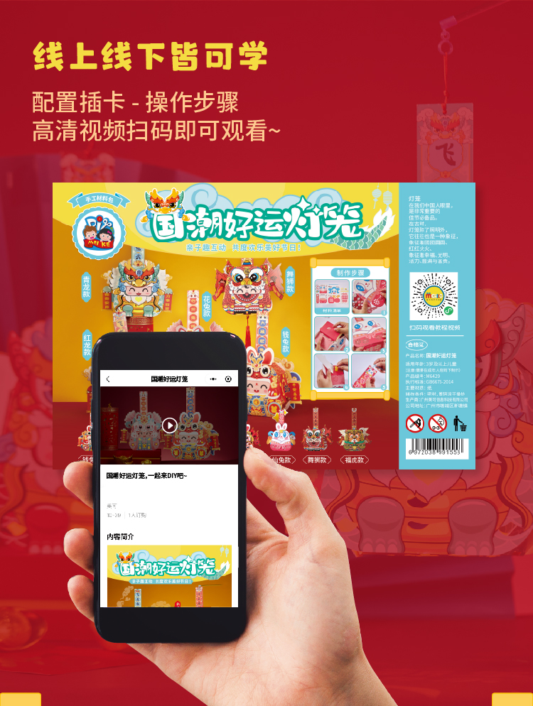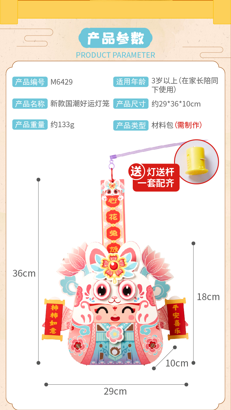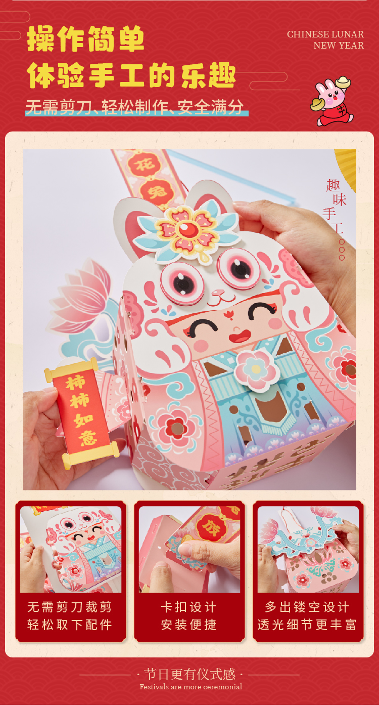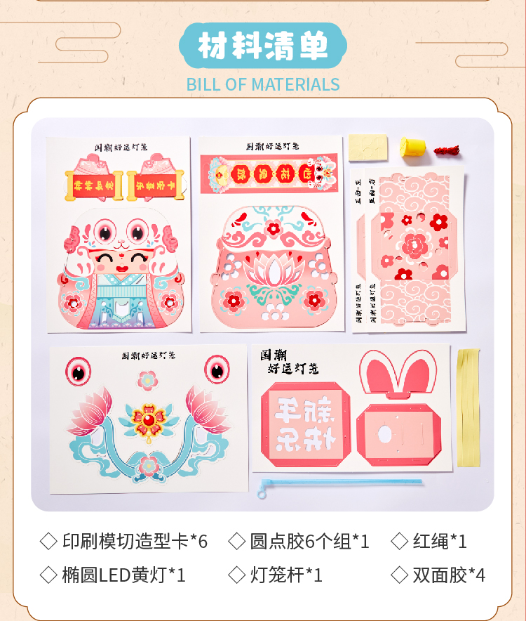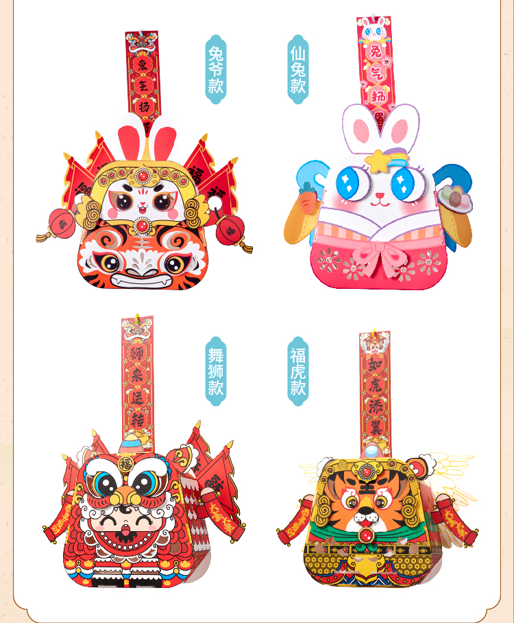 【预售1.30发货】过新年春节元旦2023新款国潮好运灯笼手工diy儿童制作材料包花灯