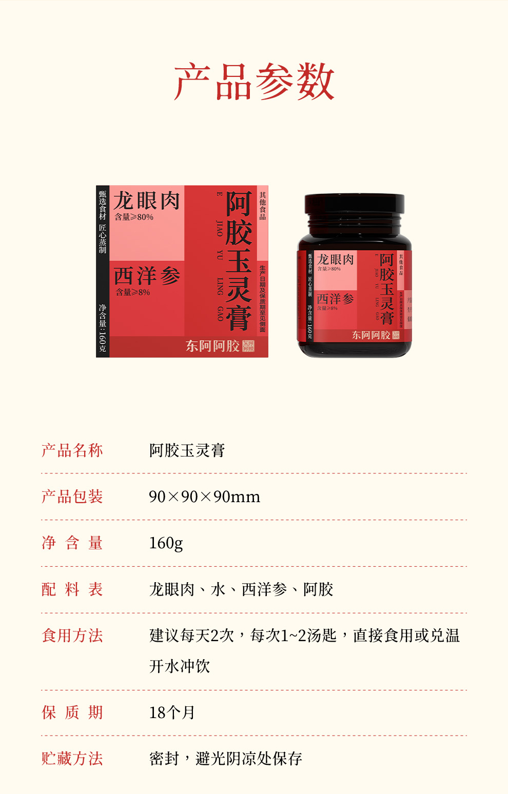 东阿阿胶阿胶玉灵膏160g龙眼肉西洋参匠心蒸制玉灵膏