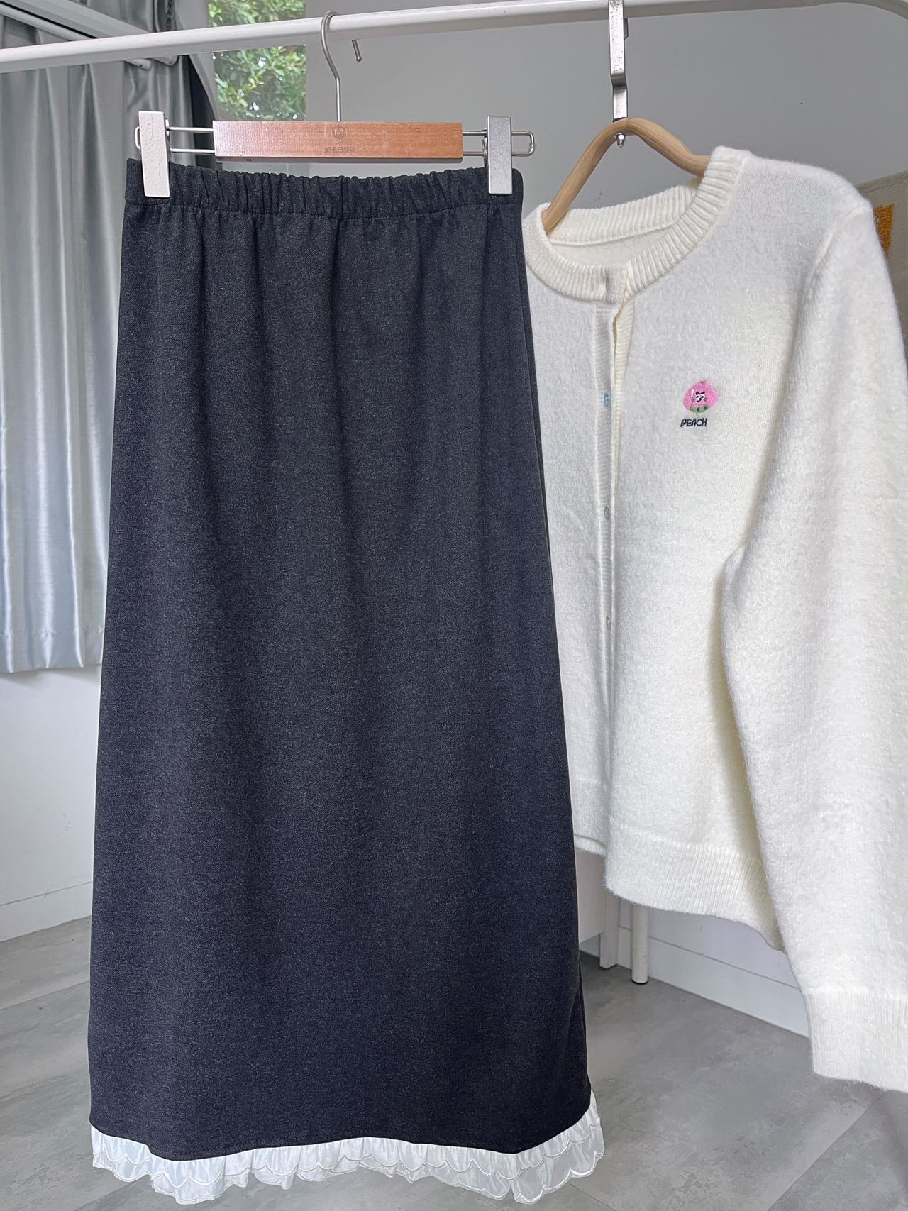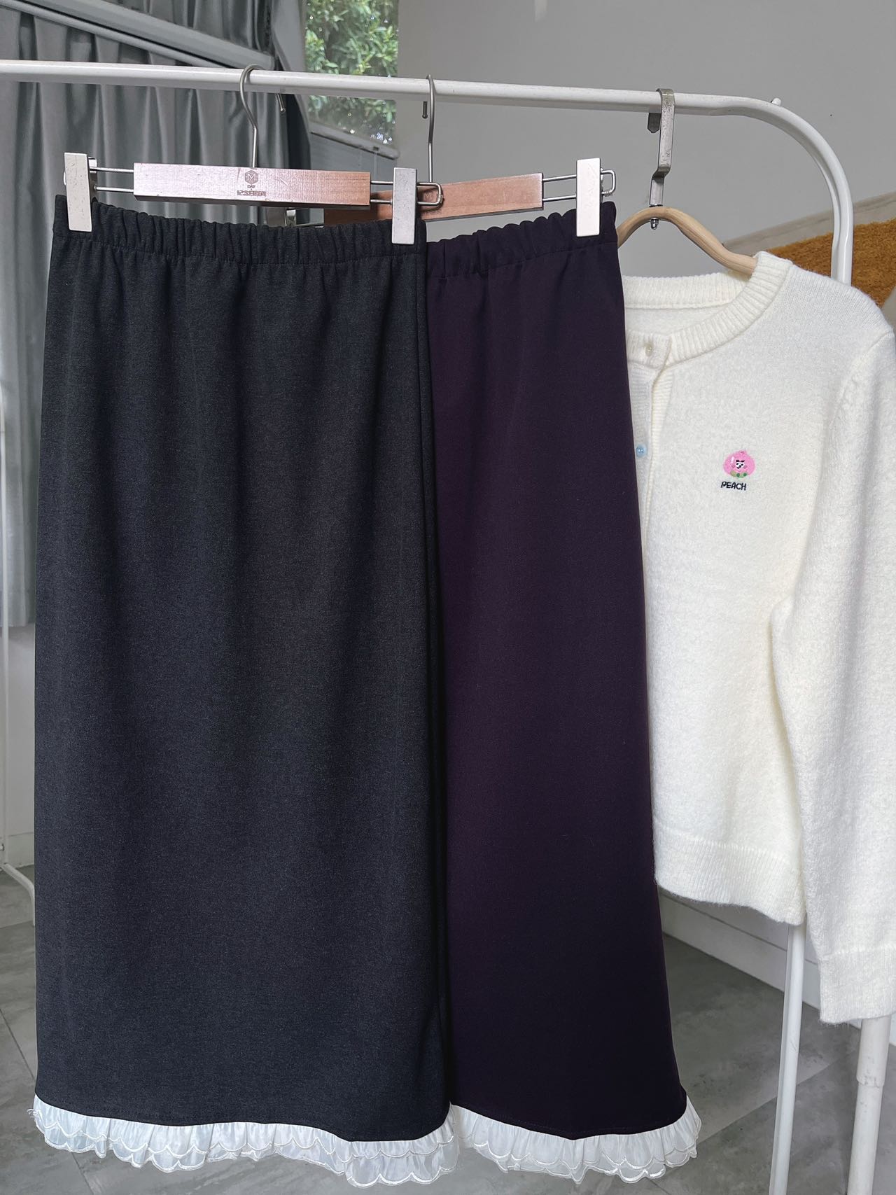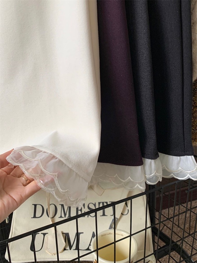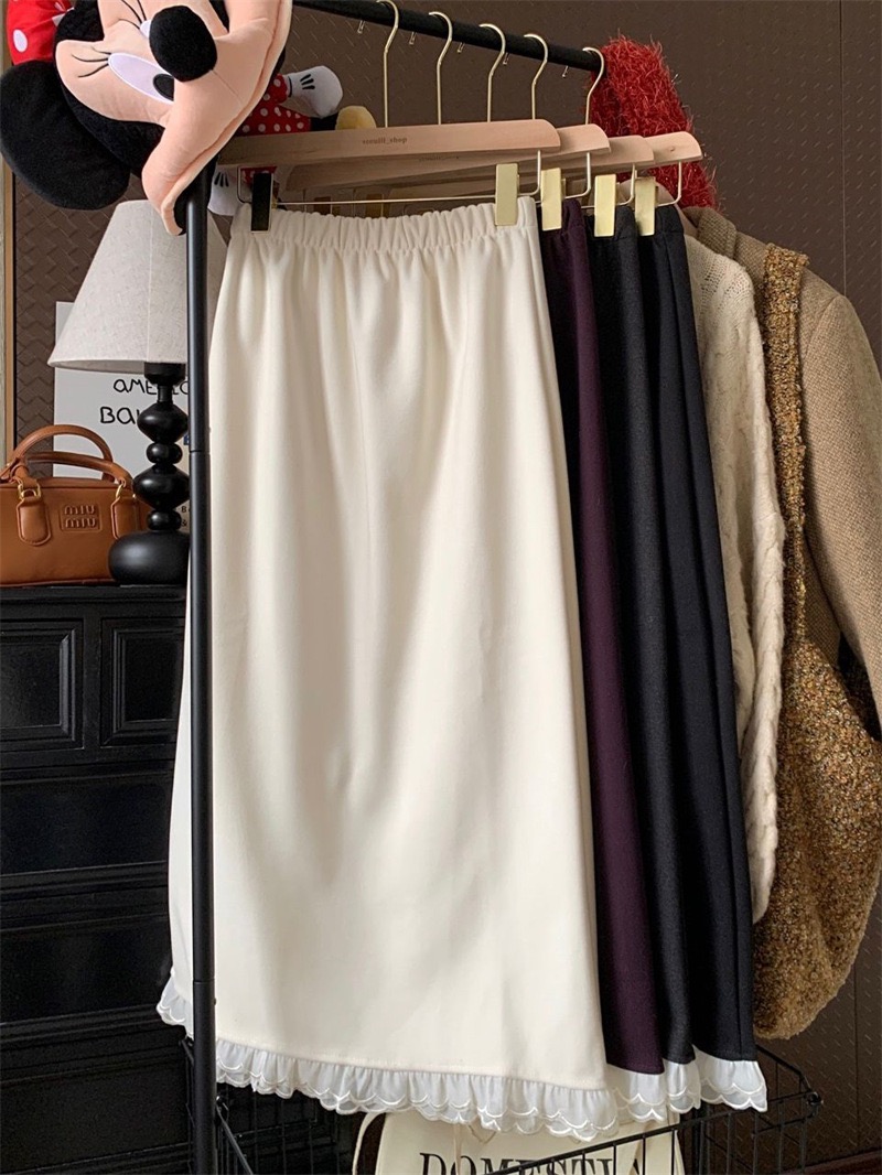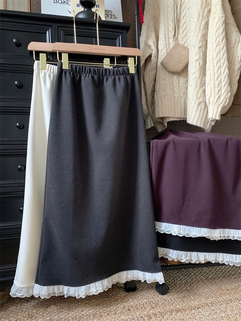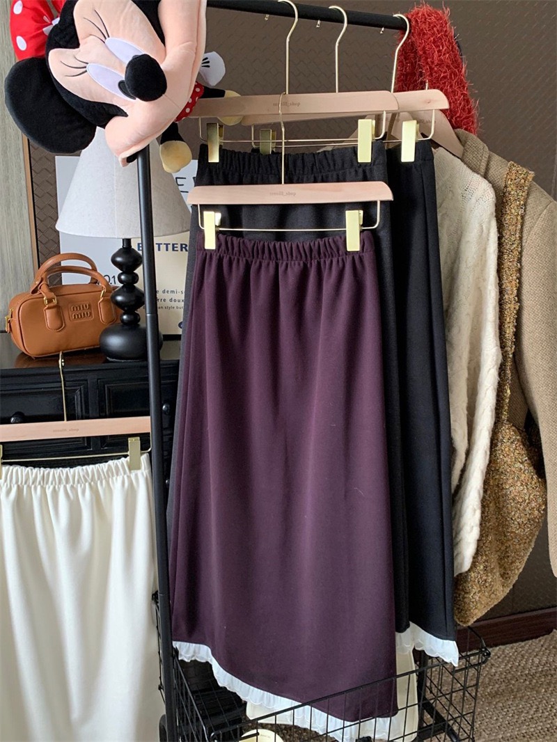 【GZ】无忧购韩系慵懒百搭宽松显瘦花边拼接毛呢直筒半身裙3320(截单后7天发货)25年清仓捡漏