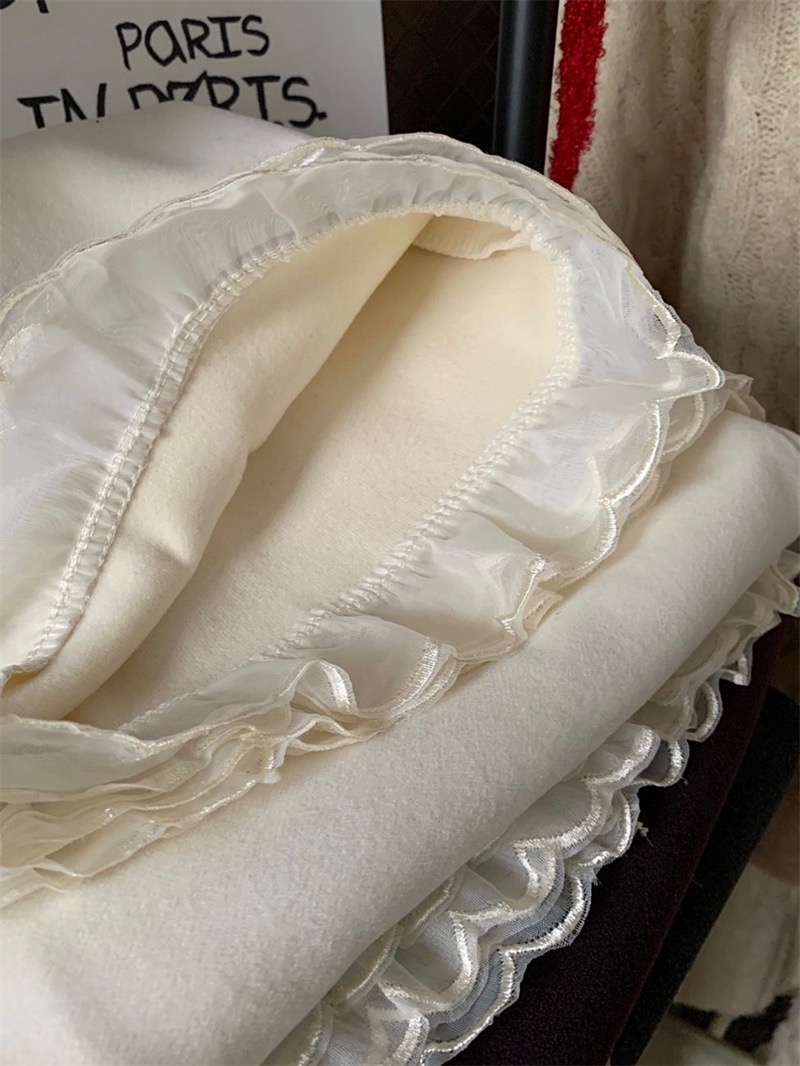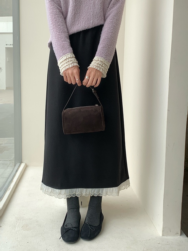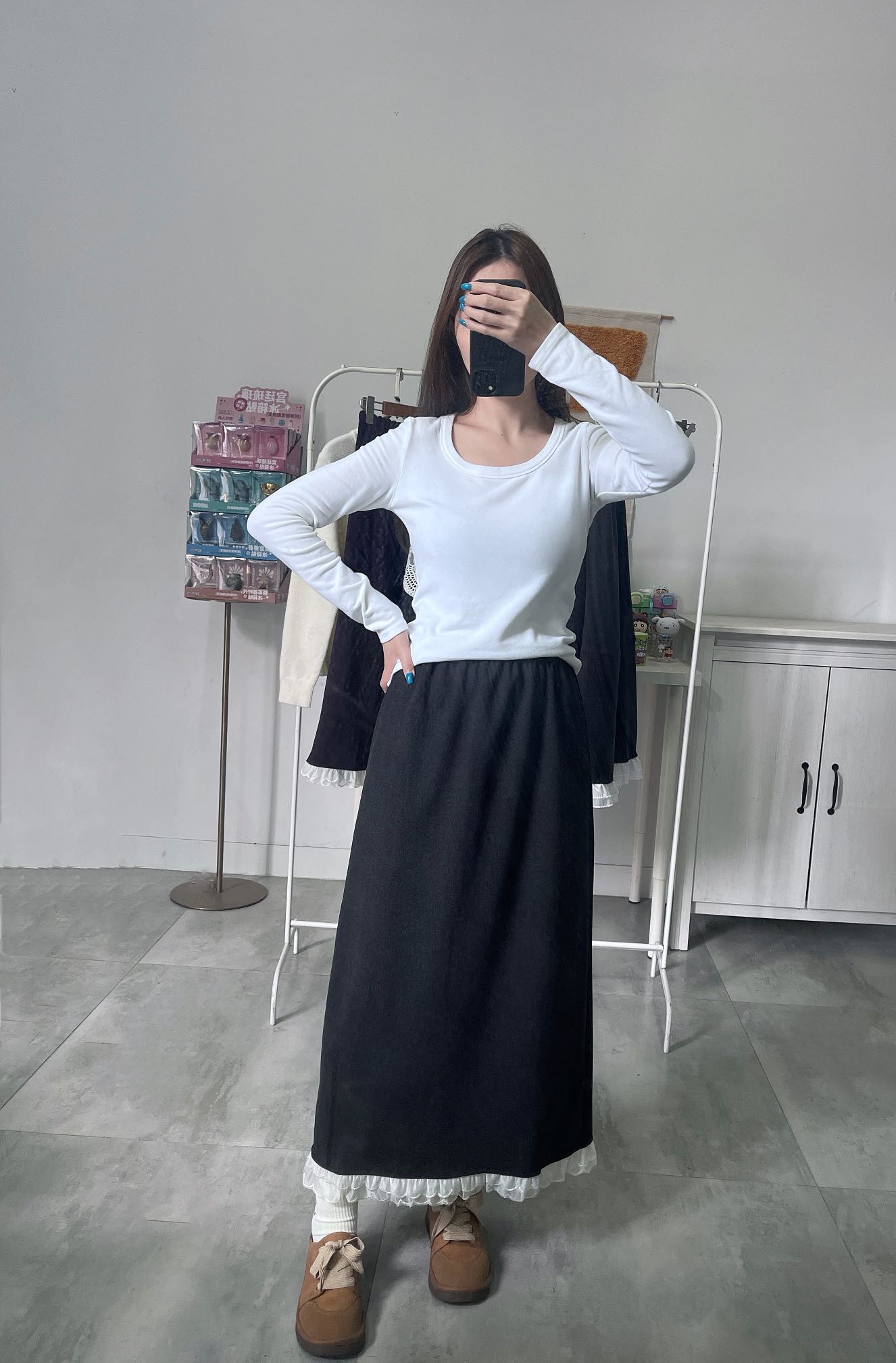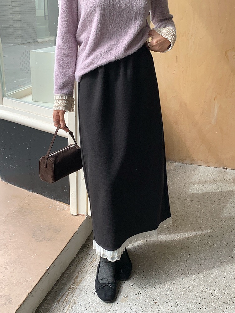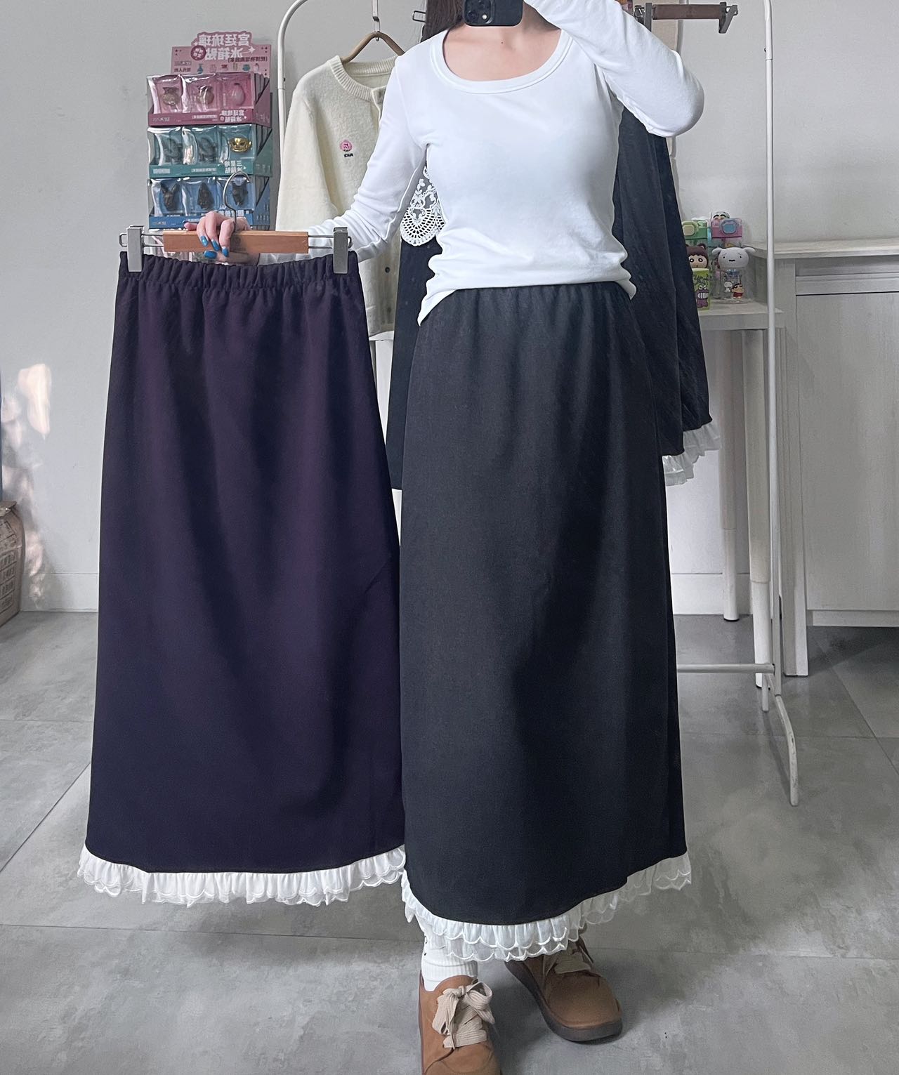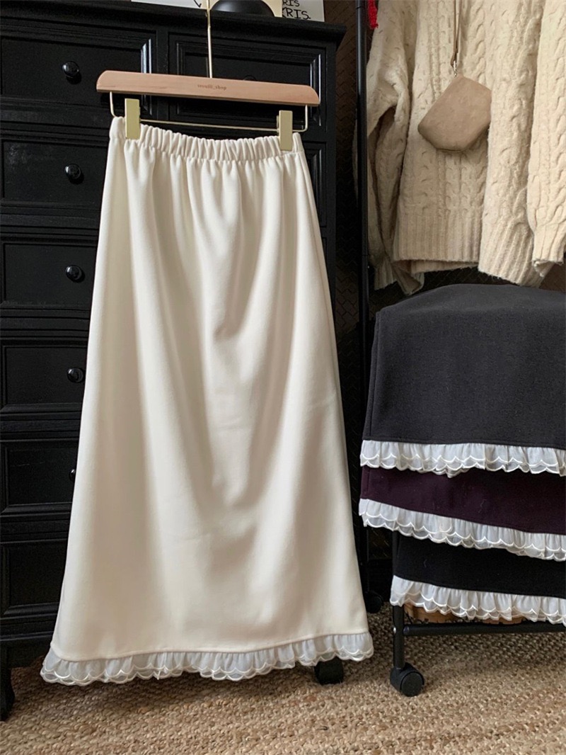 【GZ】无忧购韩系慵懒百搭宽松显瘦花边拼接毛呢直筒半身裙3320(截单后7天发货)25年清仓捡漏