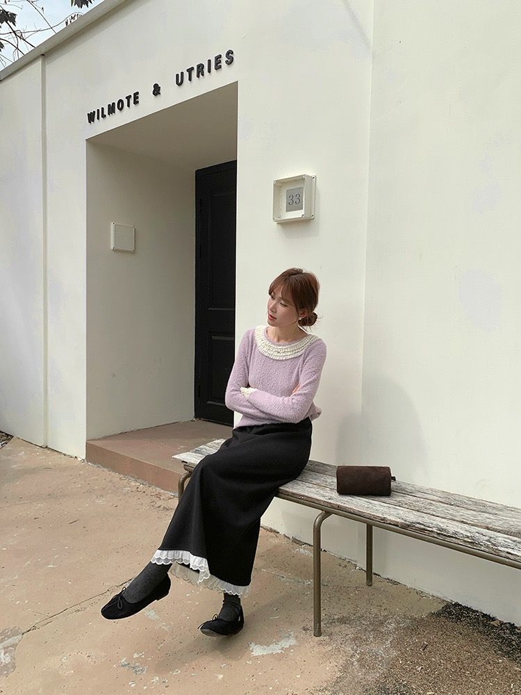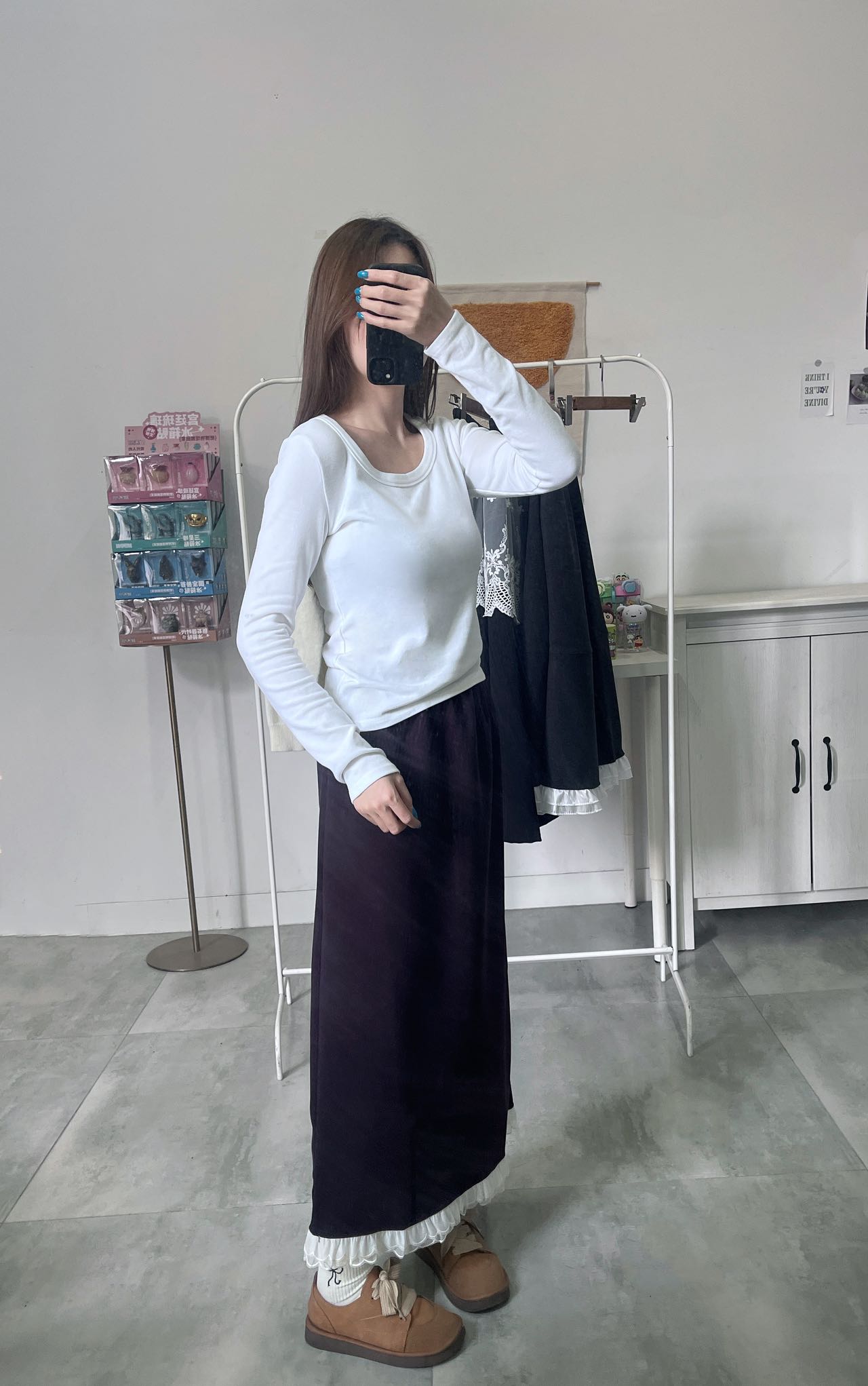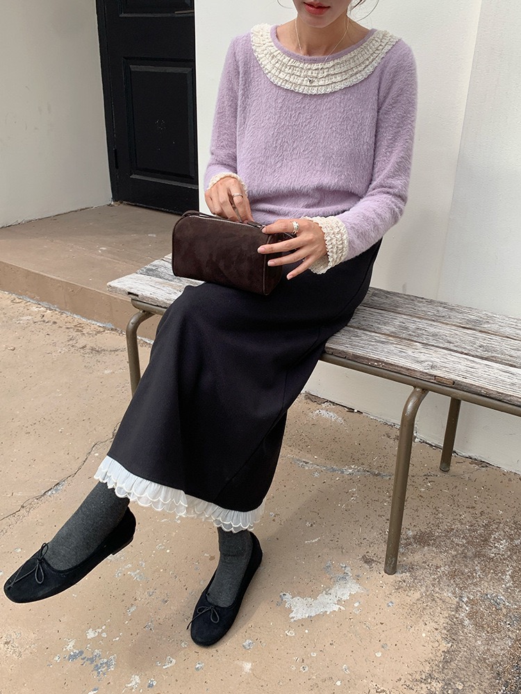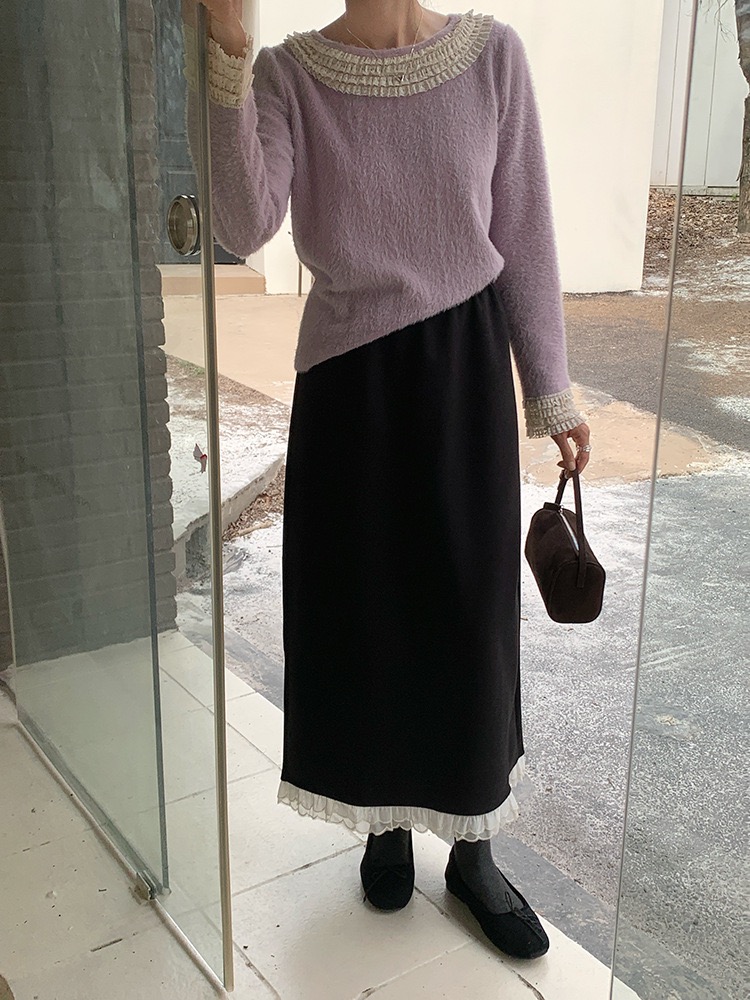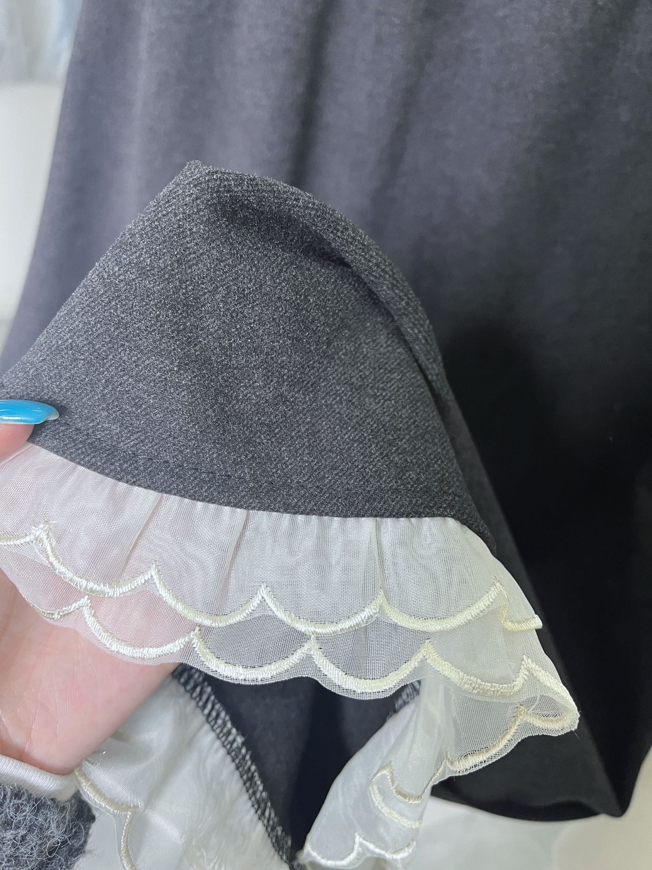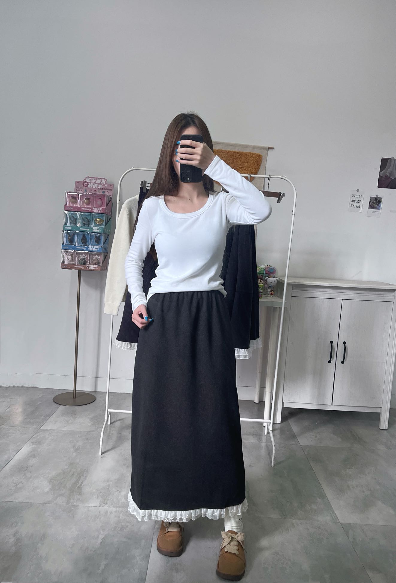 【GZ】无忧购韩系慵懒百搭宽松显瘦花边拼接毛呢直筒半身裙3320(截单后7天发货)25年清仓捡漏