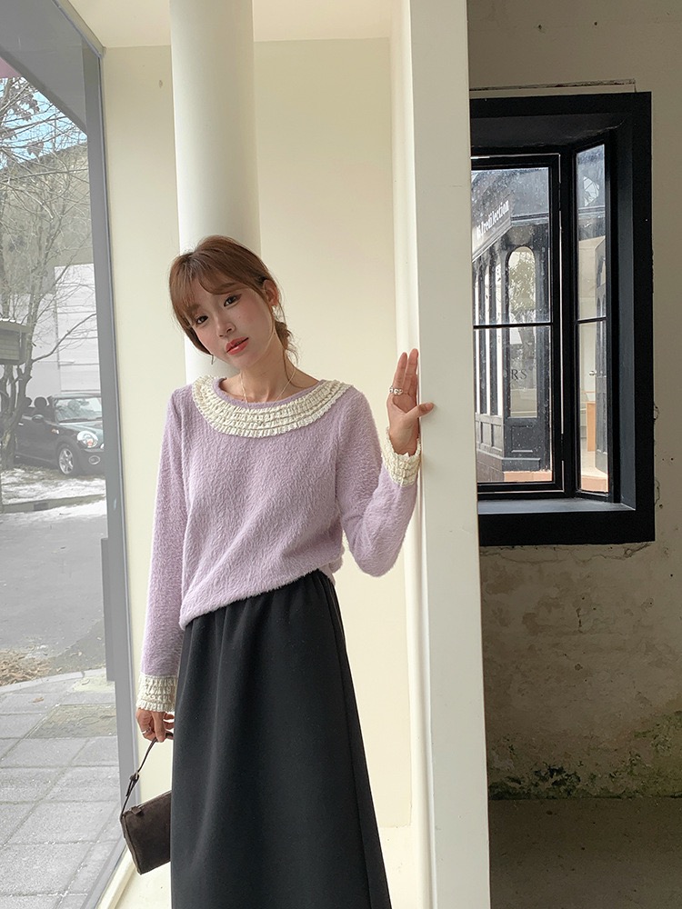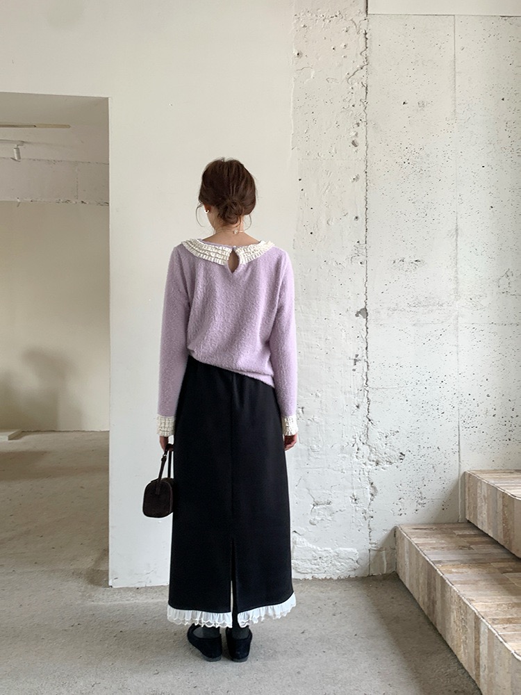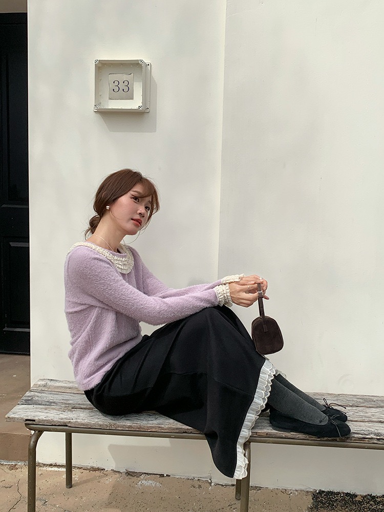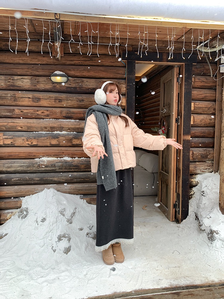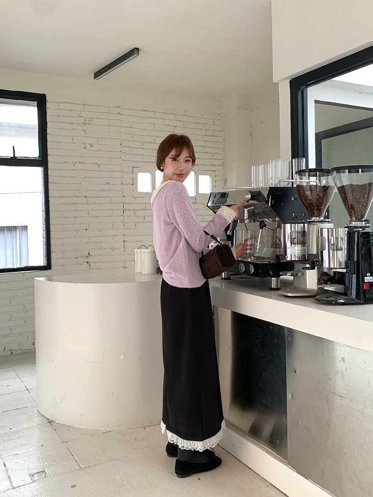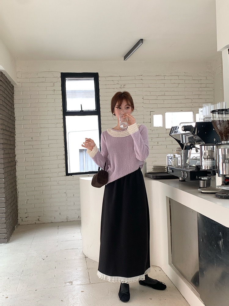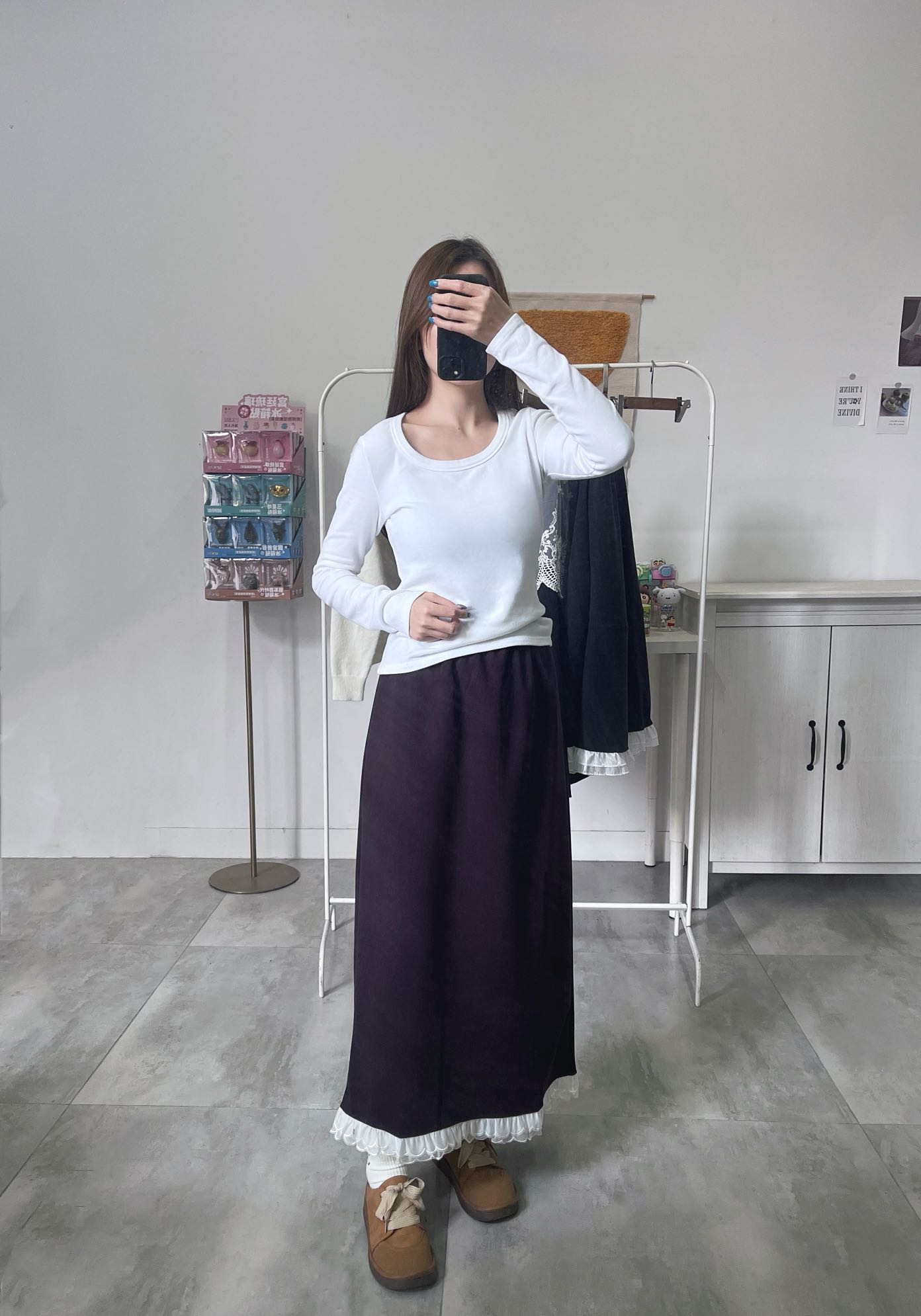 【GZ】无忧购韩系慵懒百搭宽松显瘦花边拼接毛呢直筒半身裙3320(截单后7天发货)25年清仓捡漏