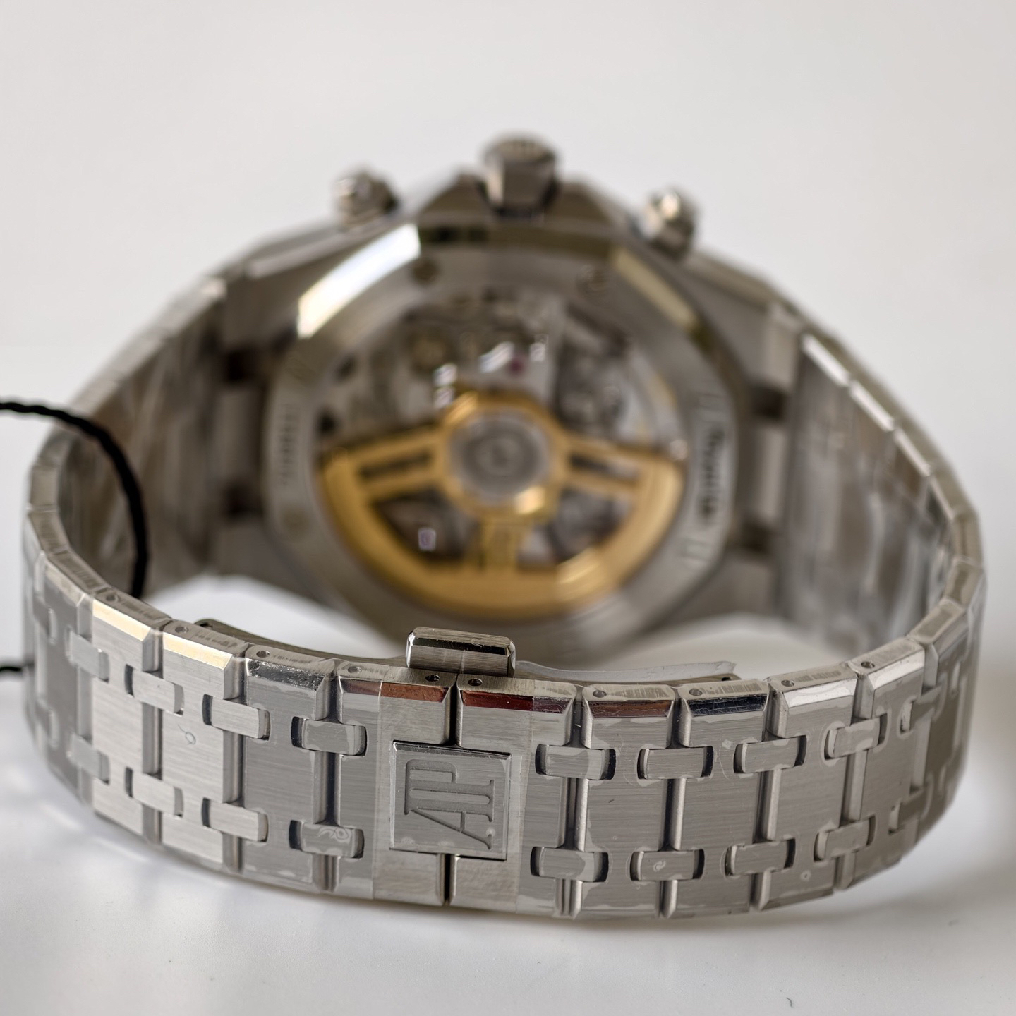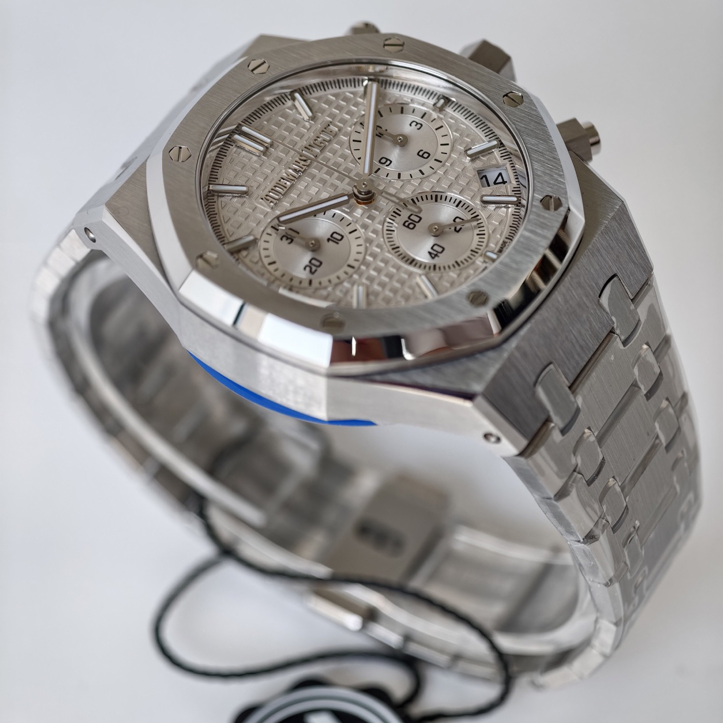[Strap] The integrated homologous strap continues the expression of texture, with solid stainless steel links and smooth chamfered edges that have been finely polished. The movable head design naturally fits the wrist curve. The AP folding buckle opens and closes smoothly and stably, and the engraved font on the inside is consistent with the genuine product. The built-in fine-tuning mechanism achieves millimeter level adjustment.