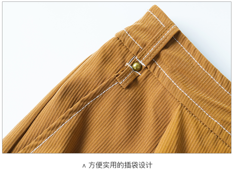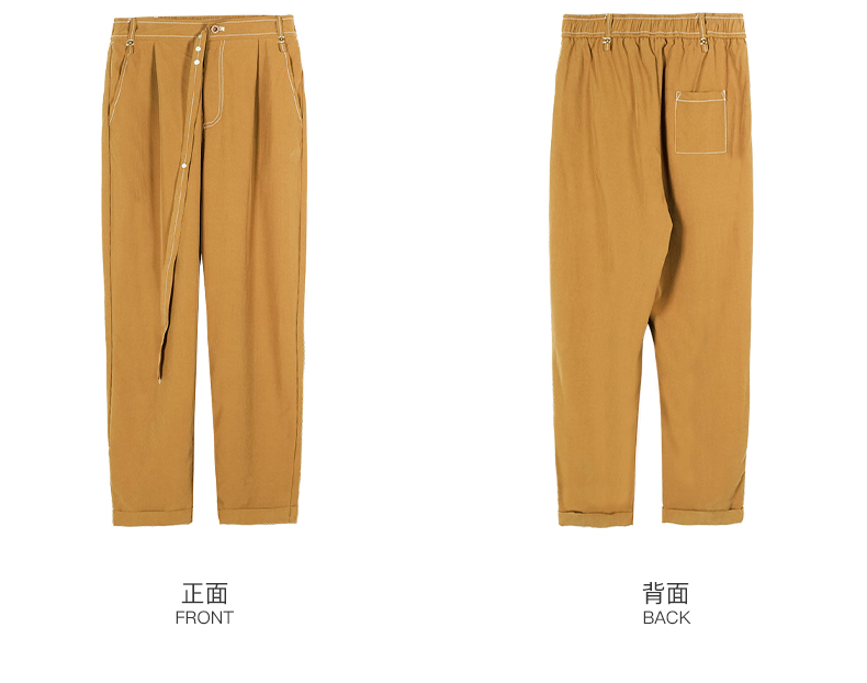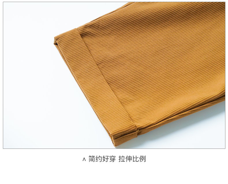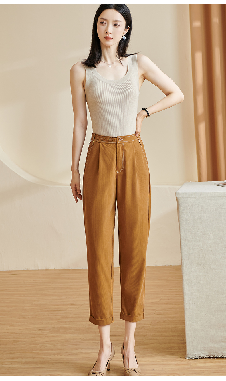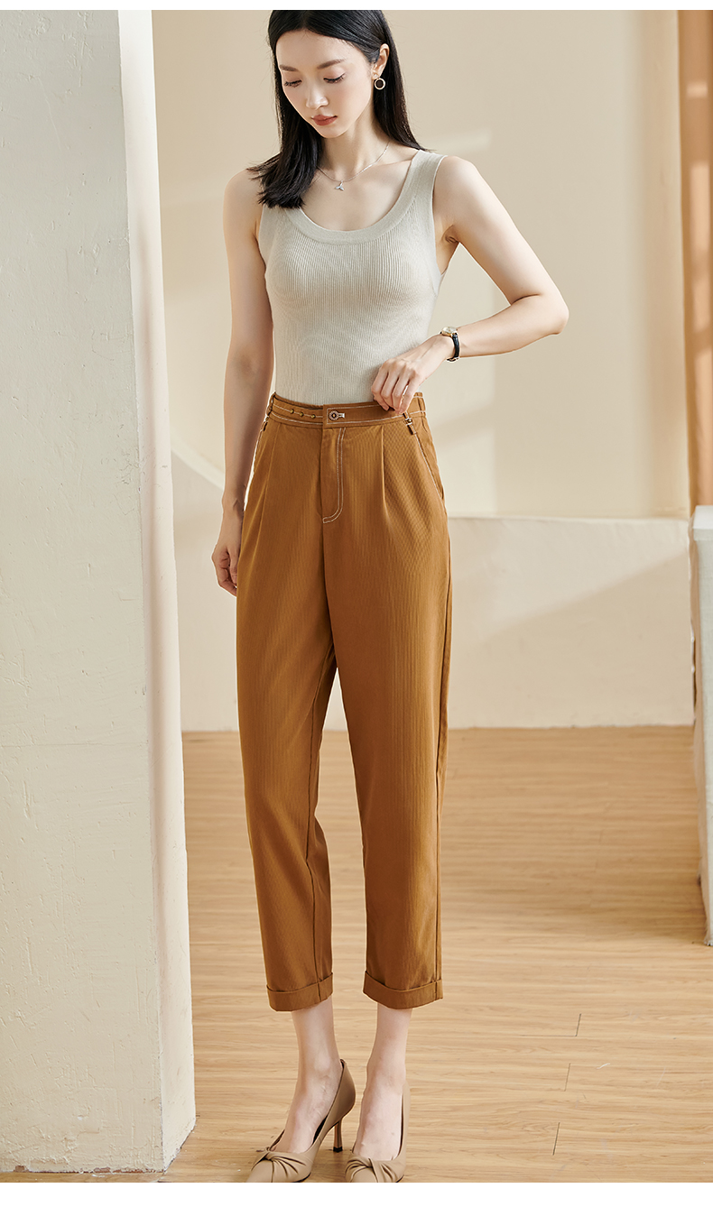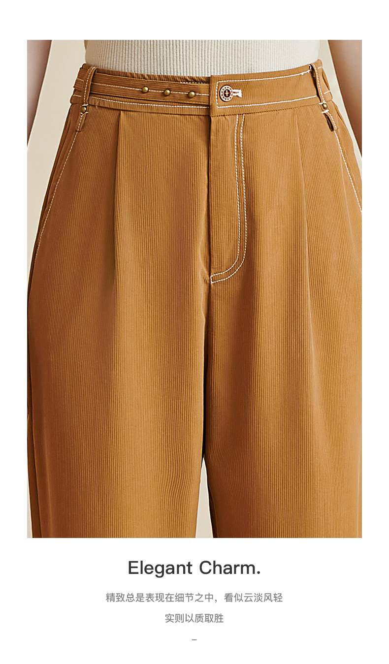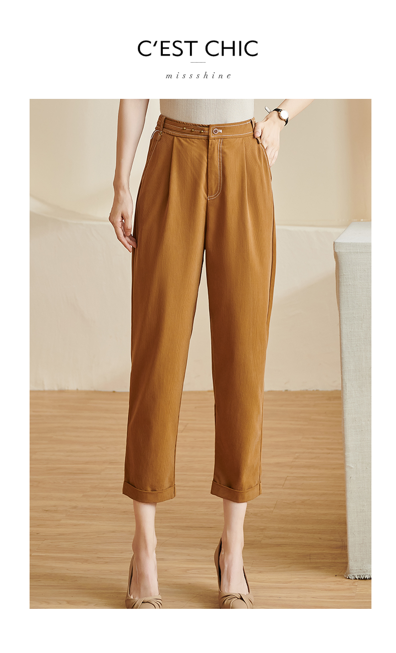米思阳2026春季新款通勤百搭卡其色休闲裤螺纹纽扣修身裤子女2561