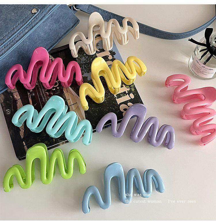 波浪形子后脑勺发夹发饰多发发量多巴胺大号糖果色抓夹卡夹夹鲨鱼