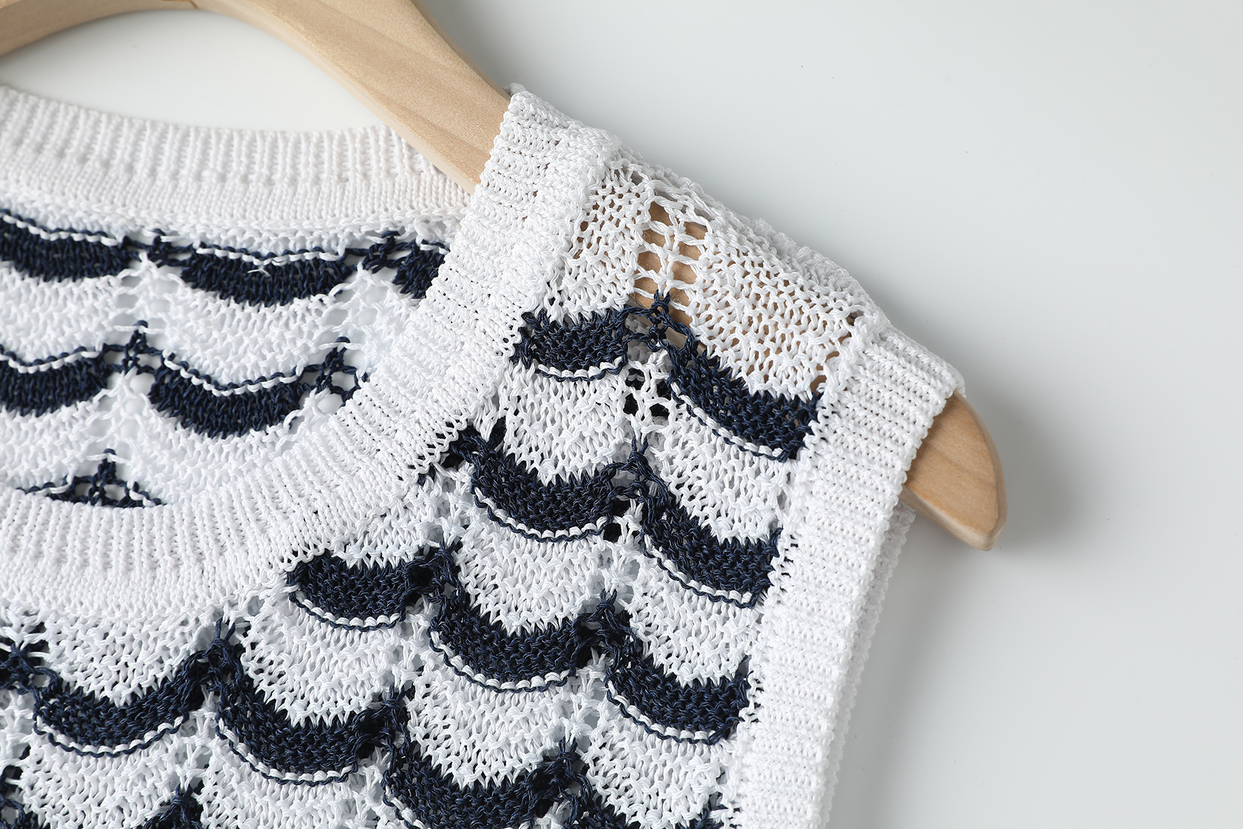 精巧的肩部与衣身镂空织法悄然注入轻盈呼吸孔,让每一缕风都能与肌肤温柔对话,清凉指数满分。
