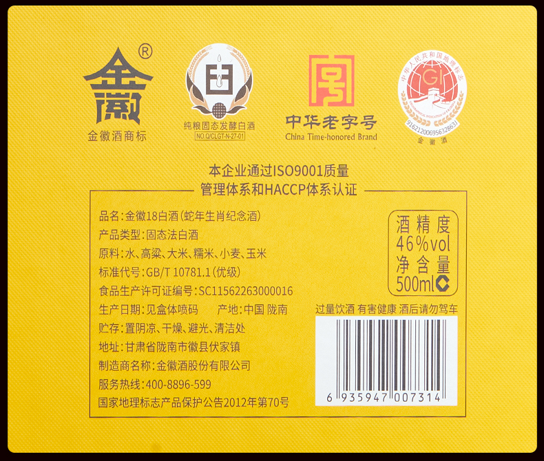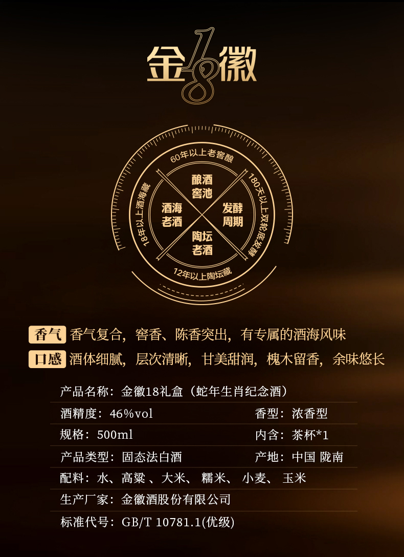 【金徽18 蛇年礼盒】金徽酒 46度金徽18 500ml 蛇年生肖纪念酒