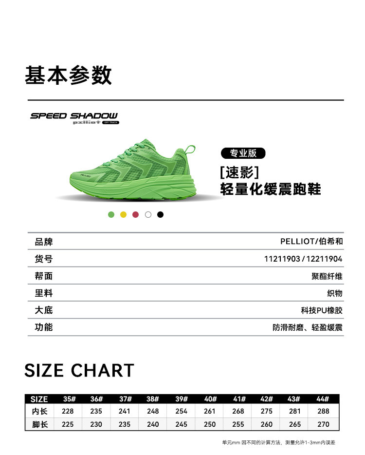 【速影】伯希和跑步鞋男竞速马拉松专业跑鞋女超轻健身透气运动鞋11211903 12211904