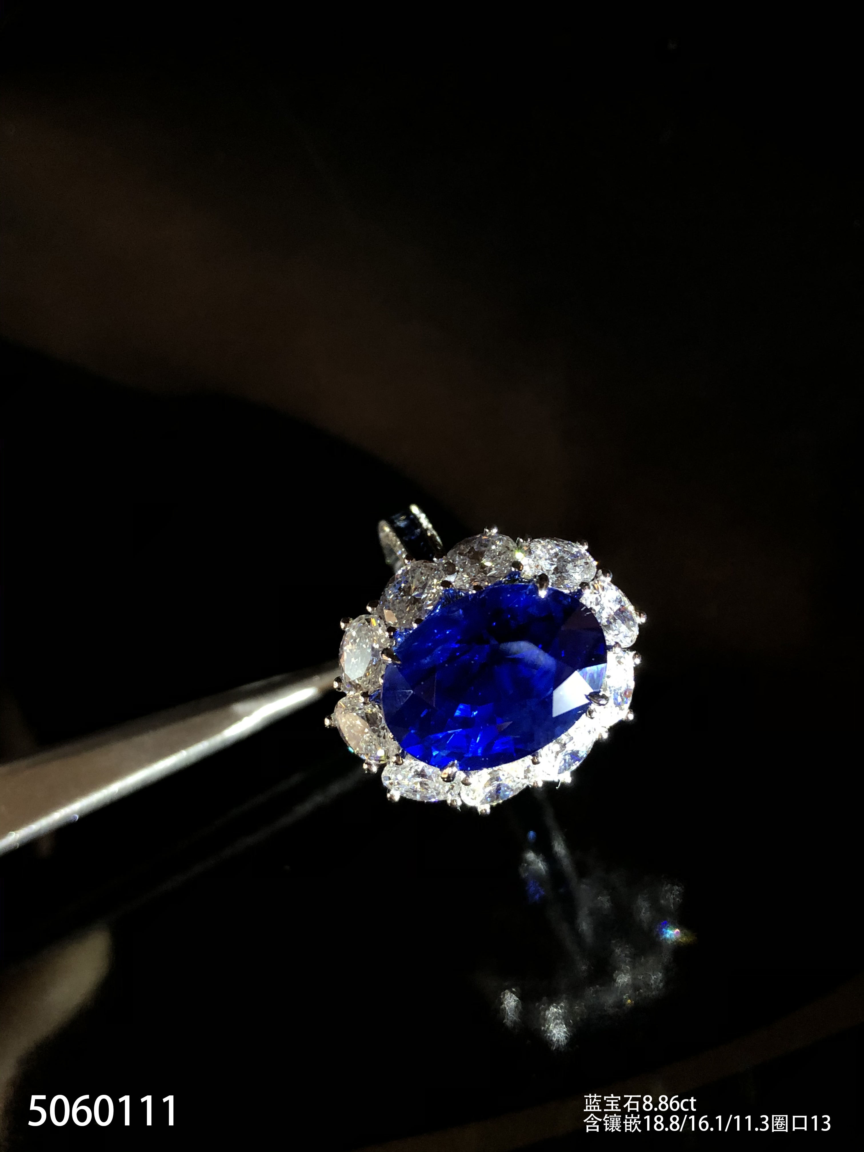 8.86ct蓝宝石钻石戒指,斯里兰卡【5060111】具体价格微信咨询