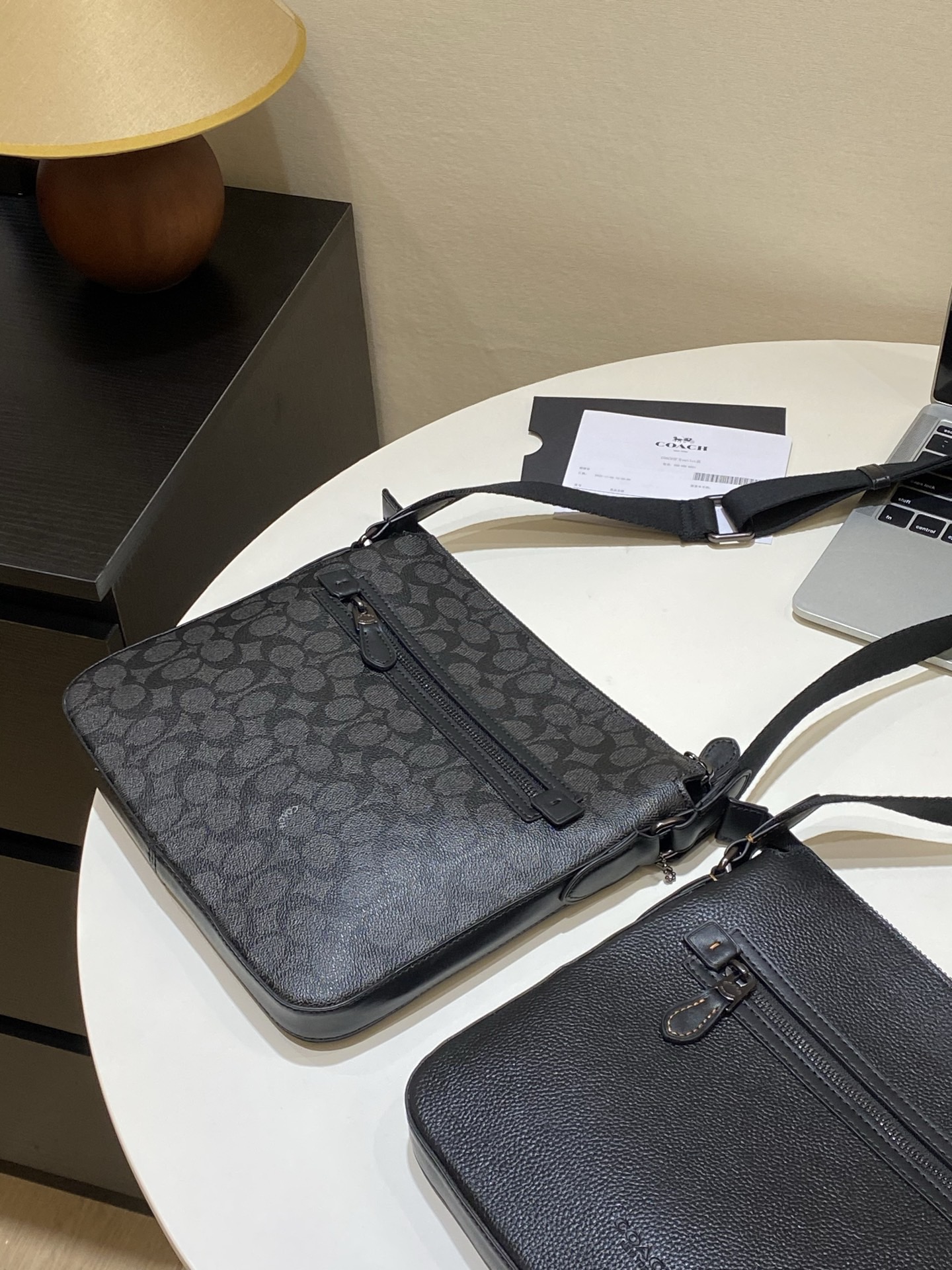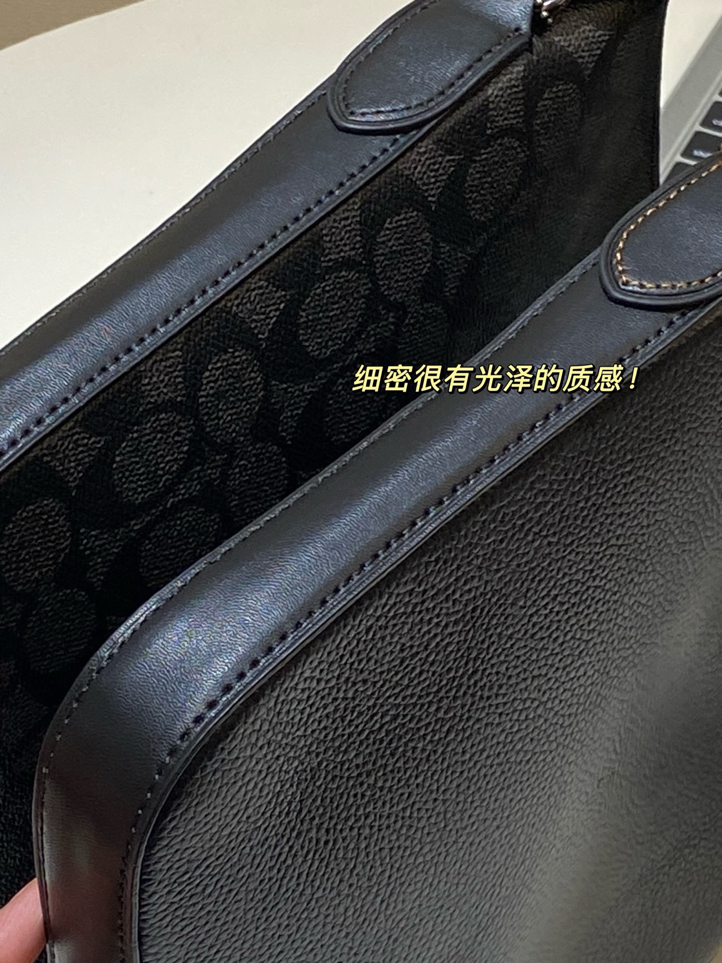手感非常细腻!满满的高级感,黑色是纯牛皮材质,老花款是进口PVC材质,质感非常好。表层纹理清晰可见,耐磨不怕刮。